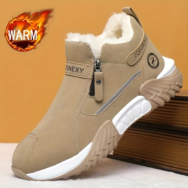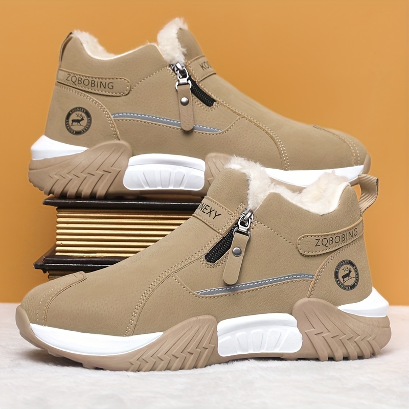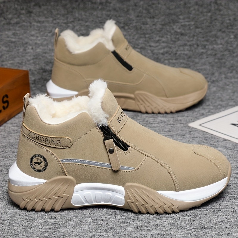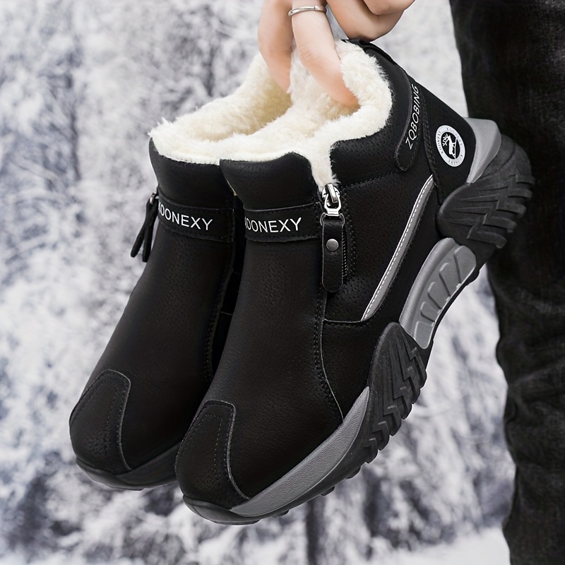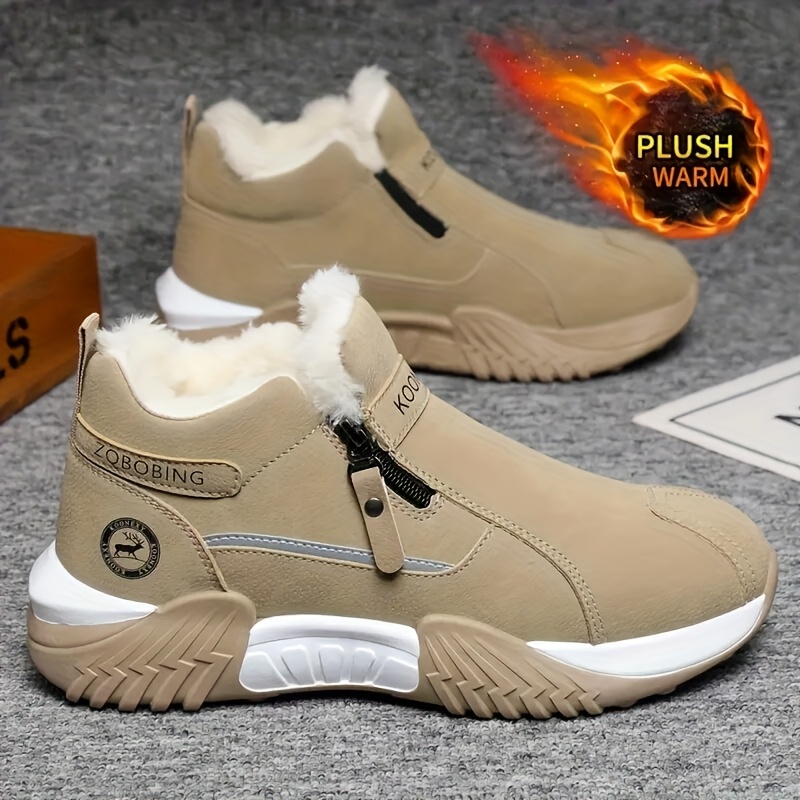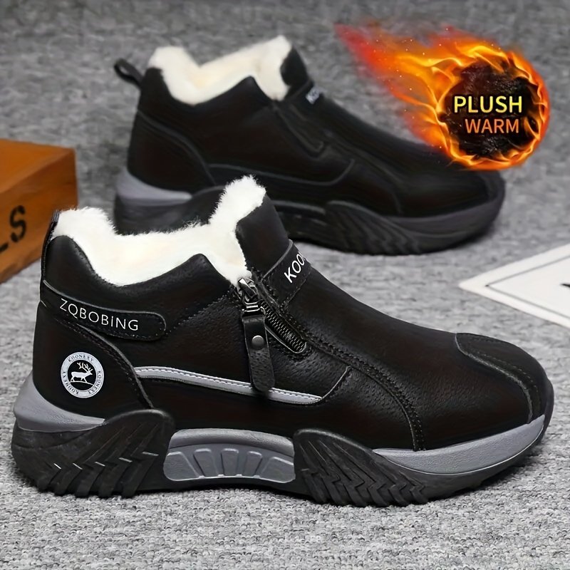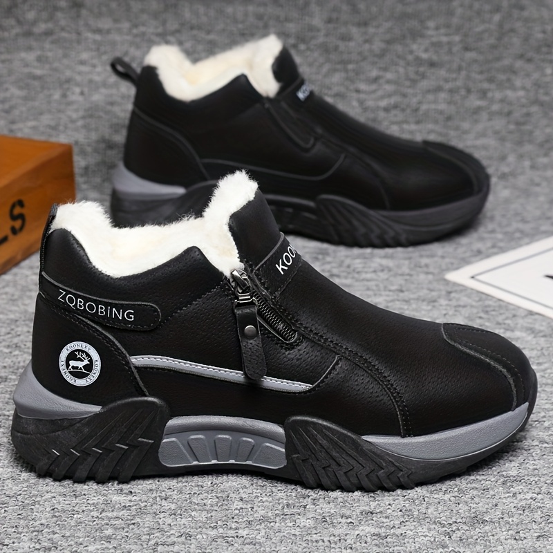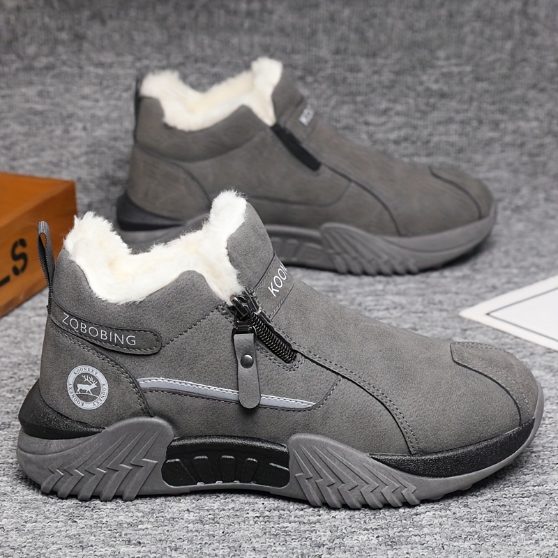 Men’S Winter Warm Snow Boots – Slip-On Closure, Non-Slip PVC Sole, Cushioned Insole – Cold Weather Hiking, Camping, Hunting, Commuting & Everyday Shoes – Black/Gray/Beige – MAINALUN, Winter Boots