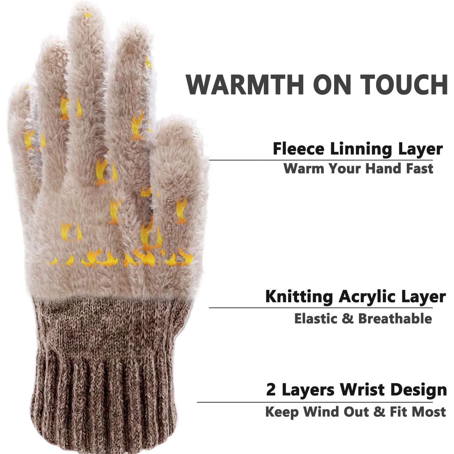 Men’s Winter Warm Touch Glove Set (2 Pairs) with Lined-Comfort Outdoor Running Gloves for Cold Weather