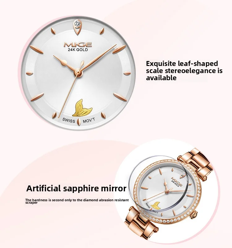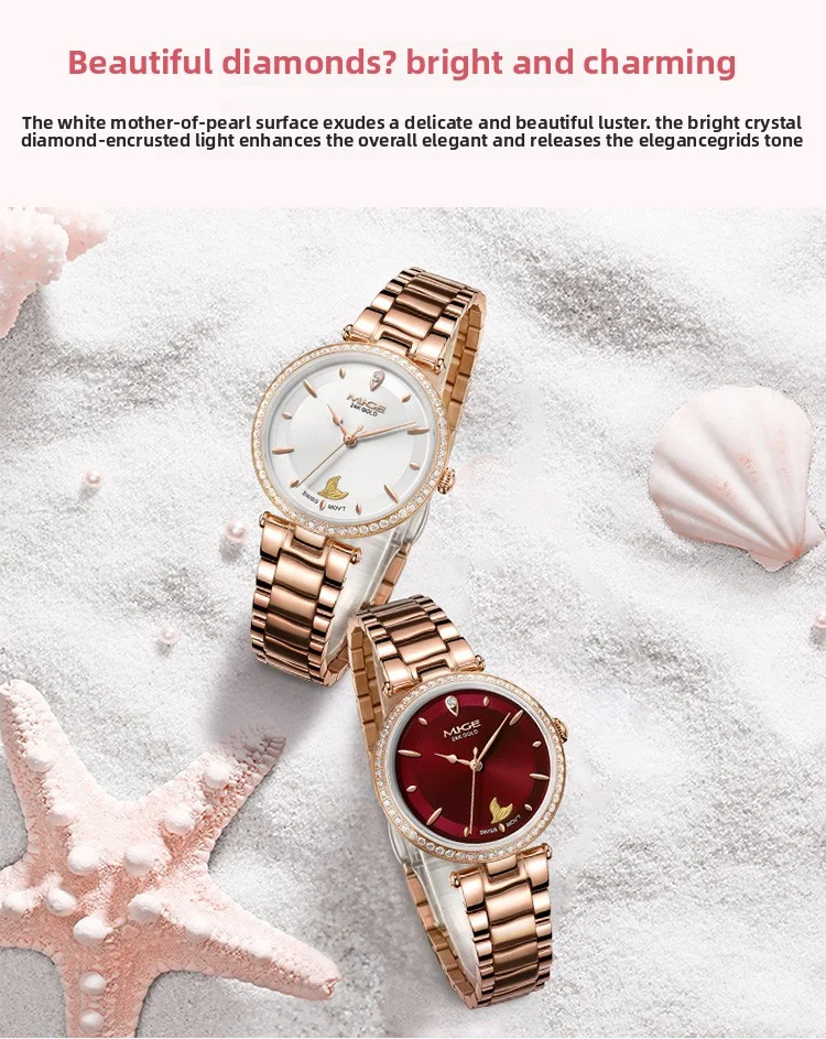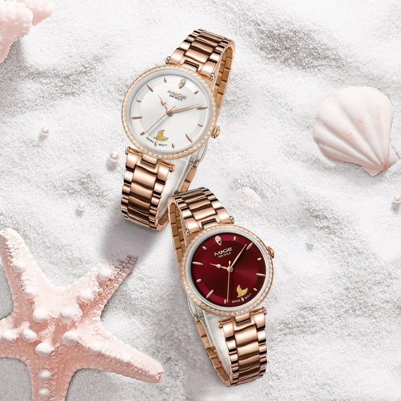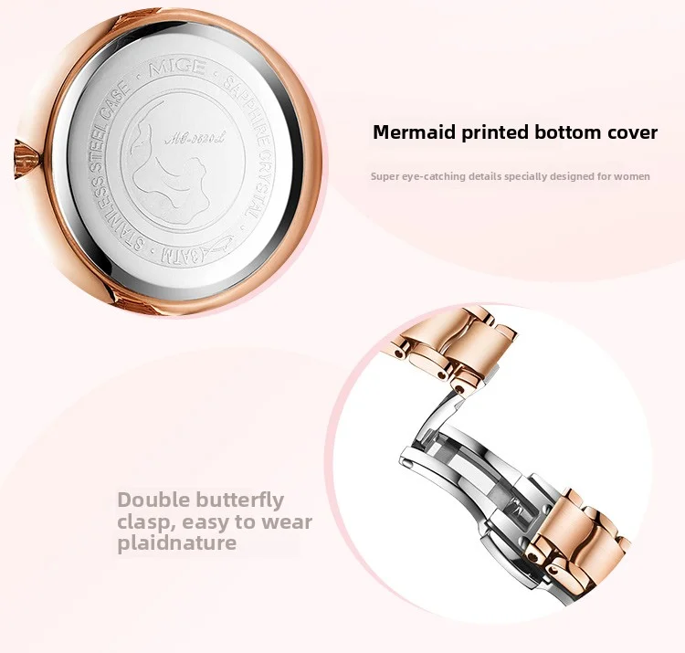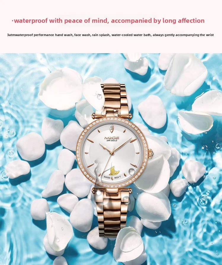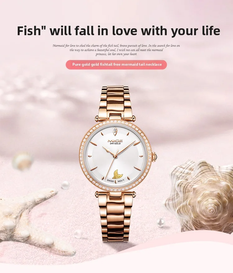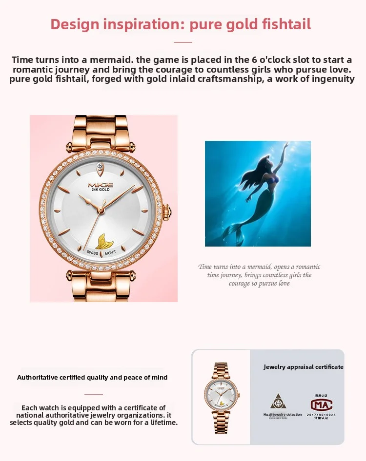 Mige brand steel case automatic waterproof gift for lady Mermaid Gold Coin watch business mechanical movement watches for women