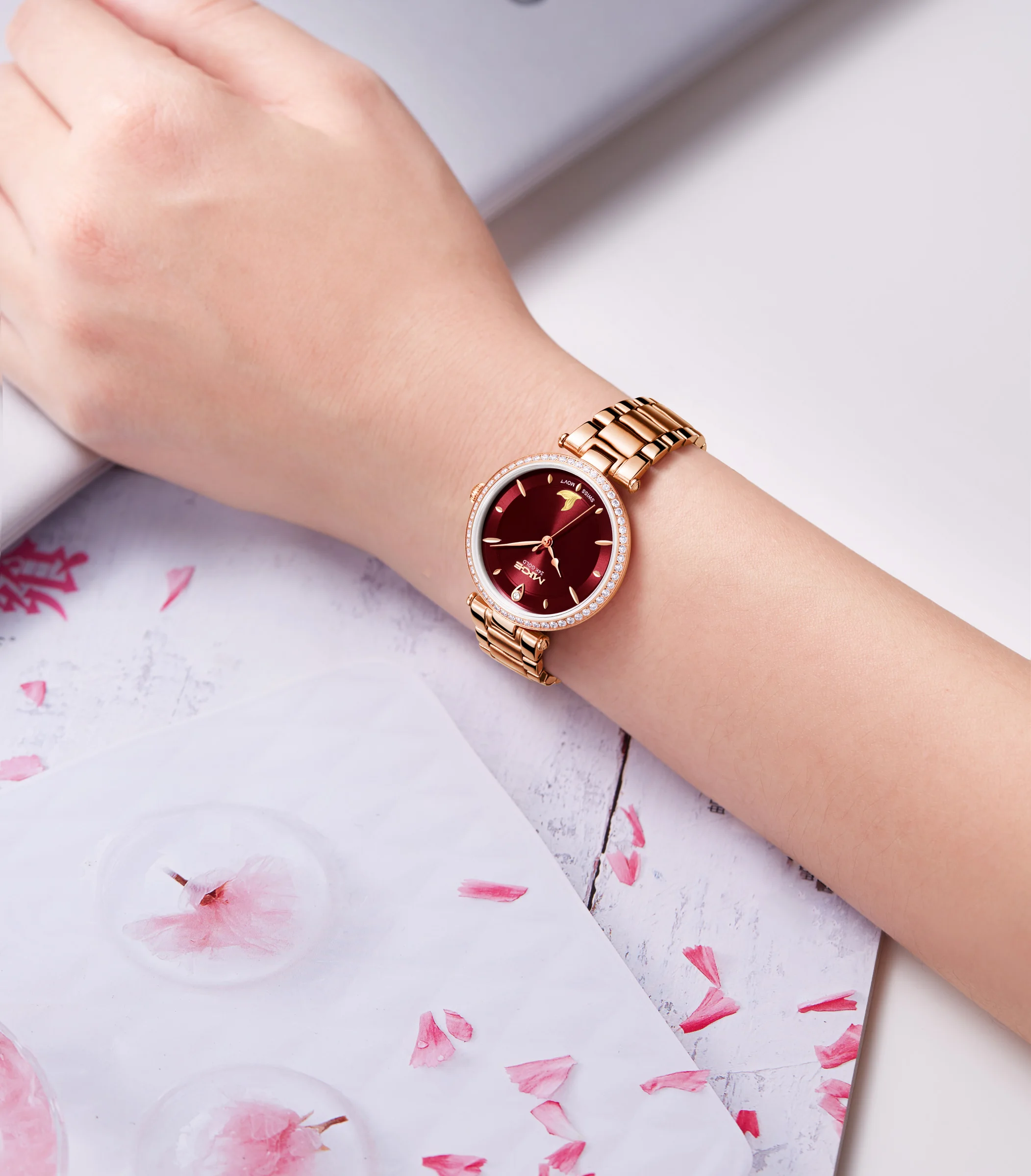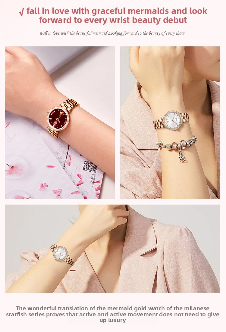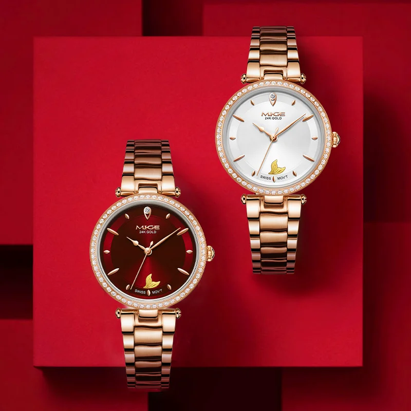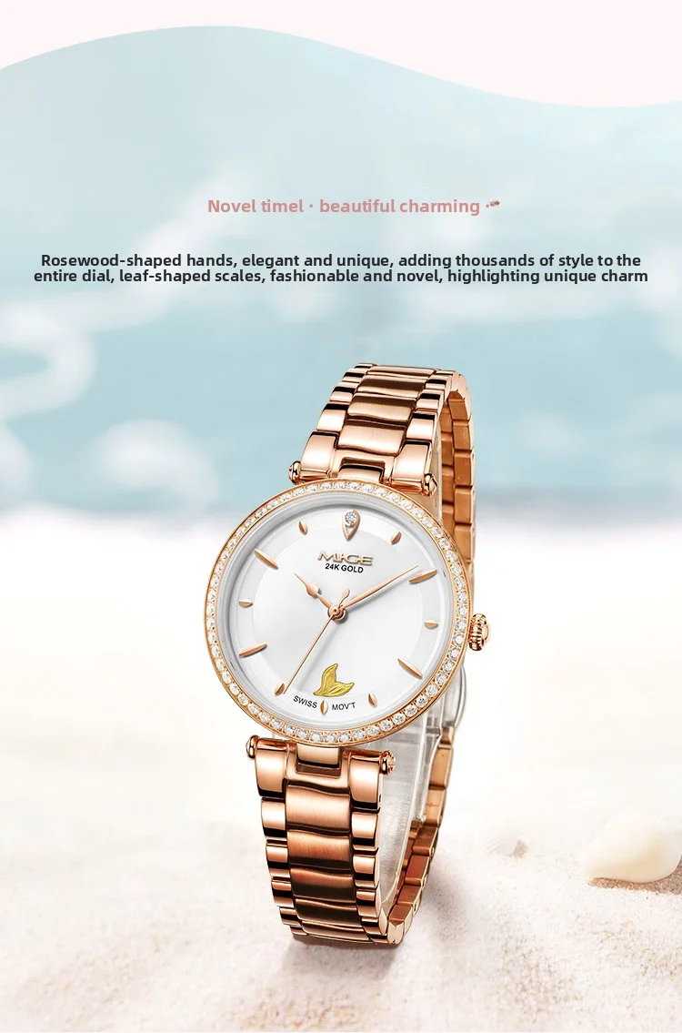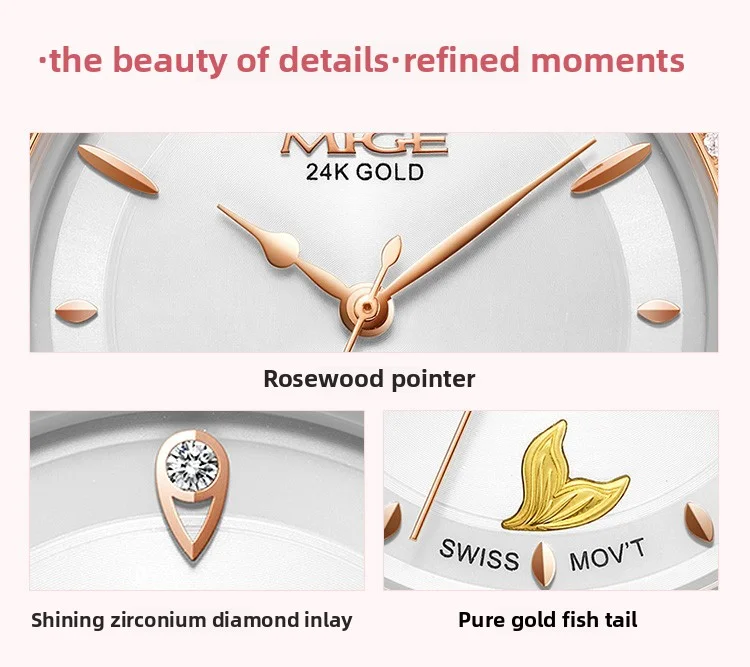 Mige brand steel case automatic waterproof gift for lady Mermaid Gold Coin watch business mechanical movement watches for women
