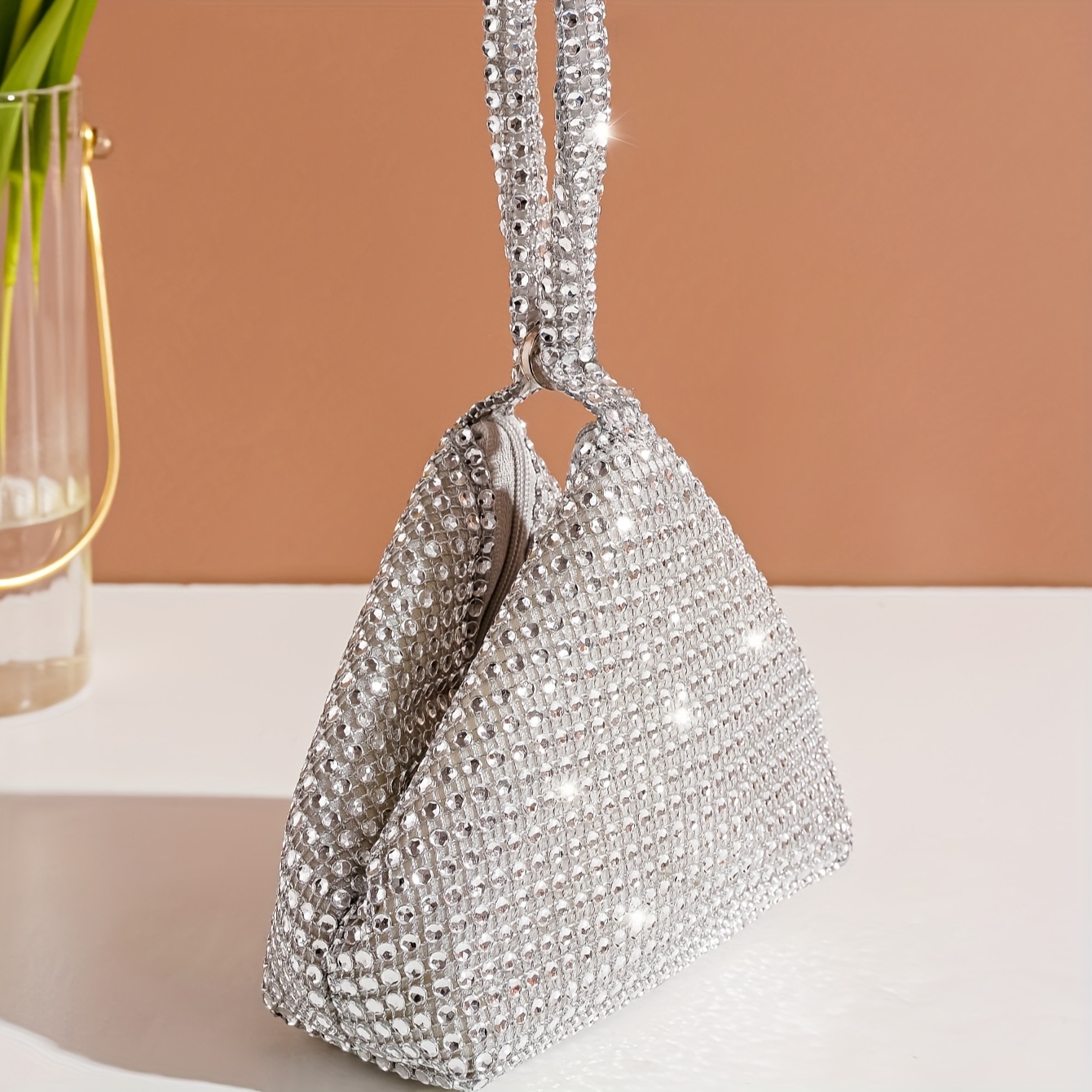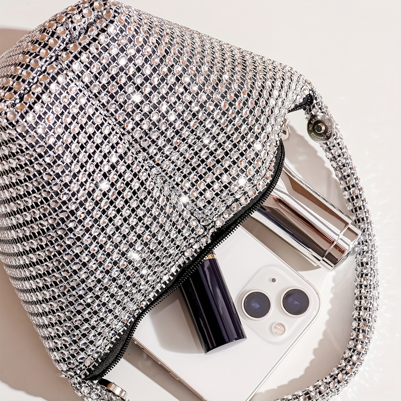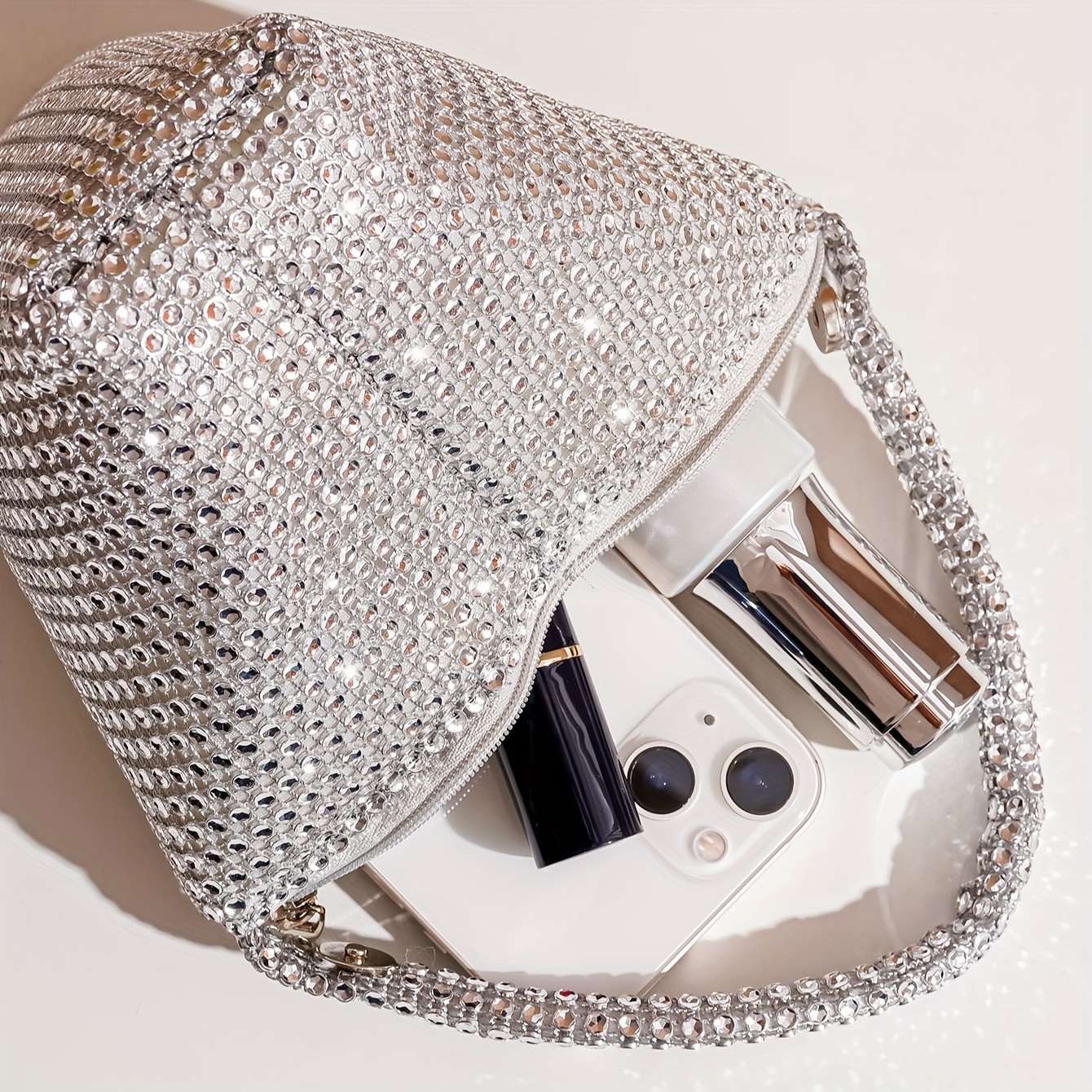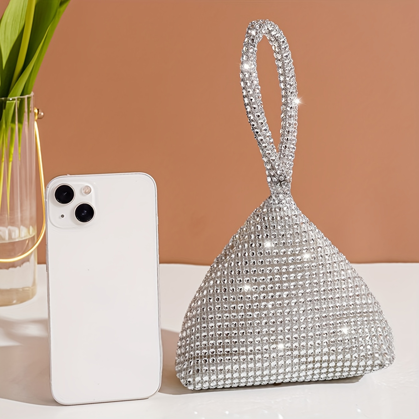 Mini Evening Bag with Diamond Embellishments, a Stylish Handbag for Socialites, a Small Wallet-Style Clutch, And a Fashionable Party Purse.