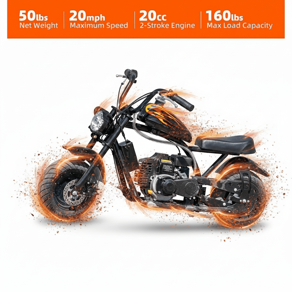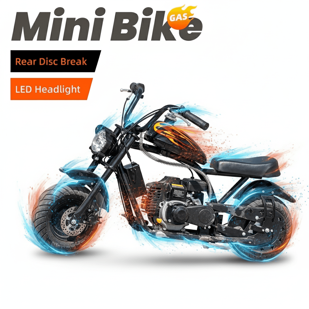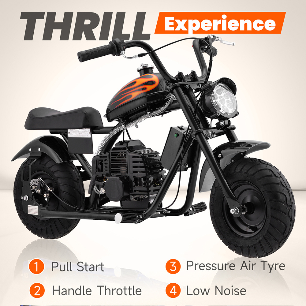 Mini Off-Road Dirt Bike, 49 CC 2-Stroke Gas Chopper Bike with Off-Road Tire, Disc Brakes, Led Headlight, Max Load 160Lbs, Up to 20Mph