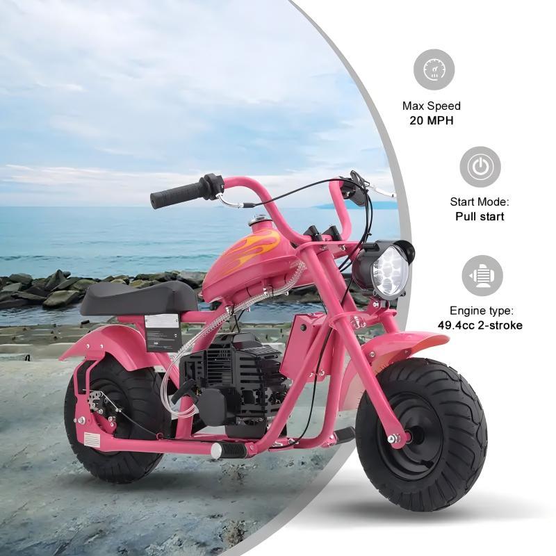 Mini Off-Road Dirt Bike, 49 CC 2-Stroke Gas Chopper Bike with Off-Road Tire, Disc Brakes, Led Headlight, Max Load 160Lbs, Up to 20Mph