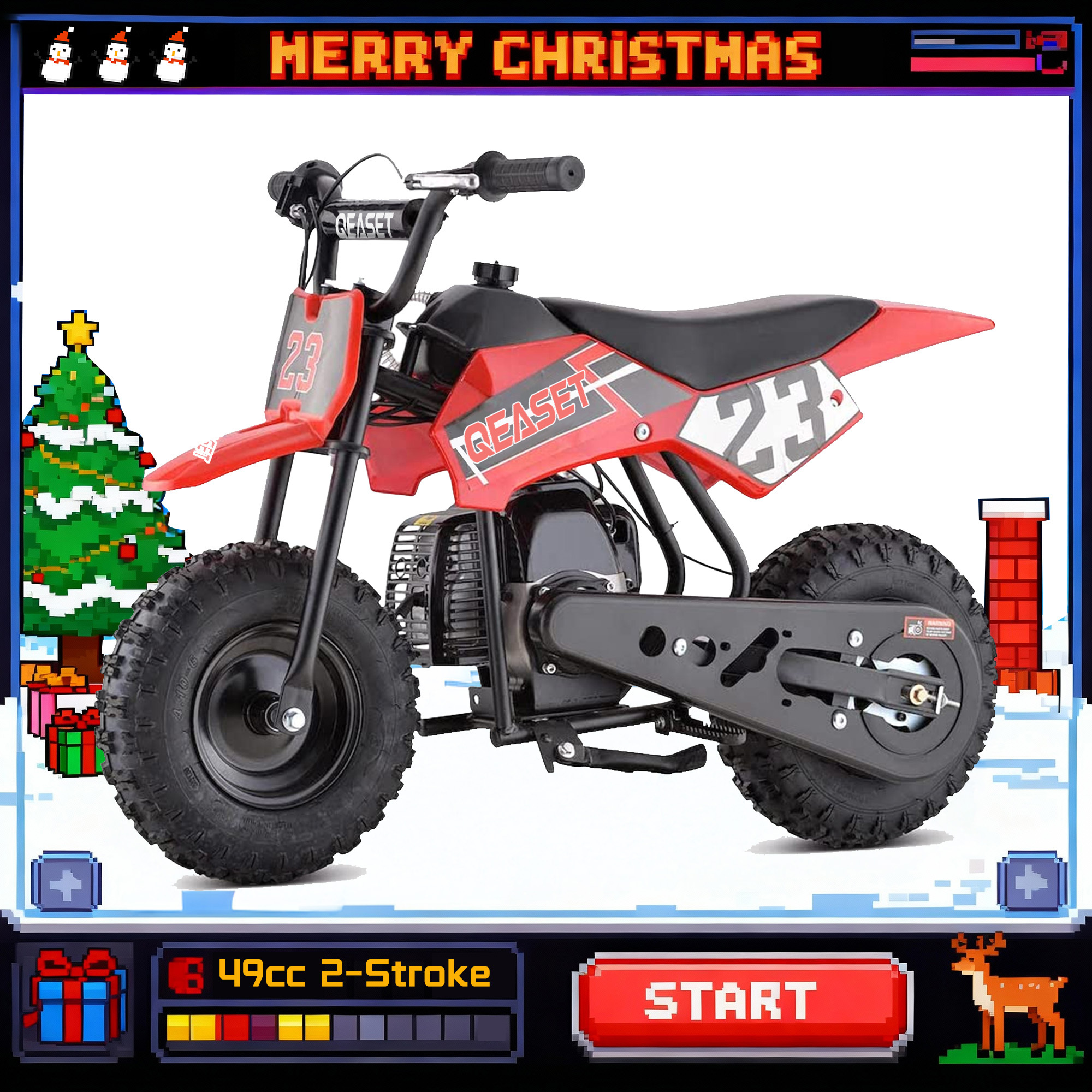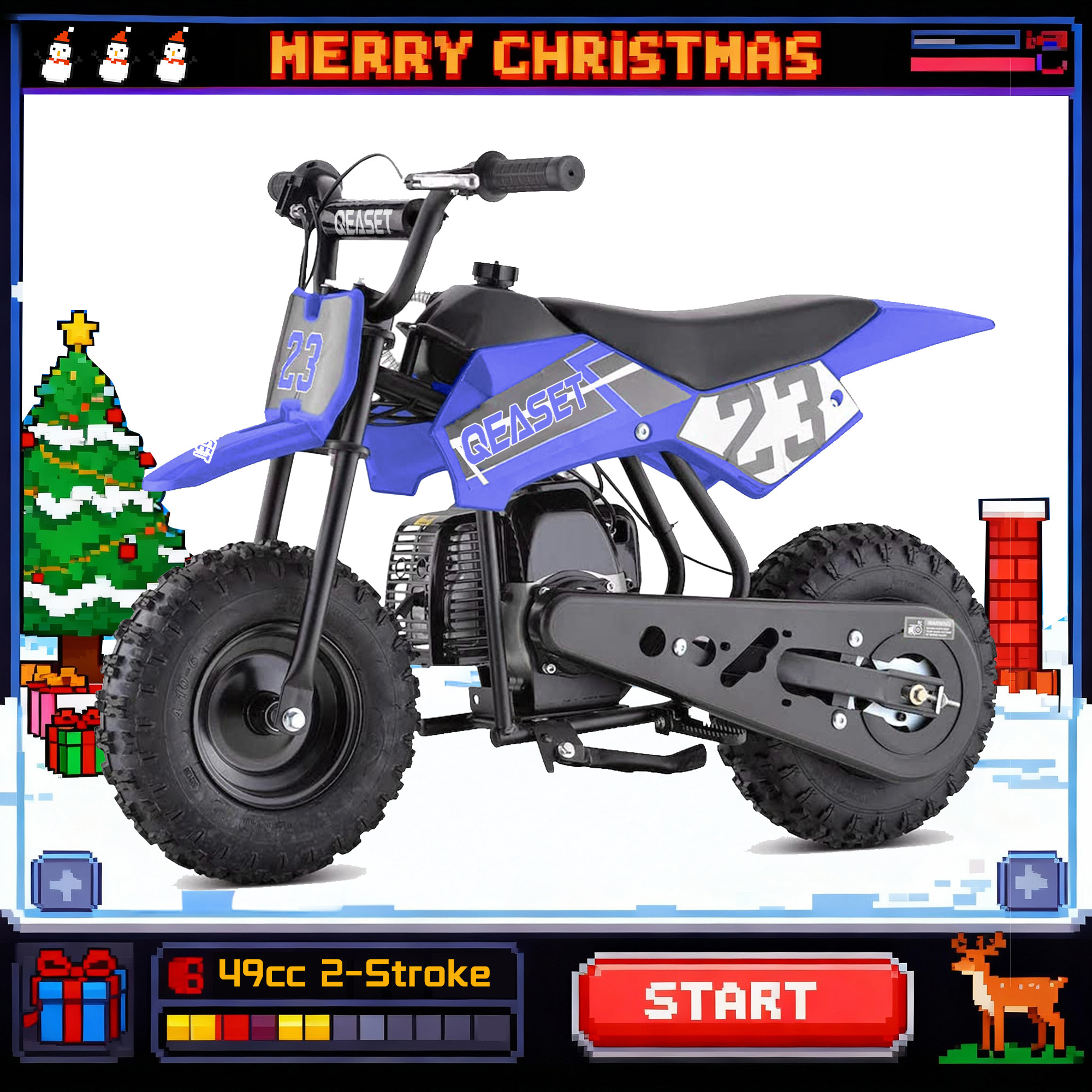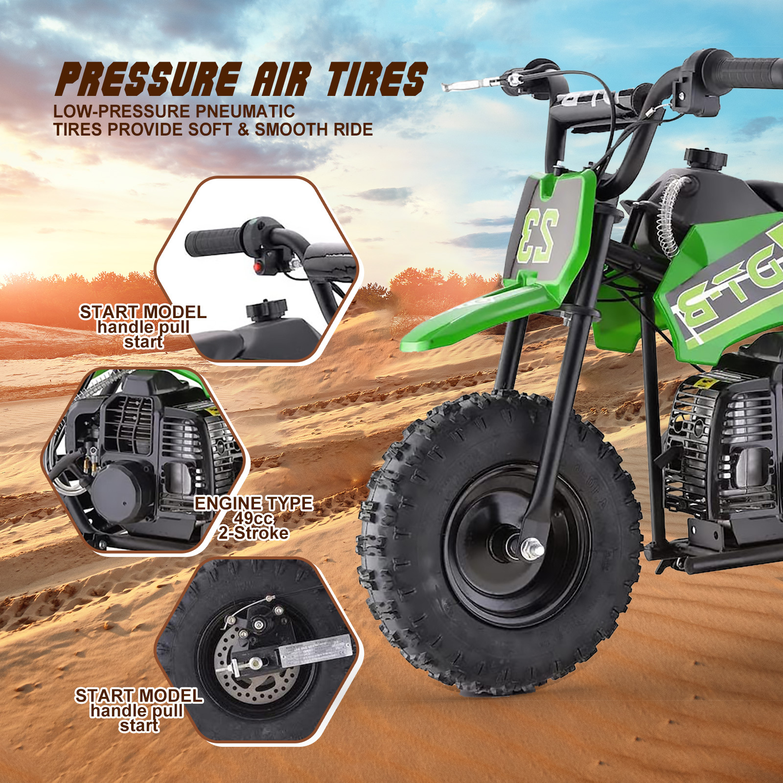 Mini Off-Road Dirt Bike, 49CC 2-Stroke Gas Bike with Off-Rode Tire, Suspensions, Disc Brakes, Max Load 160Lbs, Max Speed 20Mph
