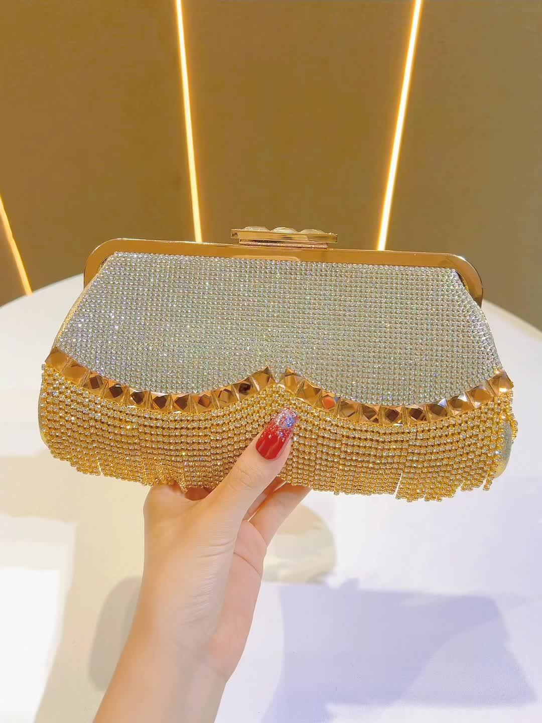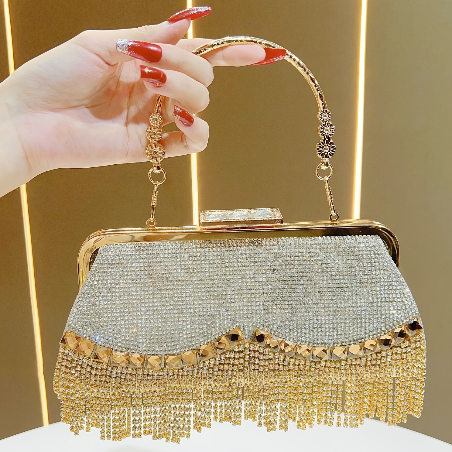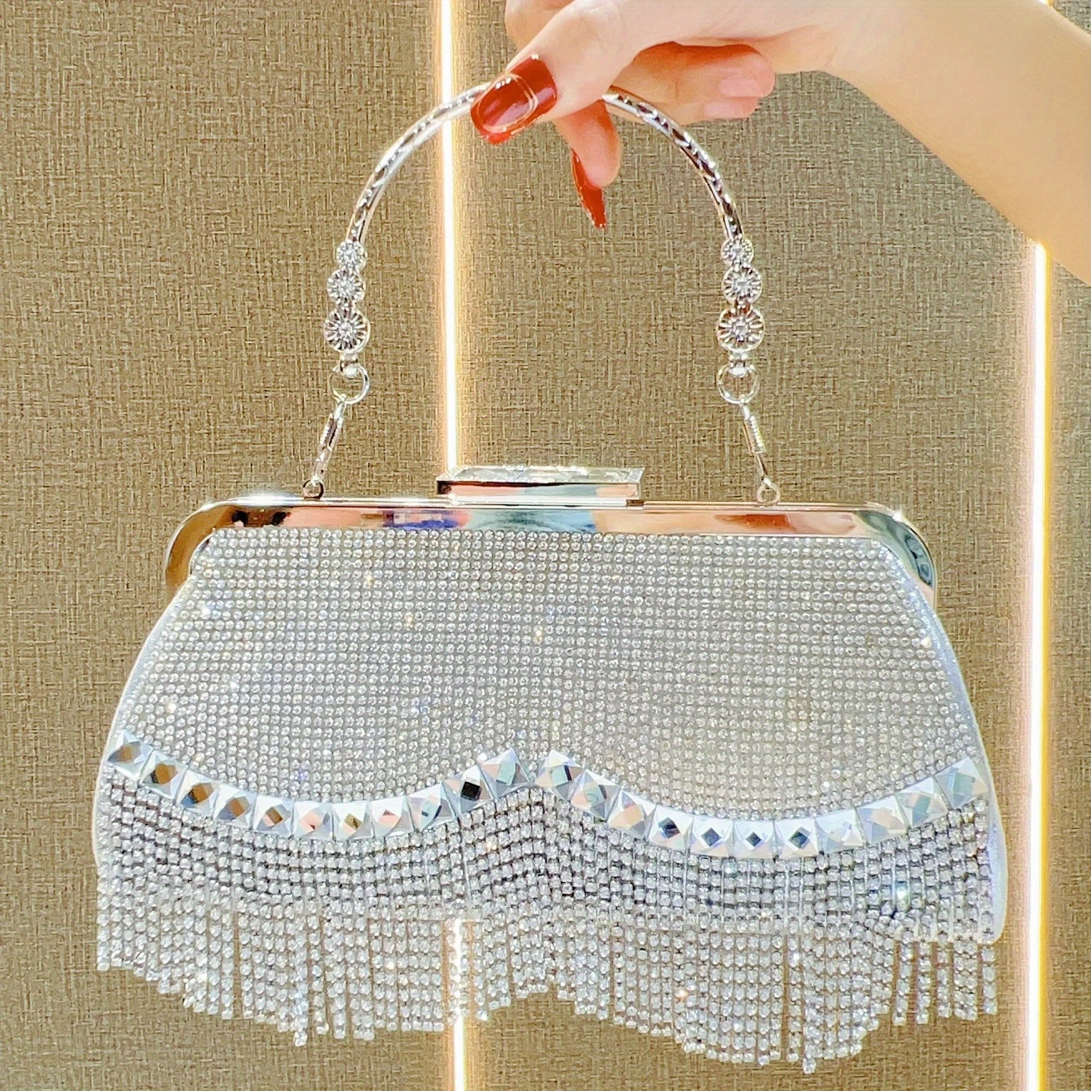 MISSING YOU Sparkling Rhinestone-Encrusted Handbag & Crossbody Bag with Detachable Strap – Elegant Evening Clutch, Wedding Party Accessory, Shiny for Daily Use, (Suitable for Weddings, Parties, Shopping)