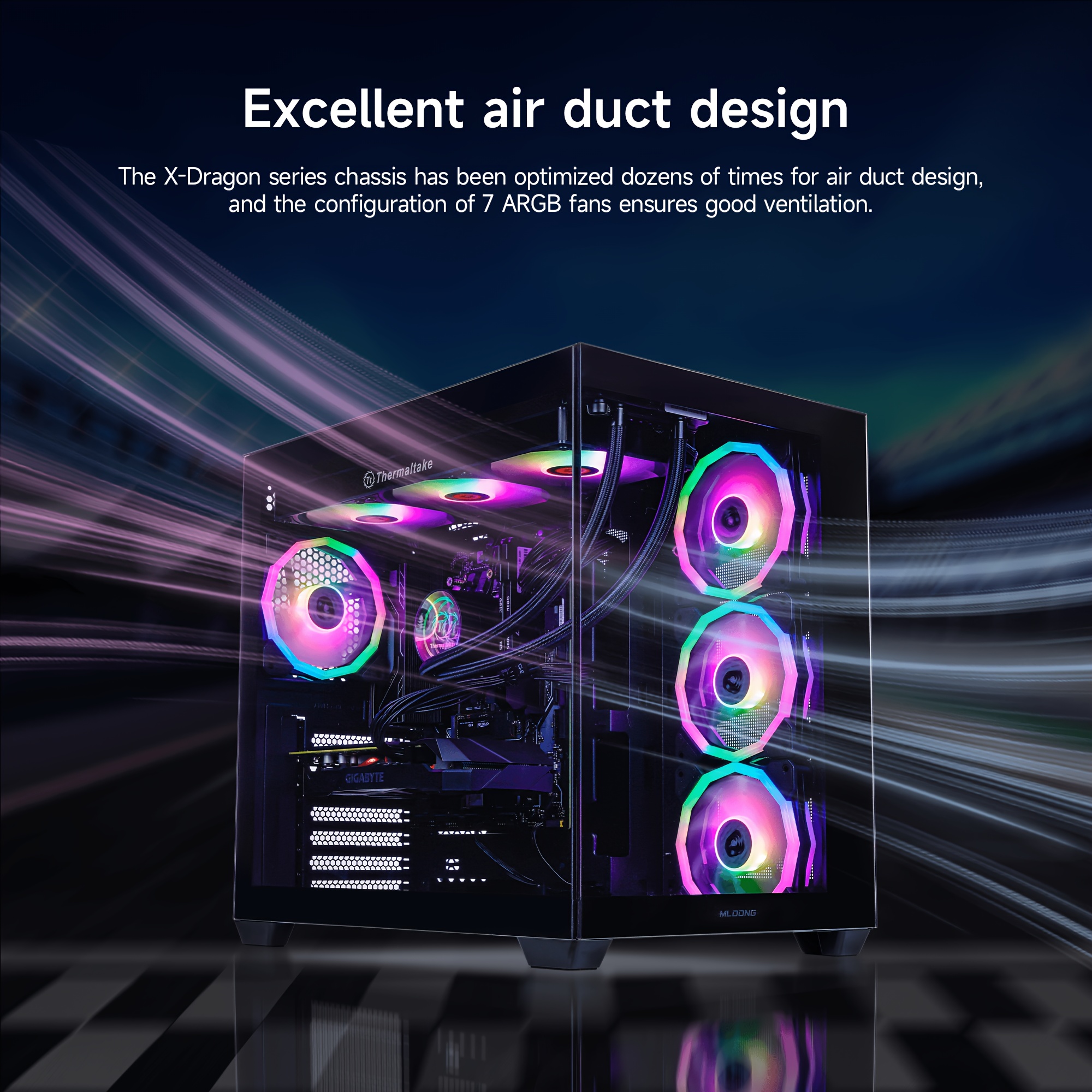 Advanced ARGB Cooling: A precision-tuned airflow system featuring 7 Addressable RGB fans that keep the high-performance internals cool while allowing for total aesthetic customization.