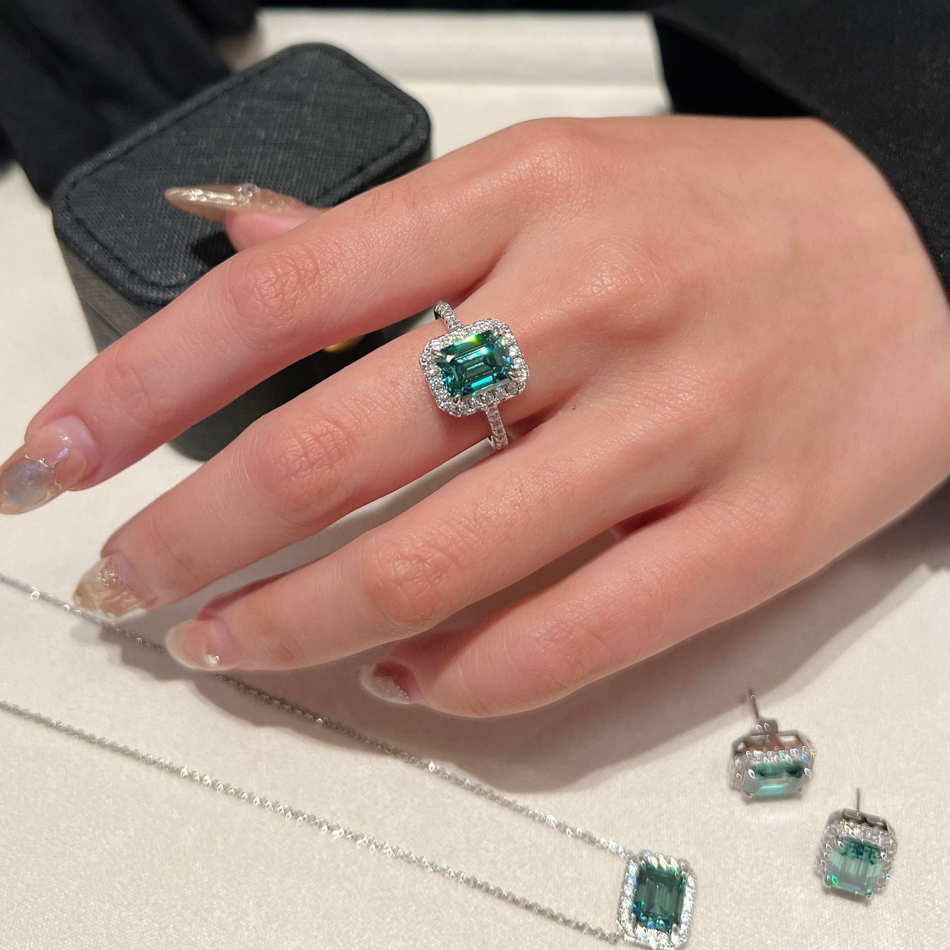 Moissanite Ring S925 Silver 3-carat 7* 2.38gal Green Light Luxury Necklace Earrings Moissanite Moissanite Jewelry Set Elegant Romantic Classic Design Fashionable Luxury Jewelry Valentine’s Day Birthday Gift Ideal Choice