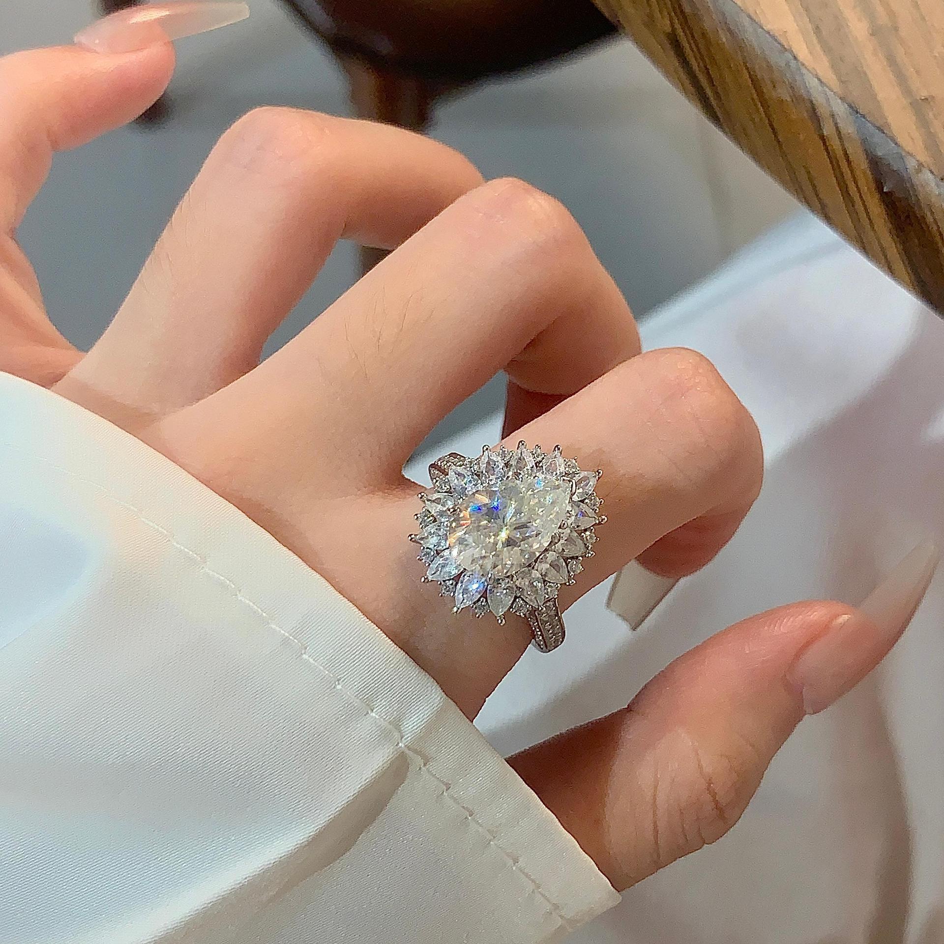 Moissanite Ring S925 Silver 4 carat 8 12 Teardrop Pear Shaped Light Luxury Moissanite Moissanite Wedding Ring, Elegant, Romantic, Classic Design, Fashionable Luxury Jewelry, Ideal Choice for Valentine’s Day Birthday Gift