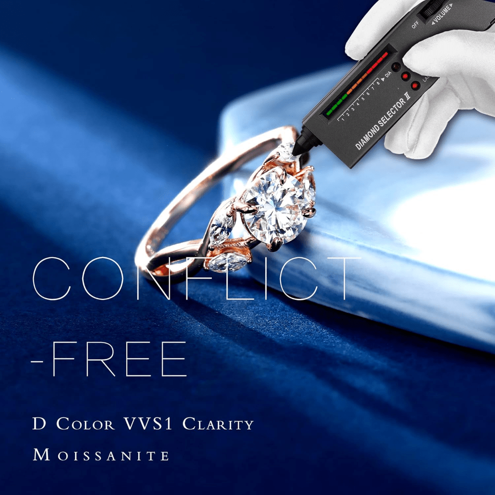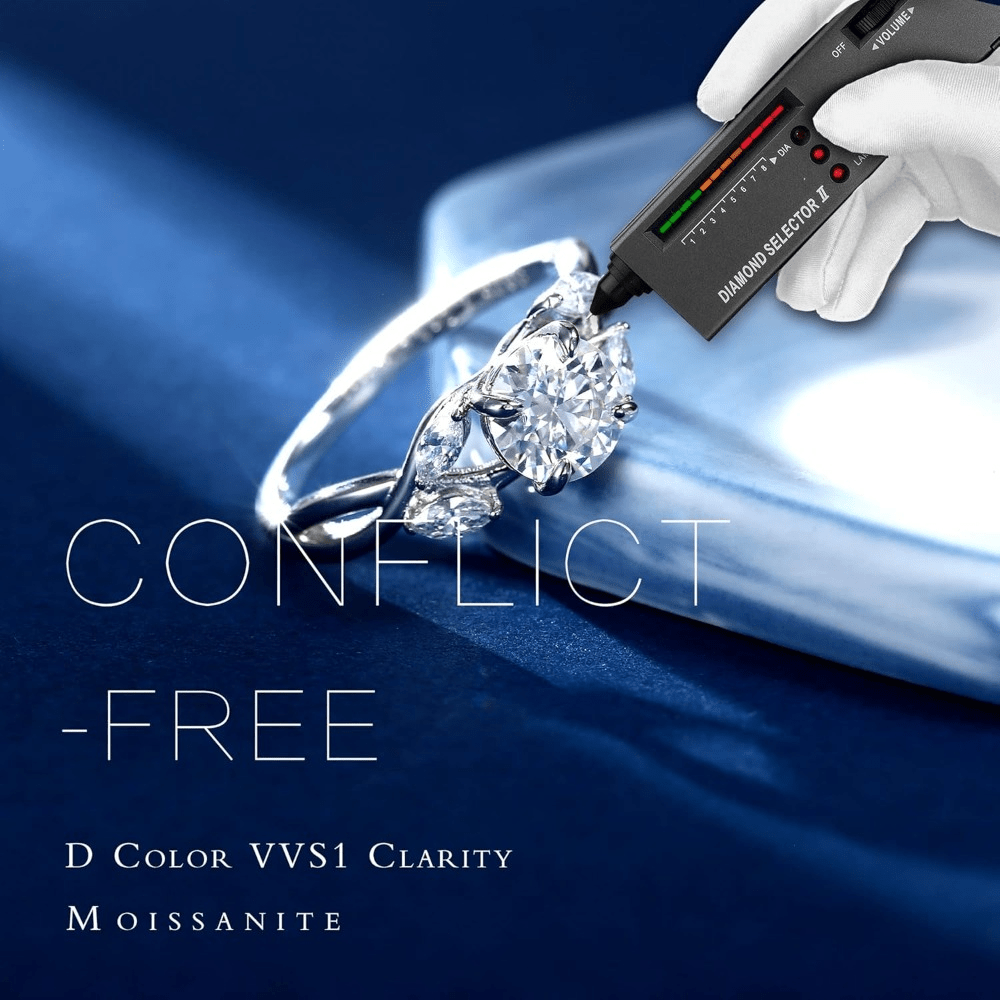 1.2-Carat “D Color” Gemstone: The ring features a stunning 1.2ct lab-created Moissanite. Graded at D Color (the highest colorless rating) and VVS1 Clarity, the stone provides an icy, brilliant contrast to the organic band.
