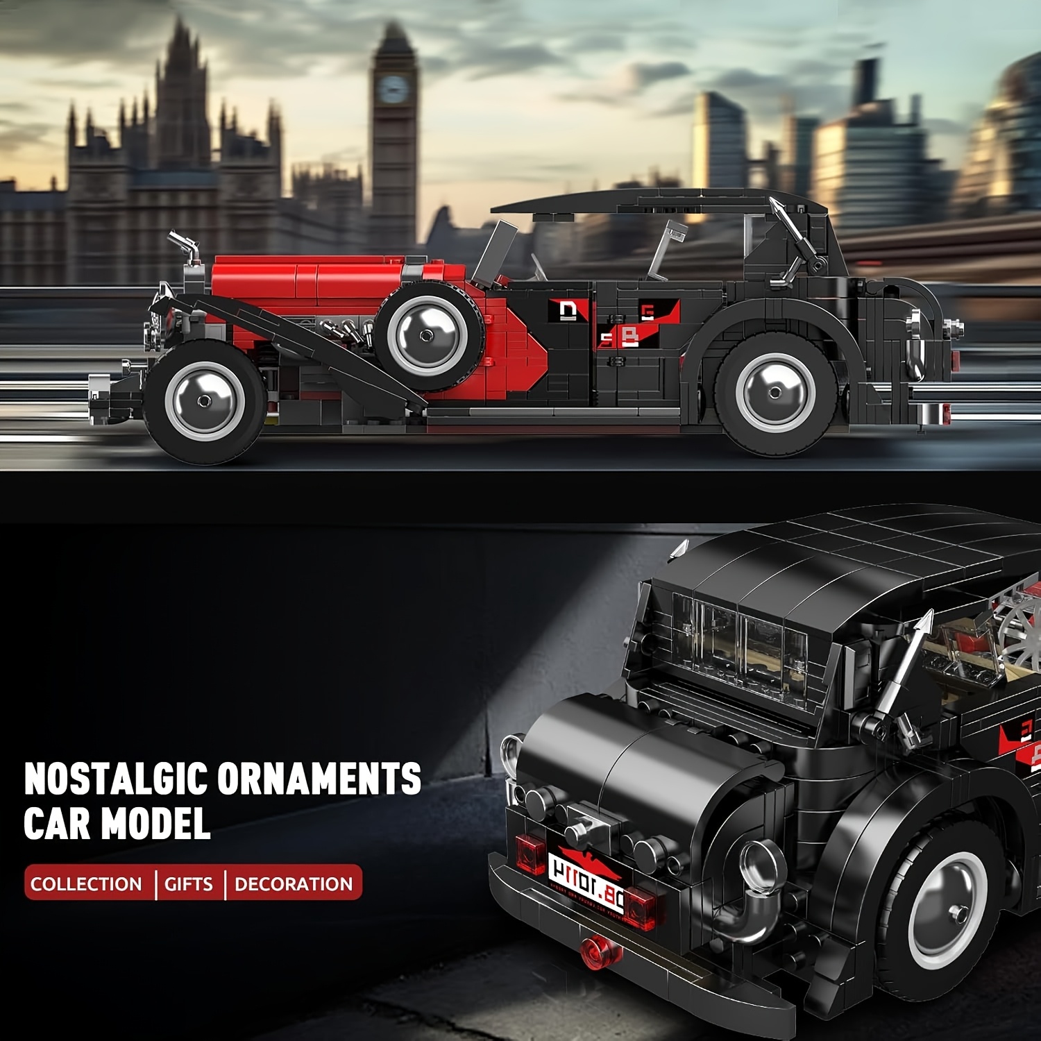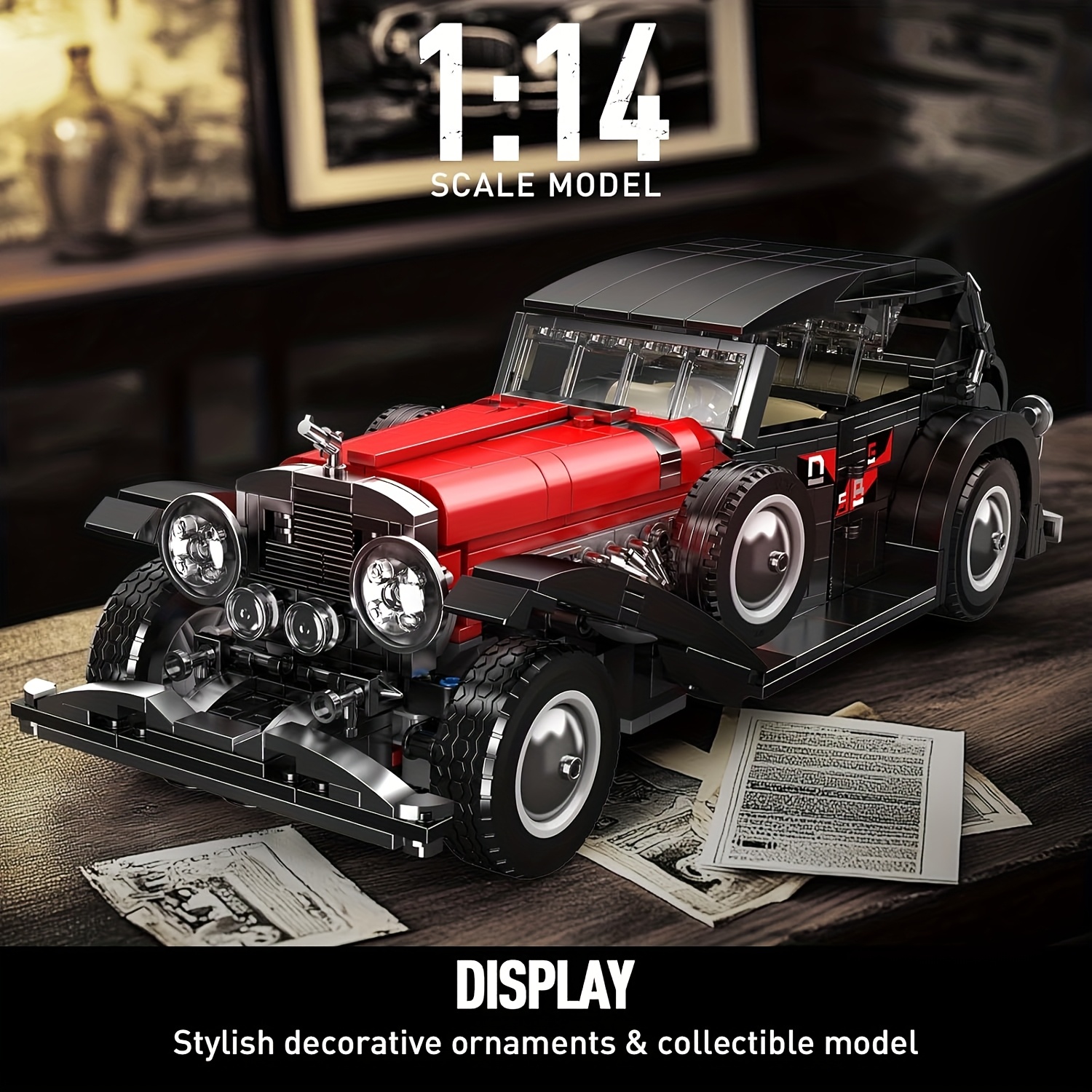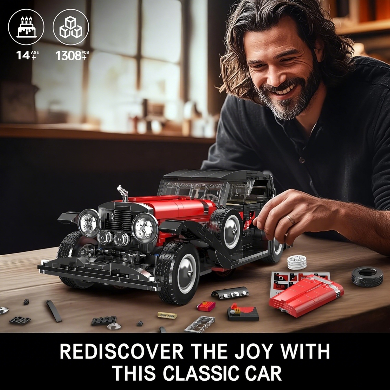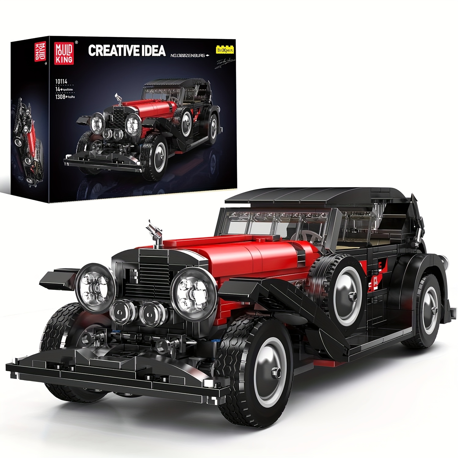 Mould King 10114 Classic Cars Building Kits, MOC Vintage Car Model Building Blocks Set, Gift For Adult Collections Enthusiasts(1308 Pcs )
