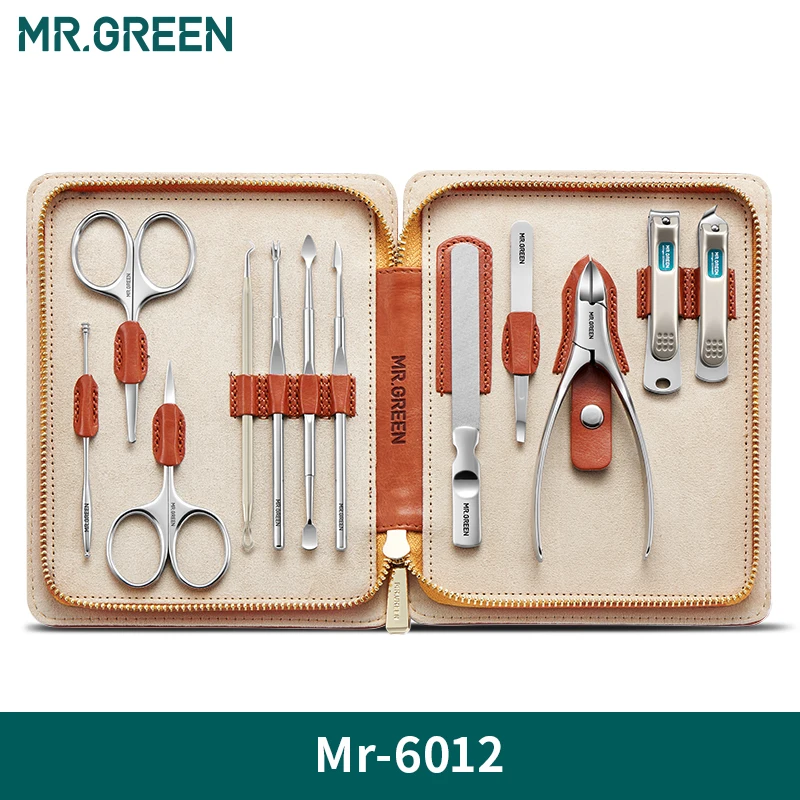 MR.GREEN Manicure Set 12 In 1 Full Function Kit Professional Stainless Steel Pedicure Sets With Leather Portable Case Idea Gift