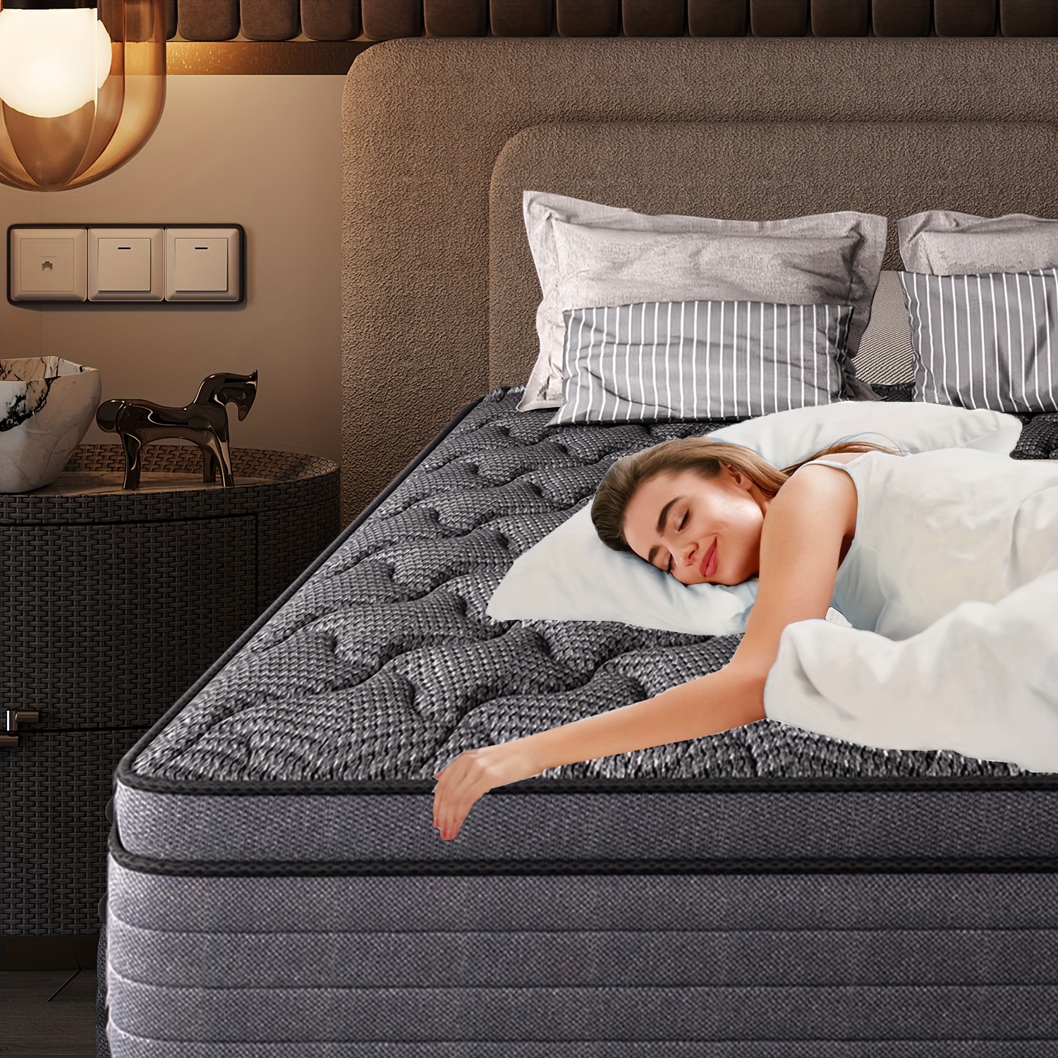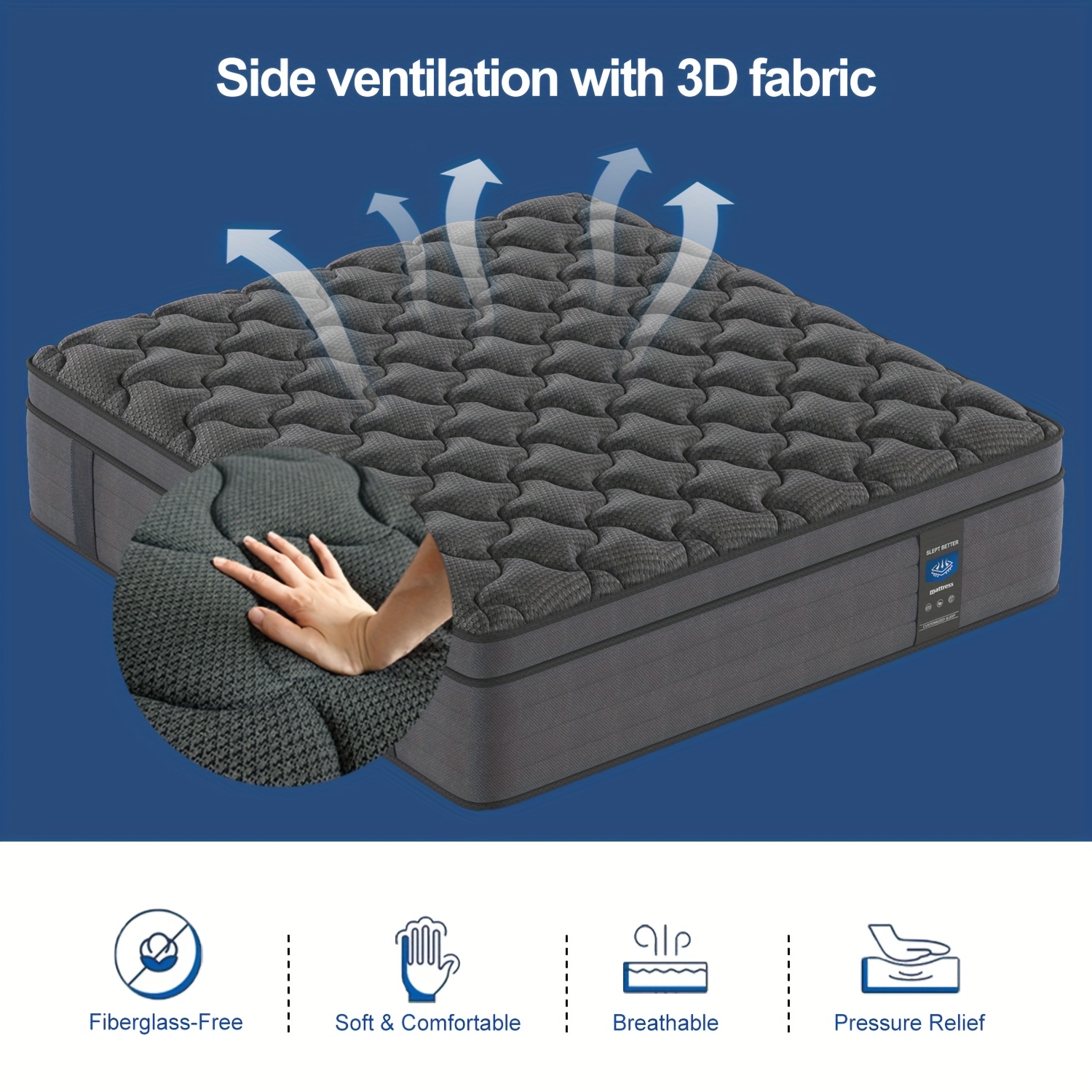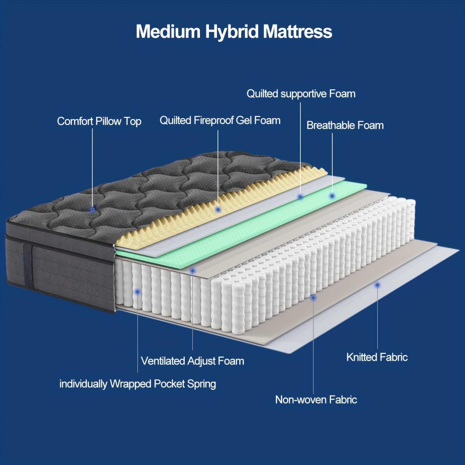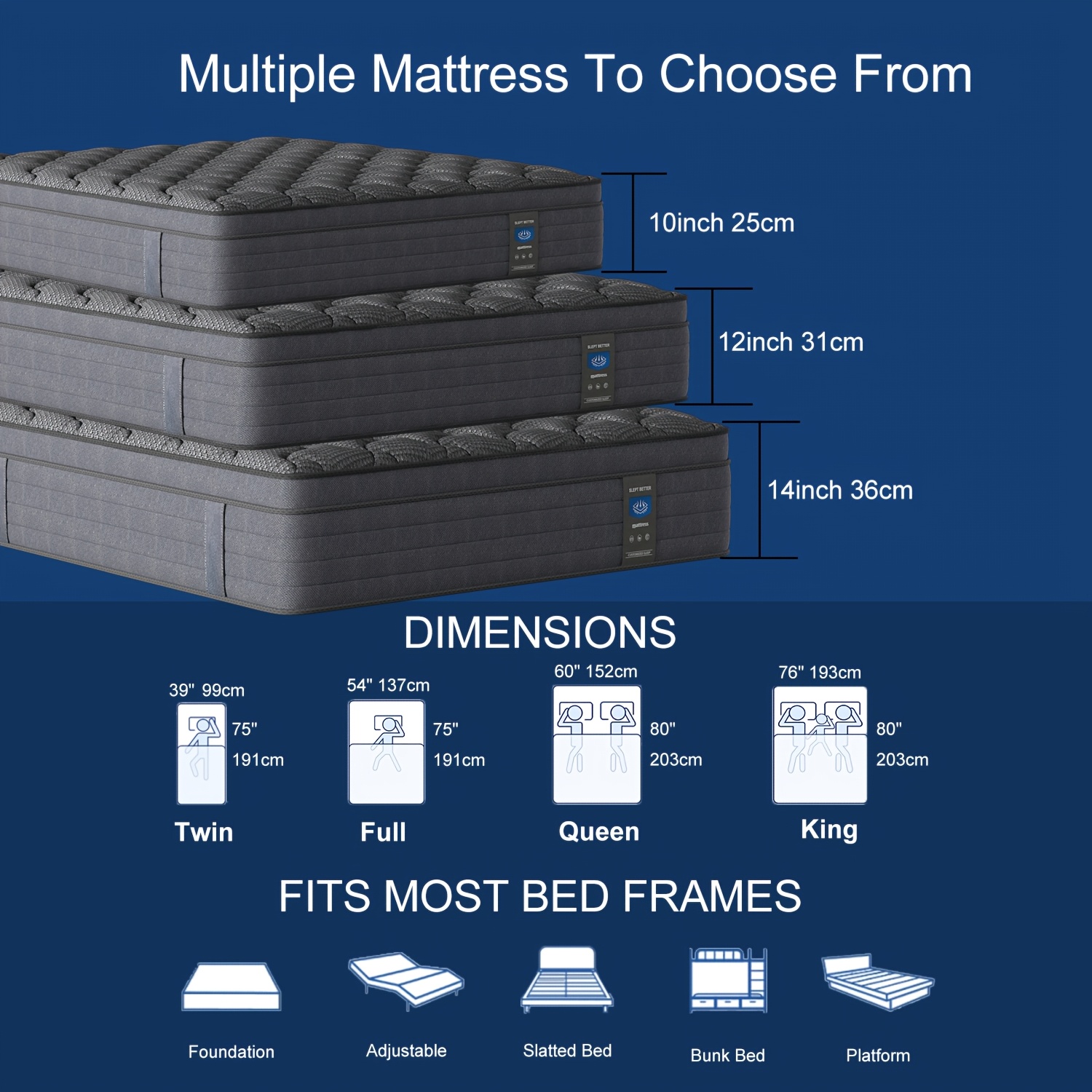 MRH New 10 12 14-Inch Twin Full Queen King Boxed Memory Foam Hybrid Mattress Medium Hardne with Ergonomic Individual Springs, Breathable Fabric, Lumbar Support, for Side/Back Sleepers, Guest Rooms, Hotels, And Home Bedrooms