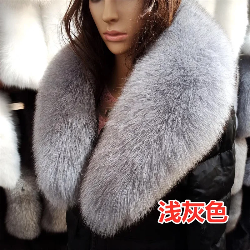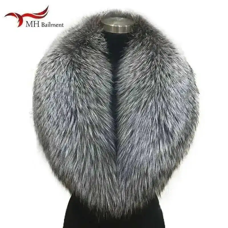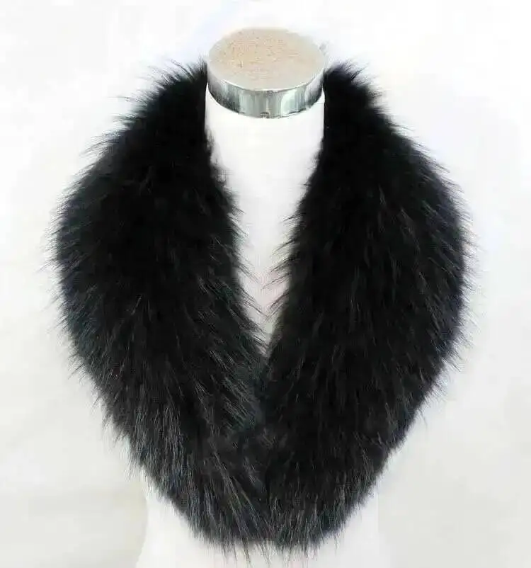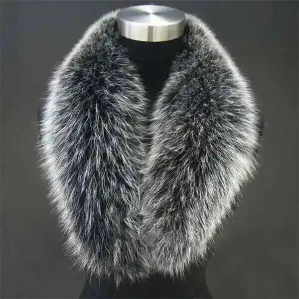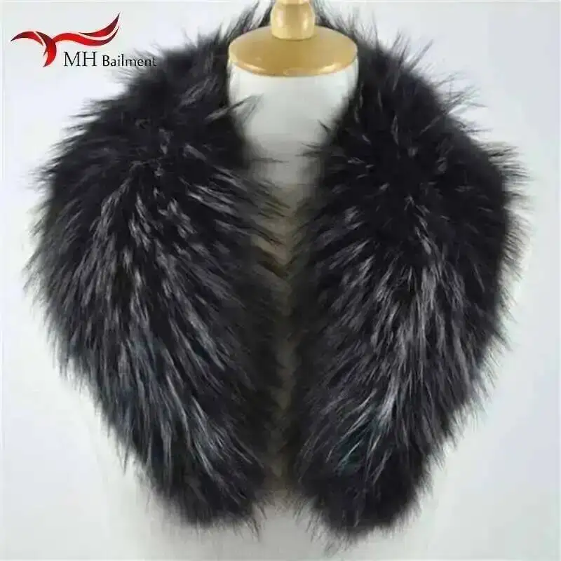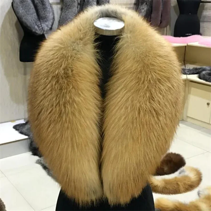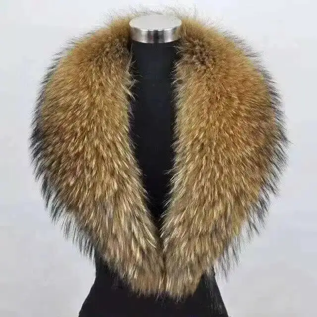 Natural Color Raccoon Fox Real Fur Collar Scarf Genuine Big Size Scarves Warp Shawl Neck Warmer Stole Muffler with Clip Loops #6
