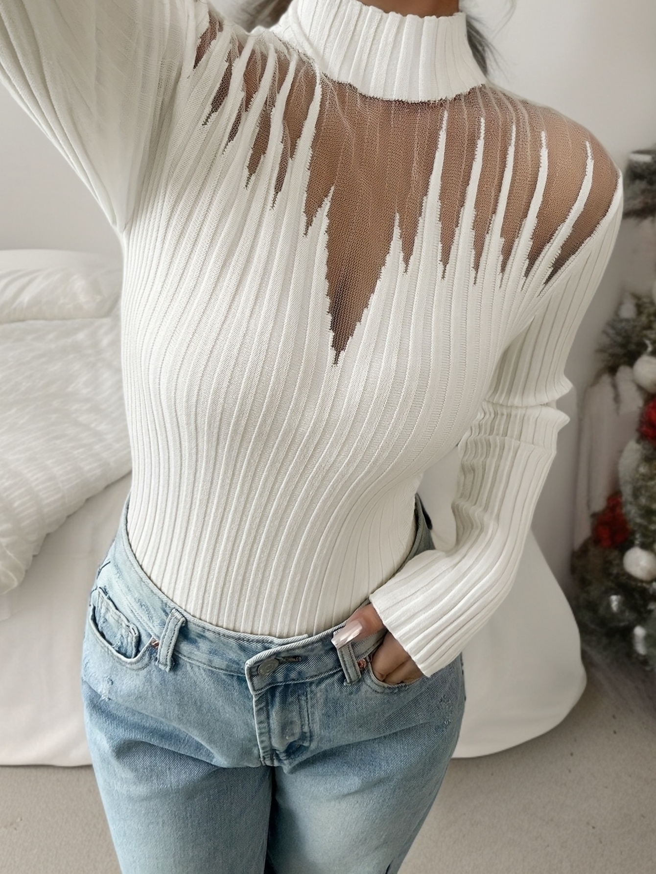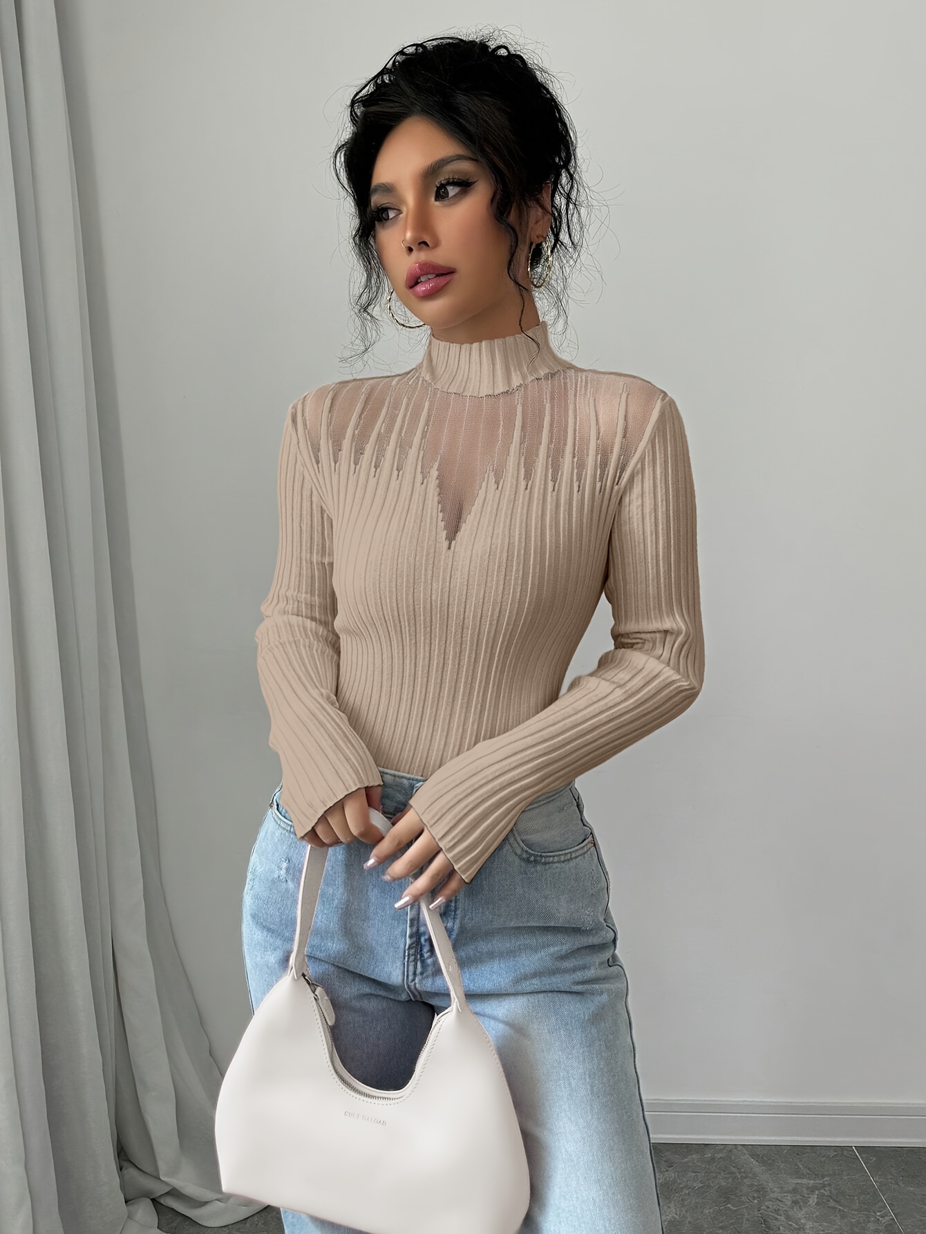New Women’s Sexy Elegant Fashion Turtleneck Top, Short Slim-Fit Long Sleeve, Exquisite Hollow Mesh Design, Beautiful Pullover