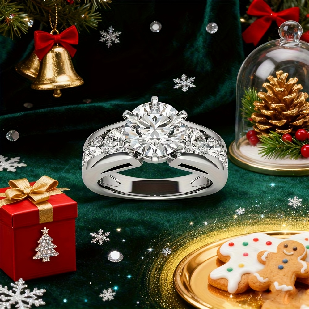Nitya Jewels 10 CT Round Cut Colorless Moissanite Engagement Ring Wedding Bridal Ring Moissanite Ring Anniversary Solitaire Halo Accented Promise Antique Golden Silvery Ring