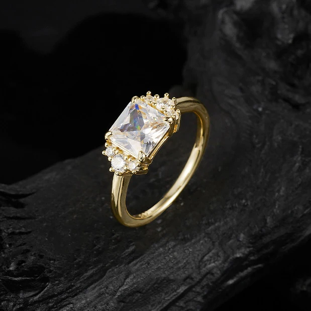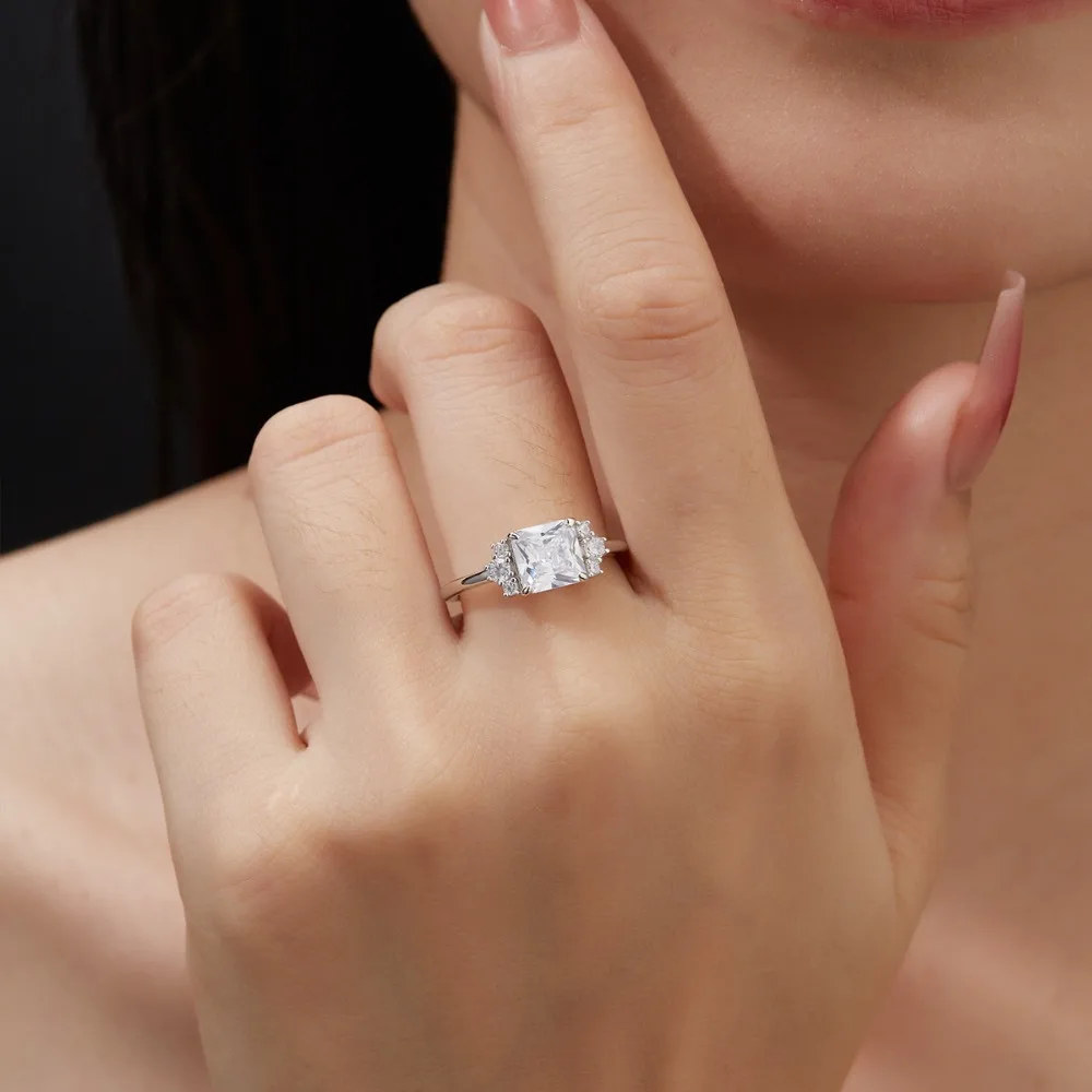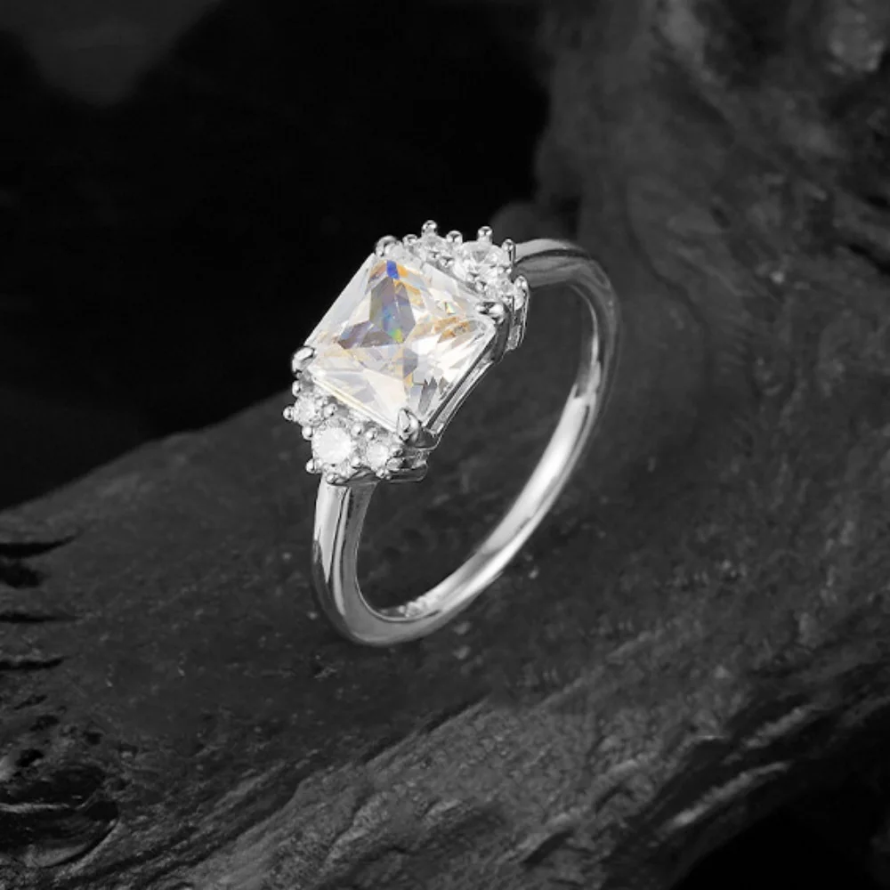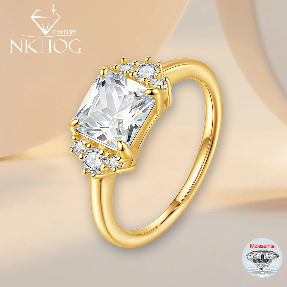 NKHOG 2CT Real Moissanite Rings For Women 925 Sterling Silver Wedding Square Diamond Band 18K Plated Fine Jewelry GRA Certified