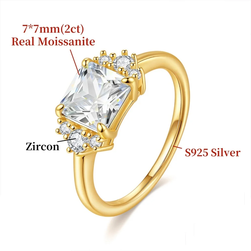 NKHOG 2CT Real Moissanite Rings For Women 925 Sterling Silver Wedding Square Lab Diamond Band 18K Plated Fine Jewelry Certified
