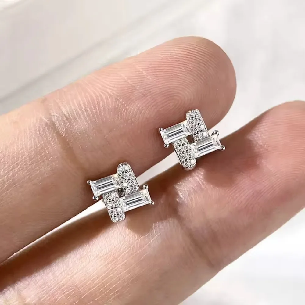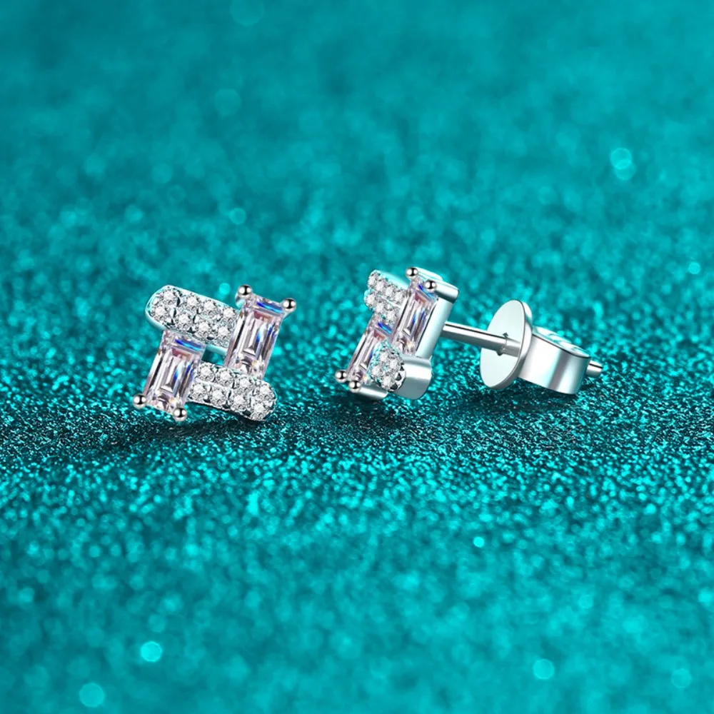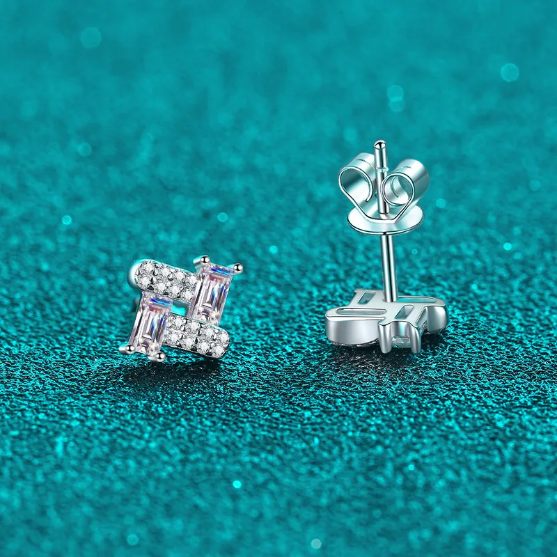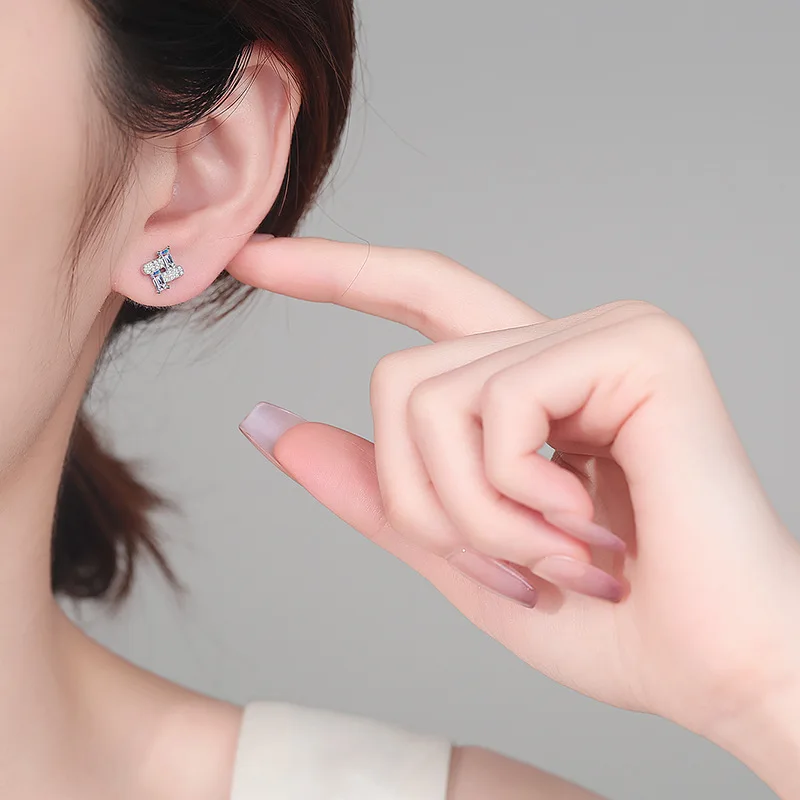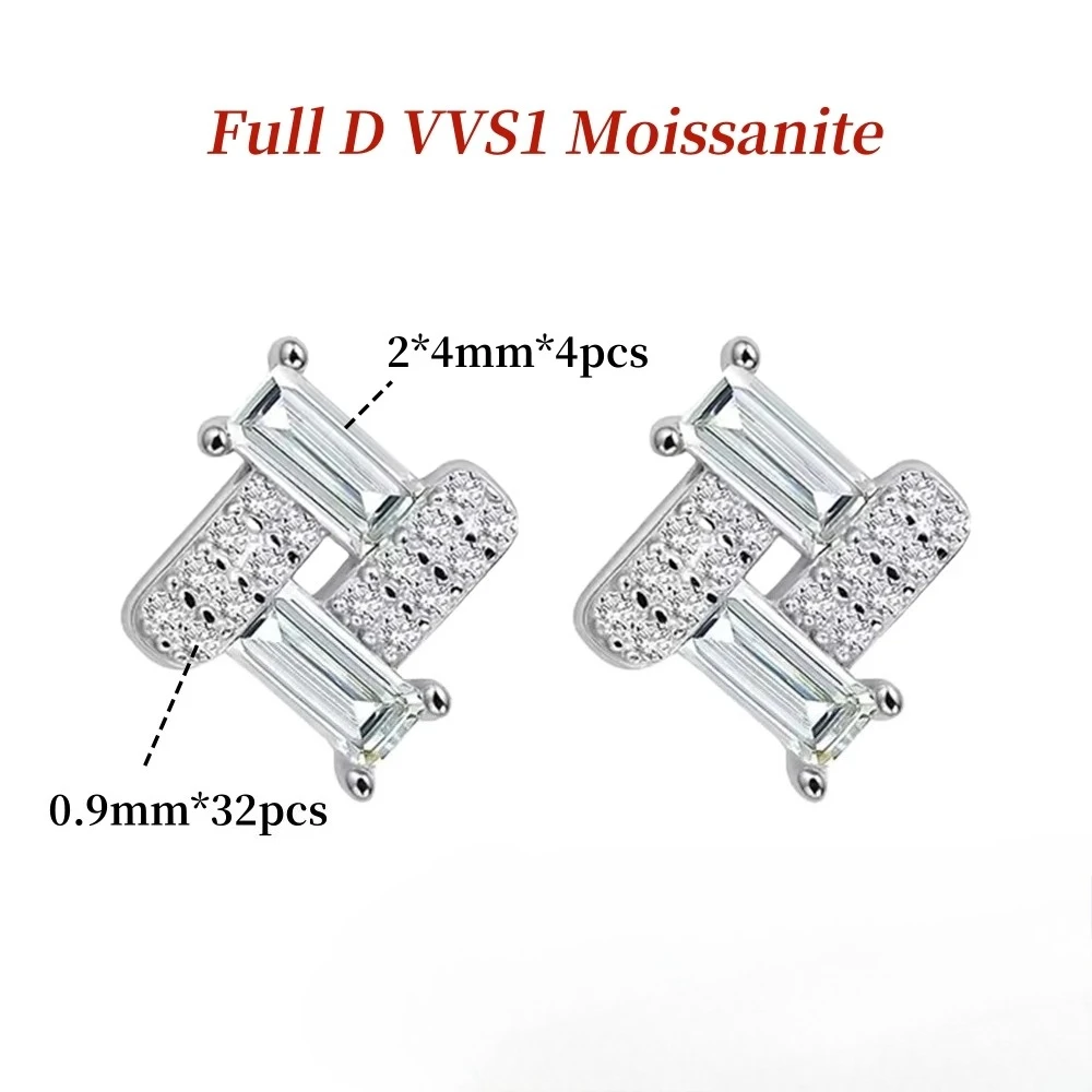 NKHOG Full Certified Moissanite Stud Earrings Women S925 Silver Rectangle Lab Diamond Ear Stud Wedding Party 18K Plated Jewelry