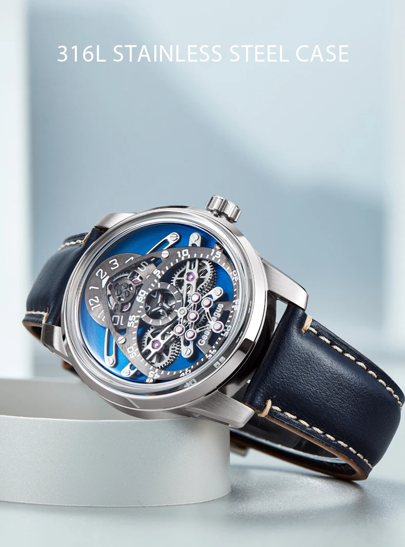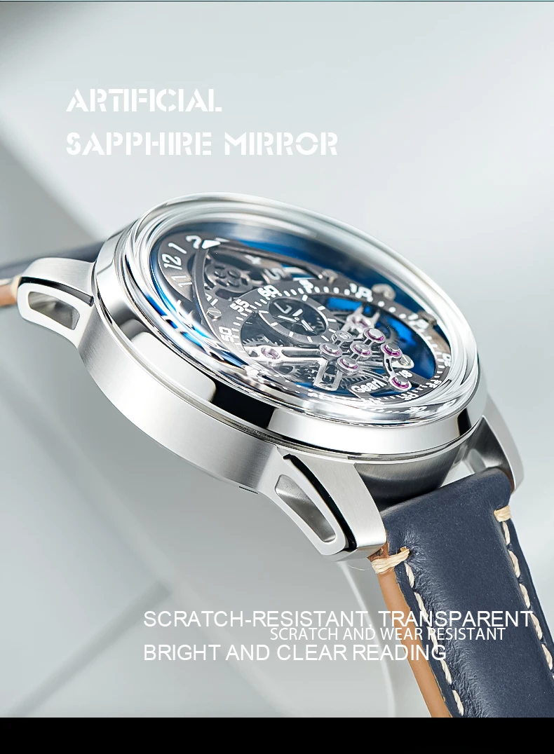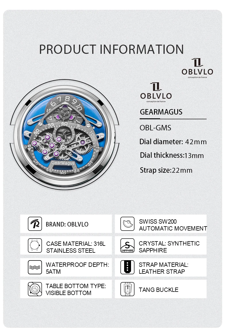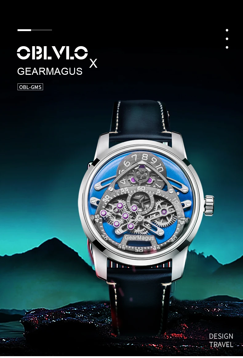 OBLVLO Men Automatic Watch 42MM Mechanical Wristwatch 50m Waterproof Sapphire Luminous Unique Concept Dial Limited