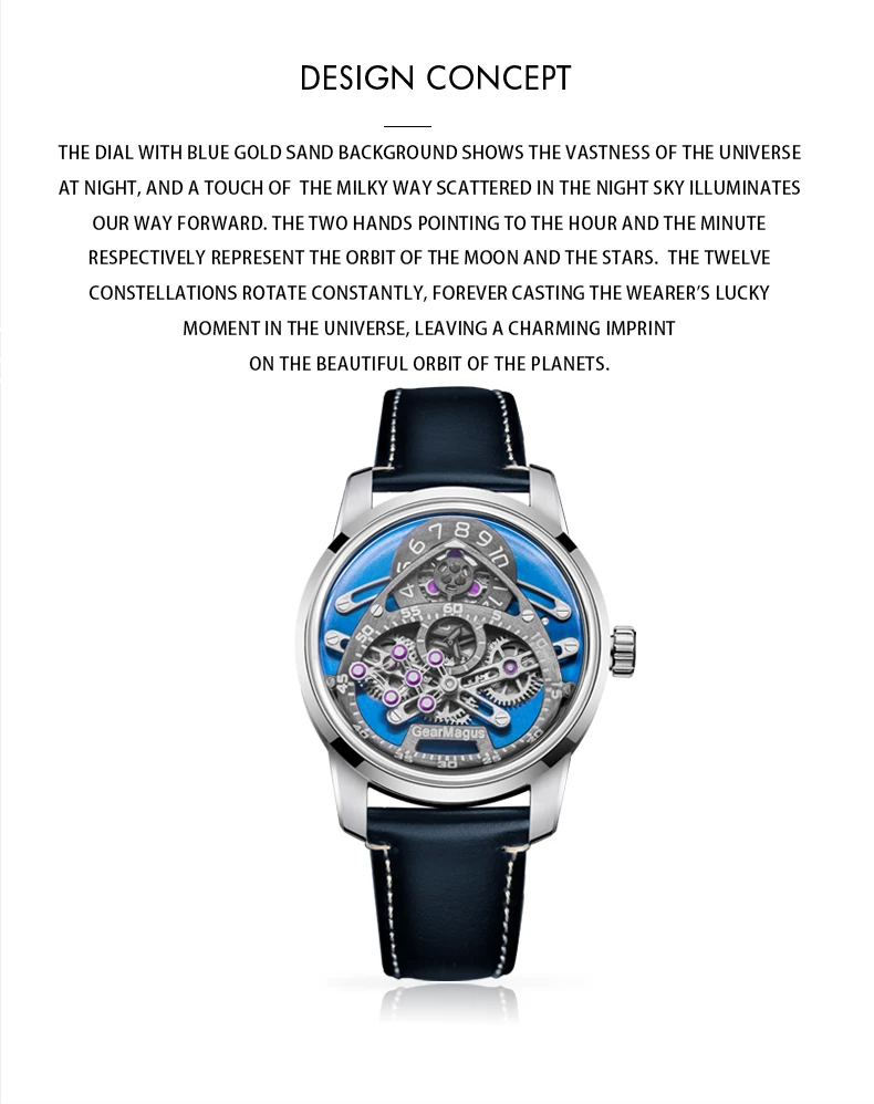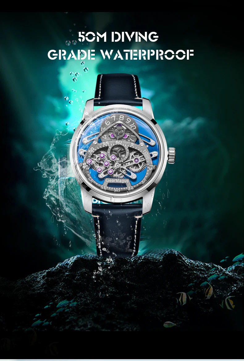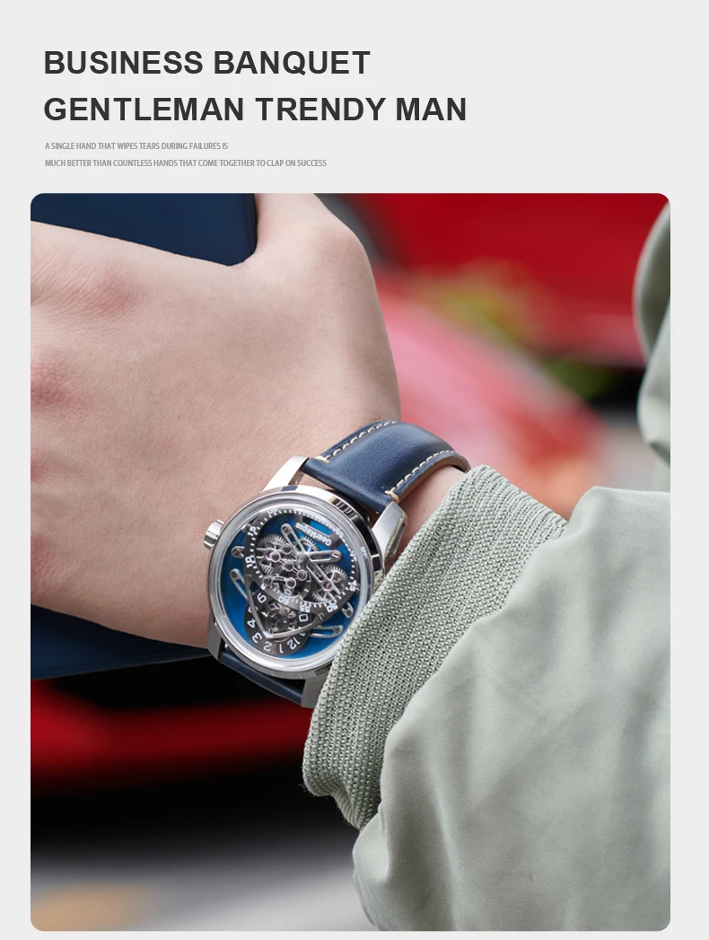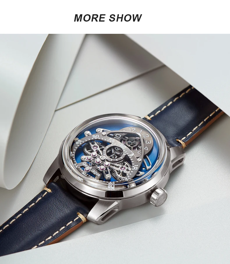 OBLVLO Men Automatic Watch 42MM Mechanical Wristwatch 50m Waterproof Sapphire Luminous Unique Concept Dial Limited