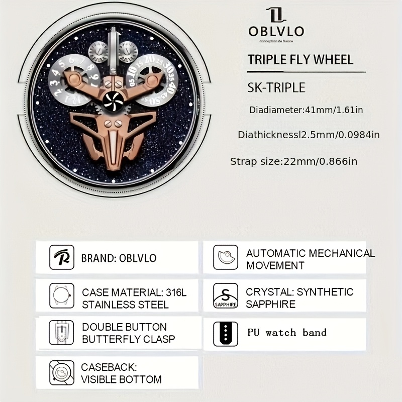 OBLVLO Men’s Mechanical Watches, Automatic Winding Mechanical Watches, Novel And Creative Men’s Watches, Men’s Timepieces, Unique Watches, Men’s Valentine’s Day Gift Wristwatches for Men
