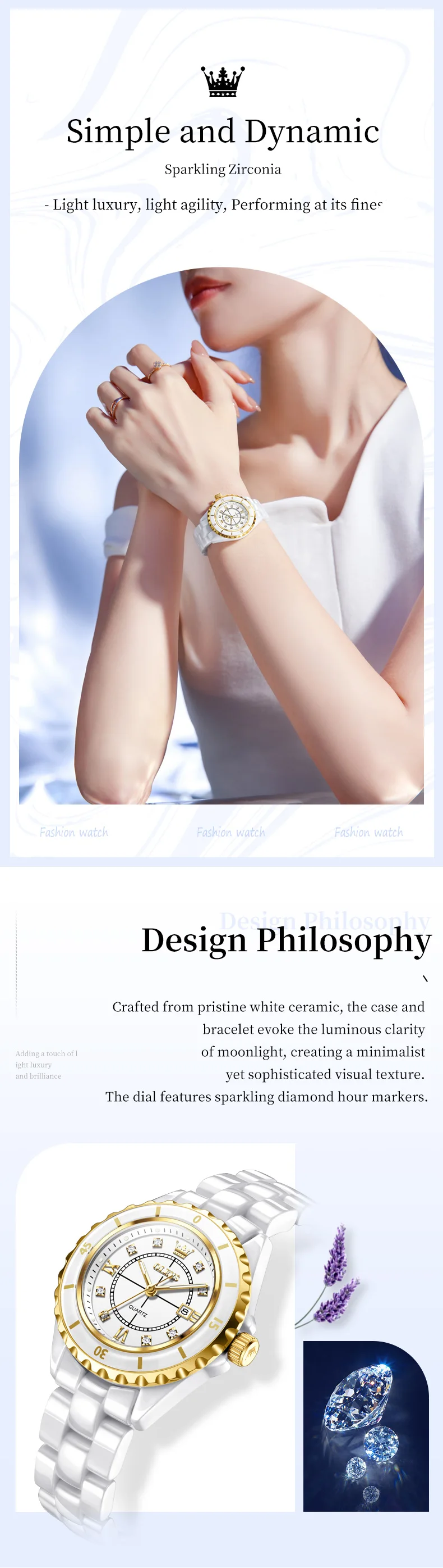 Elevate your style with sparkling diamond hour markers, adding a touch of elegance to any outfit.