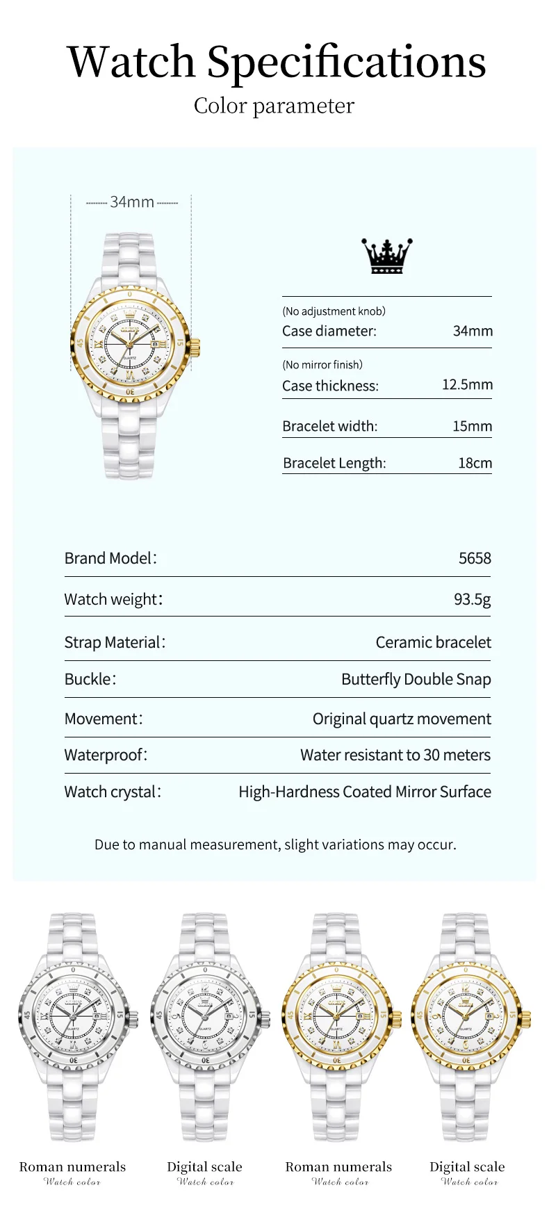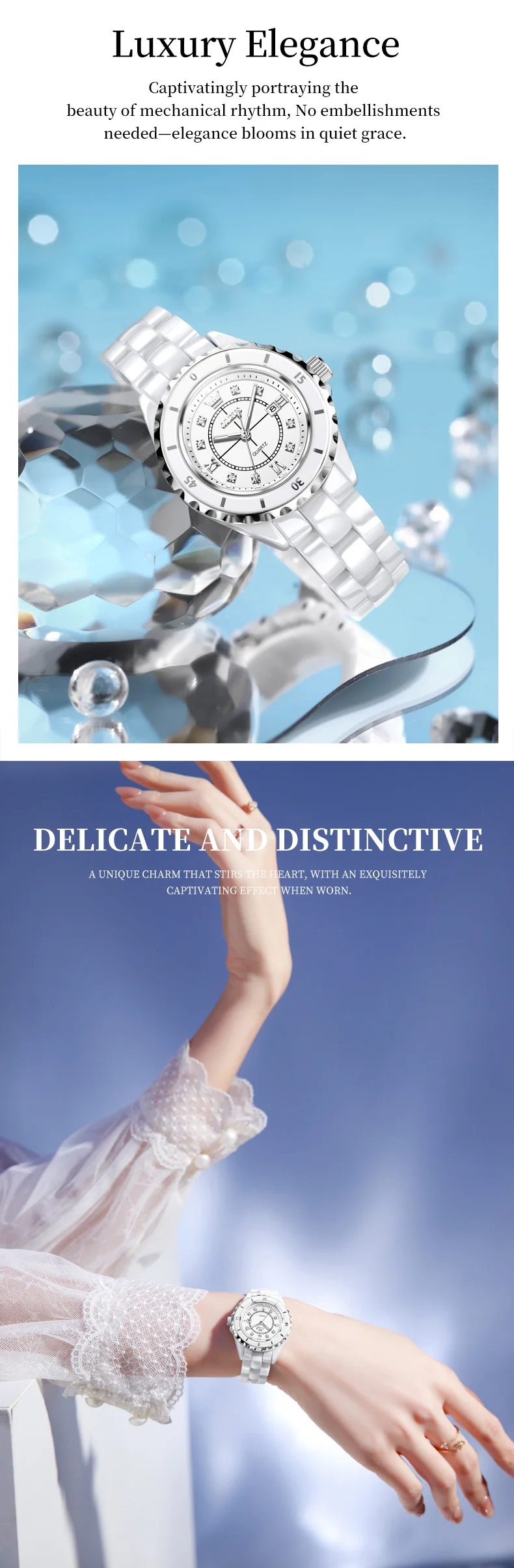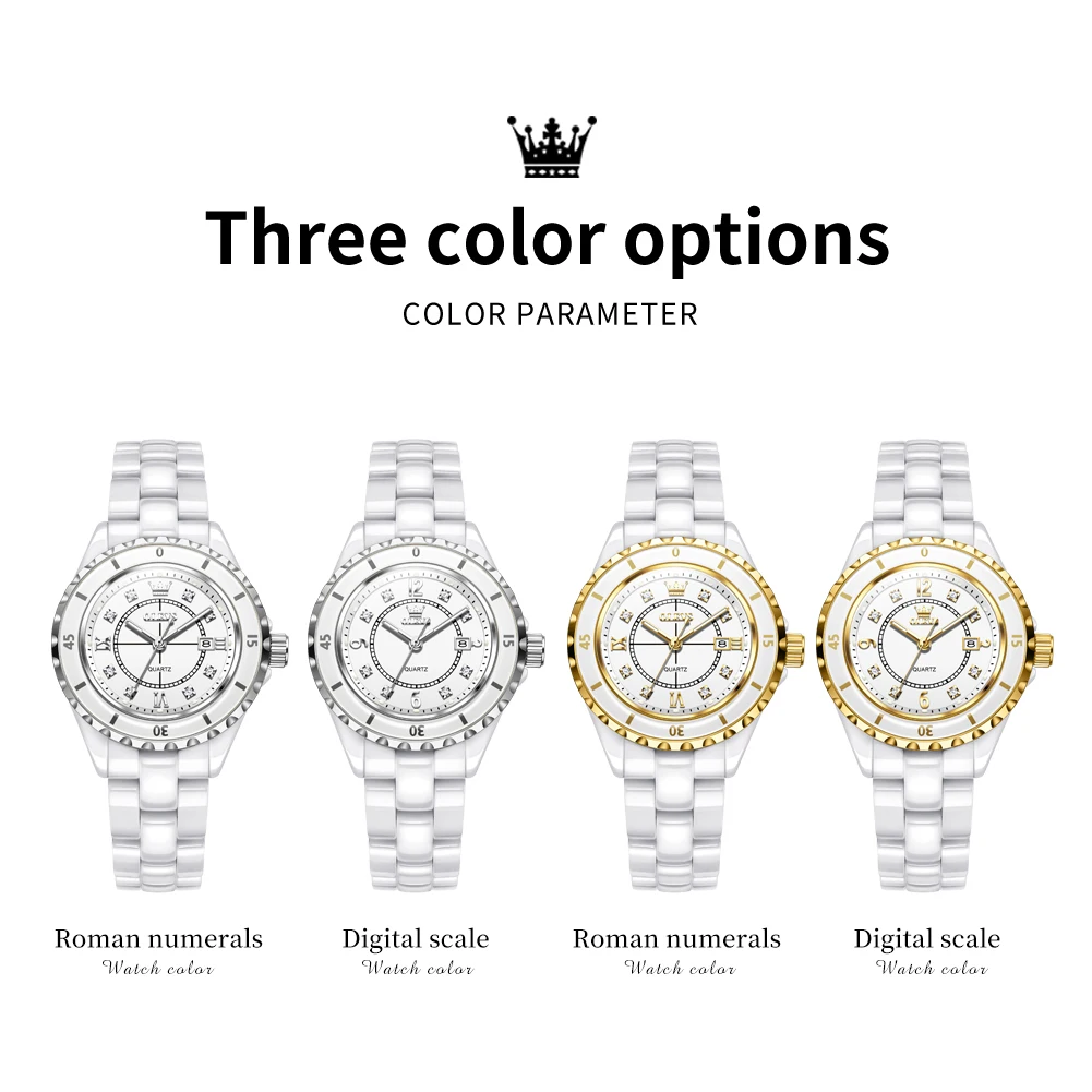 Enjoy comfort and durability with the sleek ceramic band, designed for everyday wear.