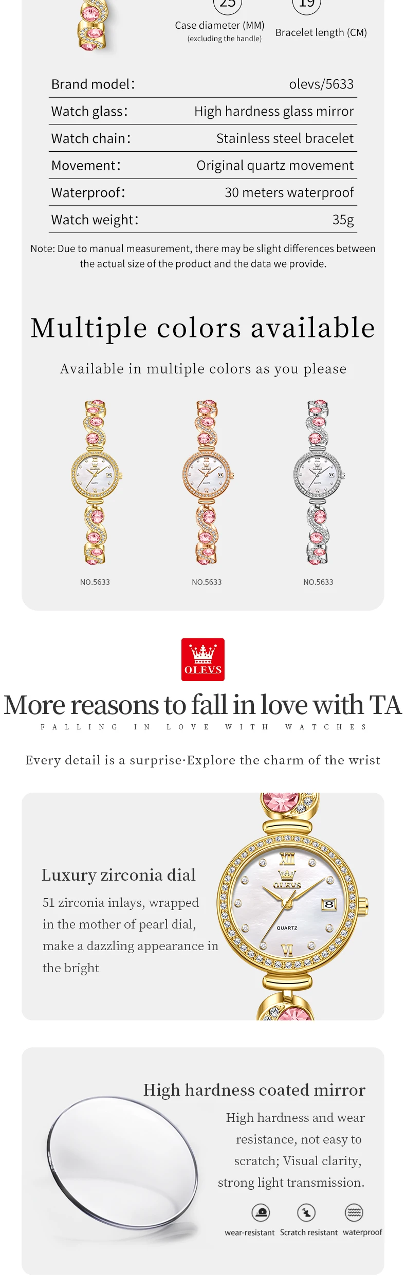 Luxury Zirconia Dial: 51 zirconia inlays paired with a mother-of-pearl dial, creating a dazzling and elegant appearance.