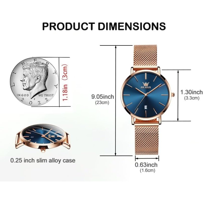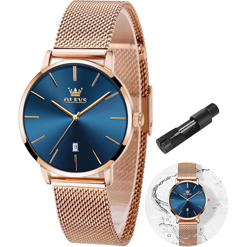 Tags: adjustable folding clasp, black dial, blue dial, casual luxury, chronograph watch, date display, day function, elegant ladies watch, expandable strap, formal wear, Gift for Her, high quality, lightweight, luxury dress watch, Minimalist Jewelry, olevs, roman numerals, rose gold, slim watch, stainless steel mesh strap, thin design, waterproof, white dial, women's fashion 2026, women's watch