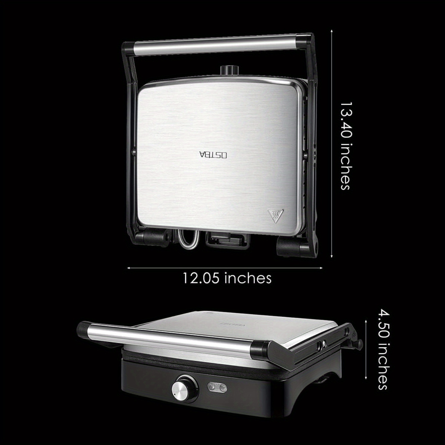 Press Grill, Indoor Sandwich Maker with Temperature Setting, Non-Stick Versatile Grill Opens 180 Degrees, 4 Slice Large, Removable Drip Tray, 1200 W