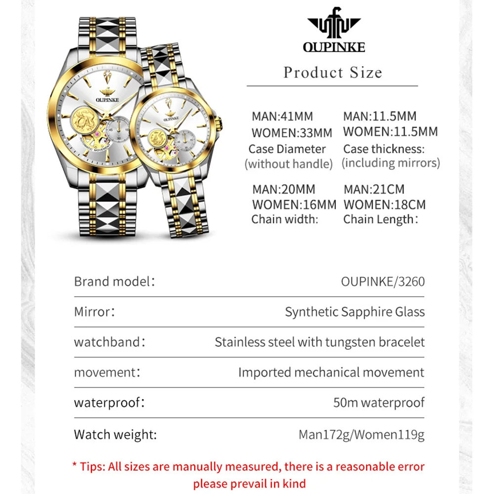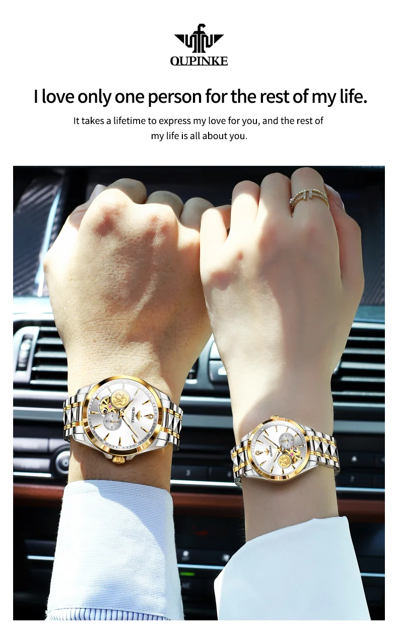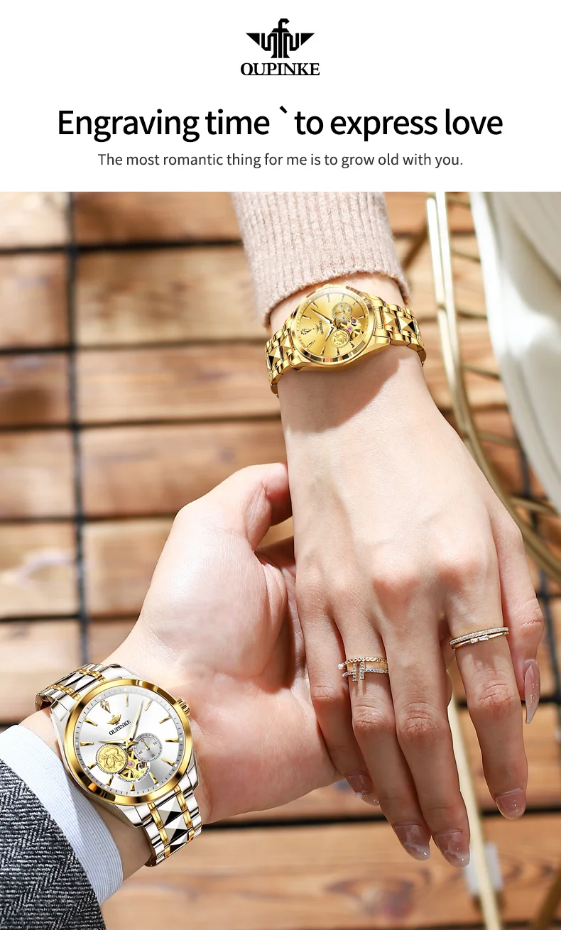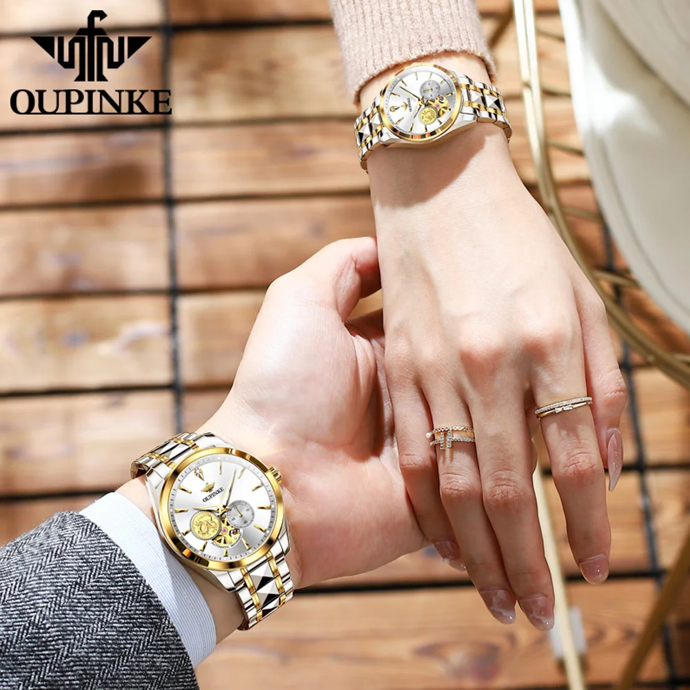 OUPINKE 3260 Automatic Watch Real Diamond Mechanical Couple Watch For Men Women Luxury Original Dress Hand Clock Deep Waterproof