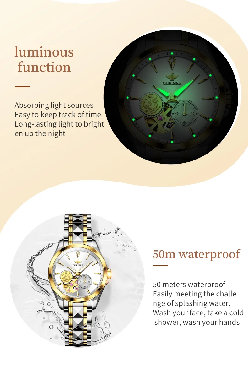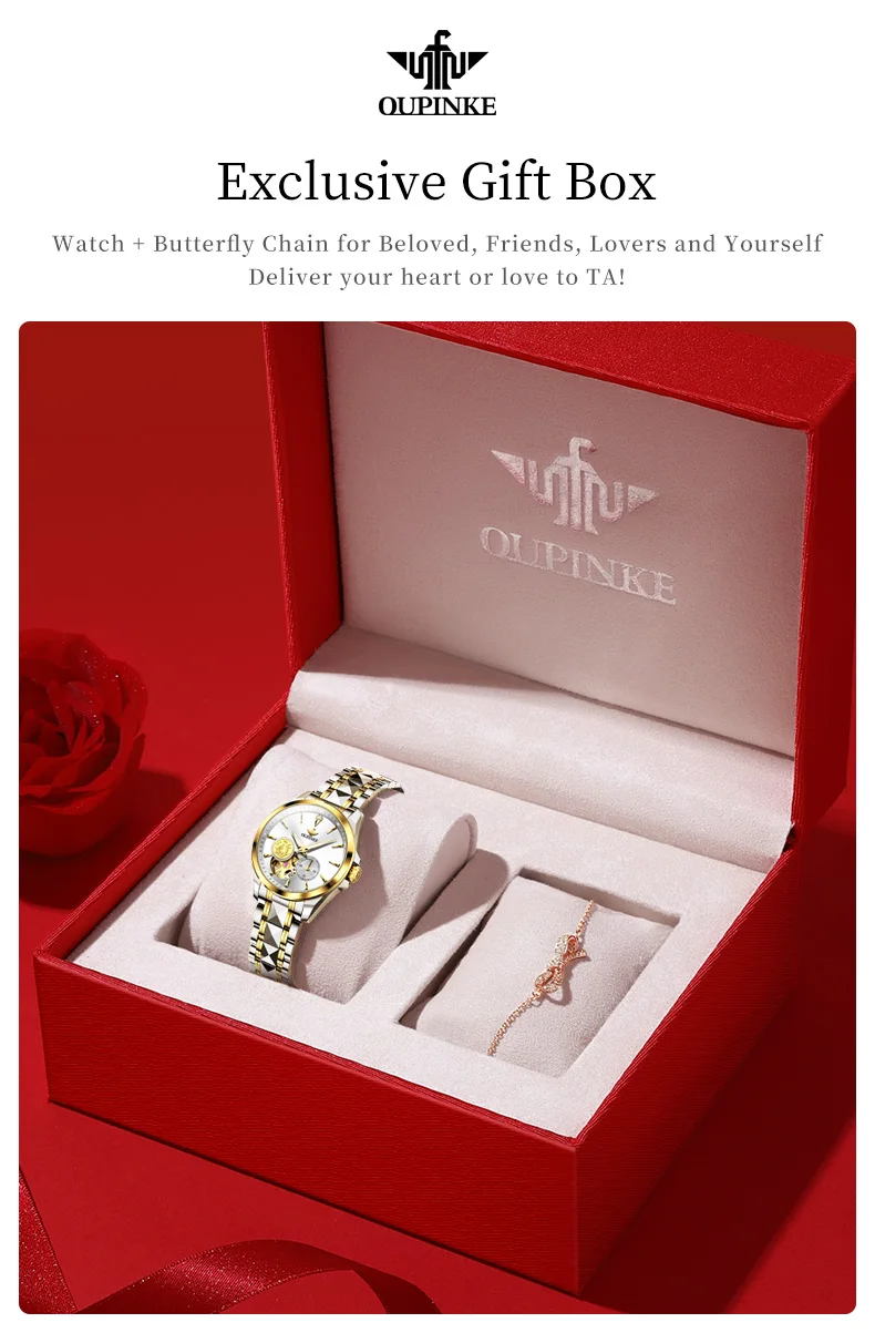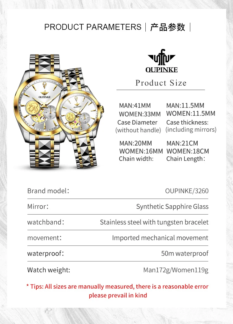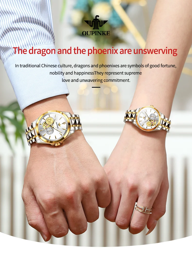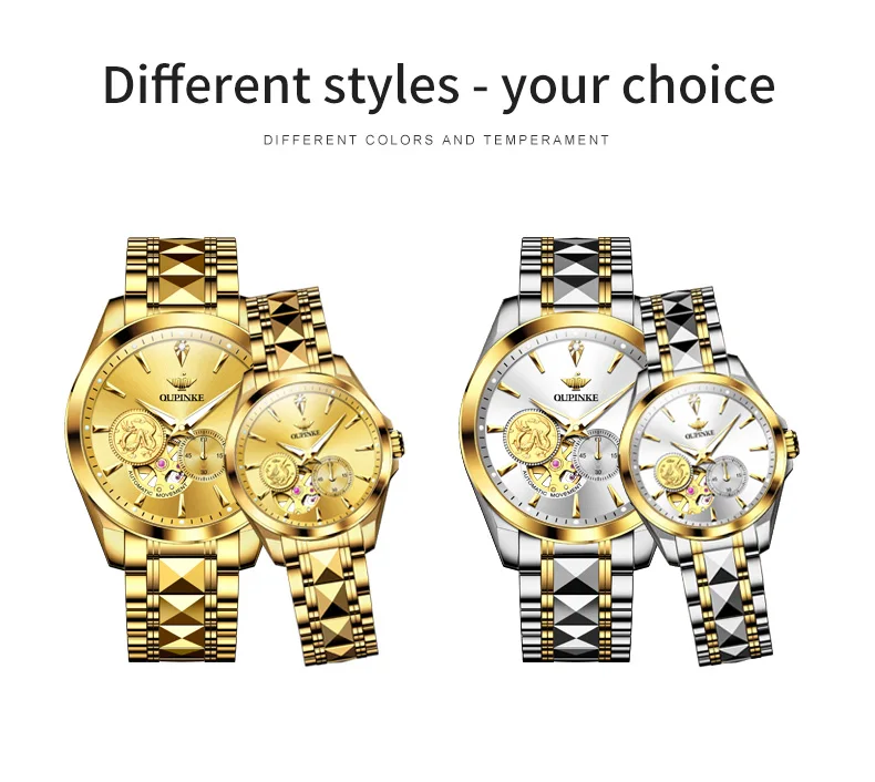 OUPINKE 3260 Automatic Watch Real Diamond Mechanical Couple Watch For Men Women Luxury Original Dress Hand Clock Deep Waterproof