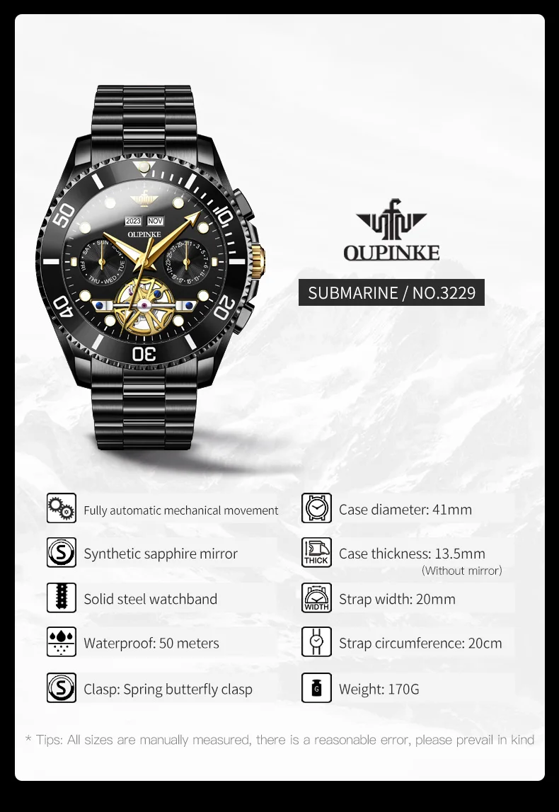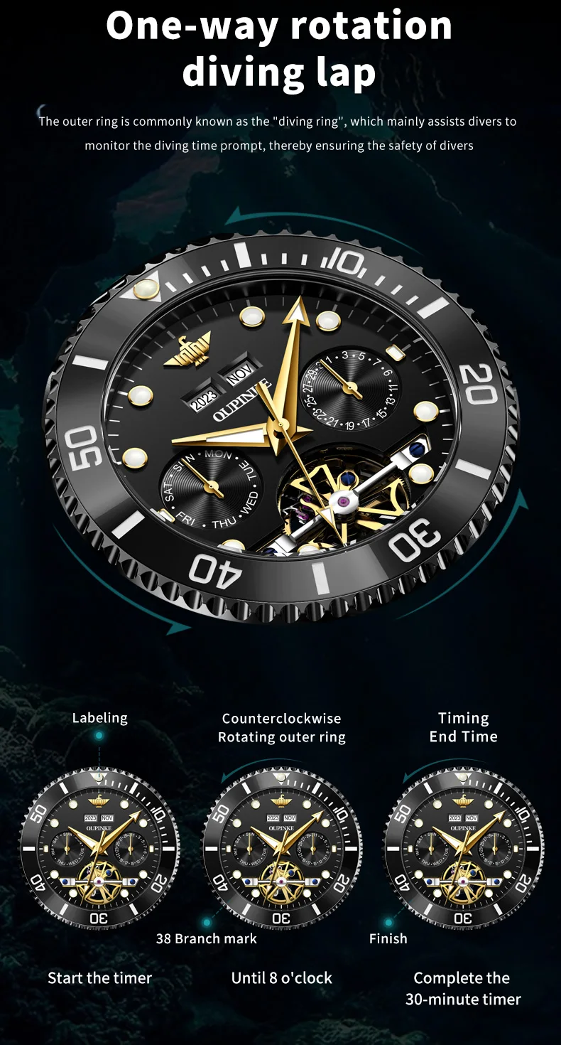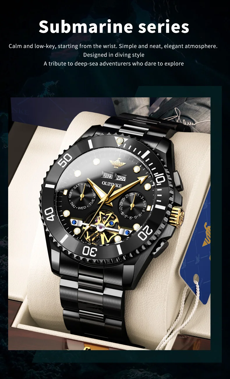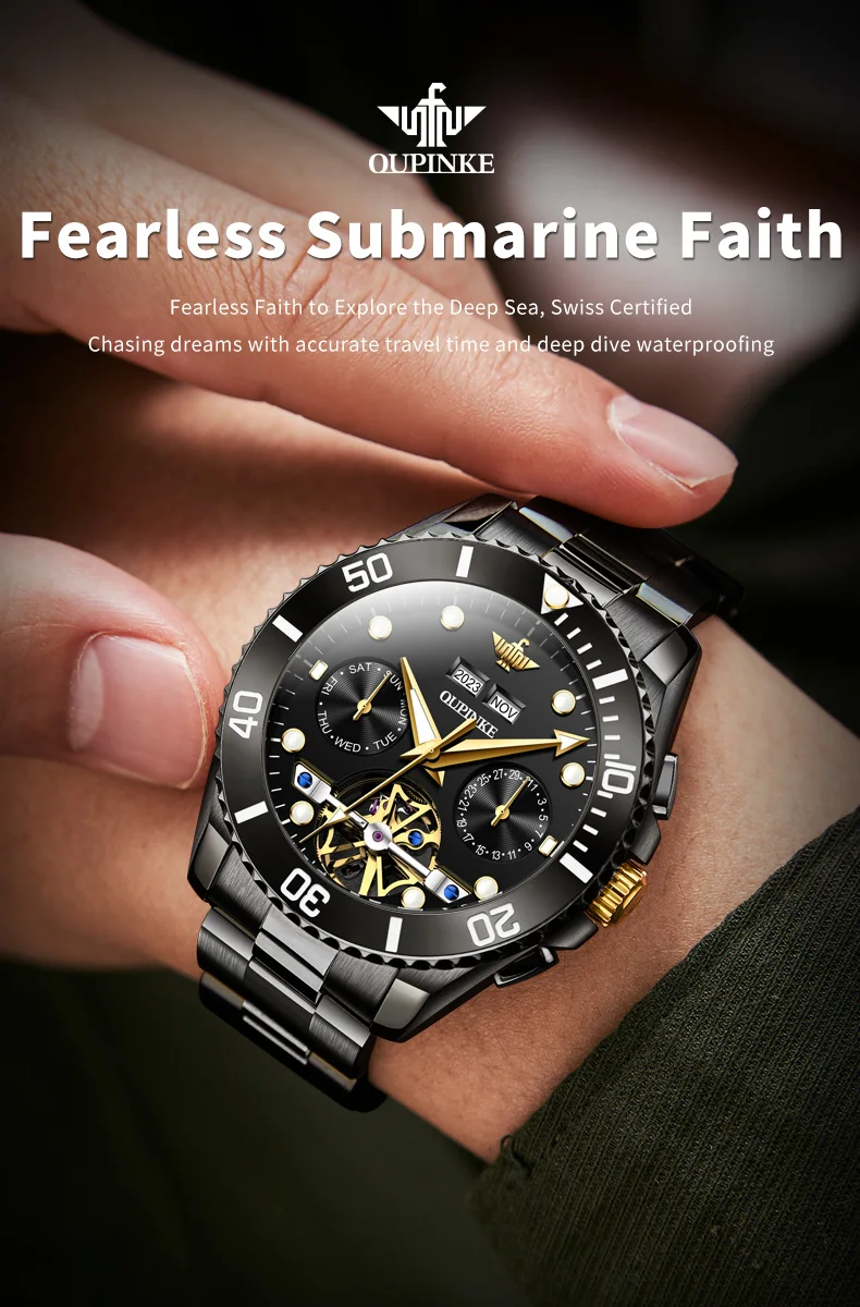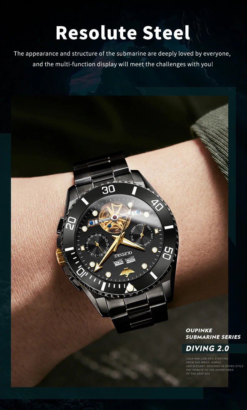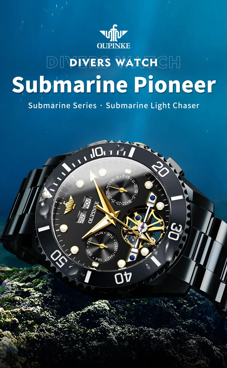 Divers Watch,50meters Deep Waterproof.OUPINKE New Series Submarine Pioneer