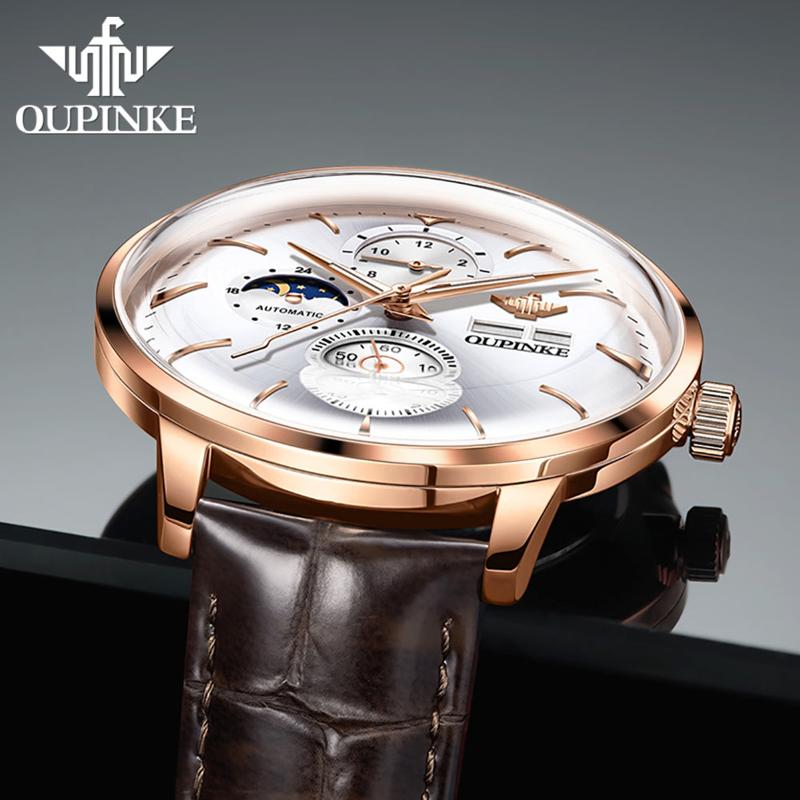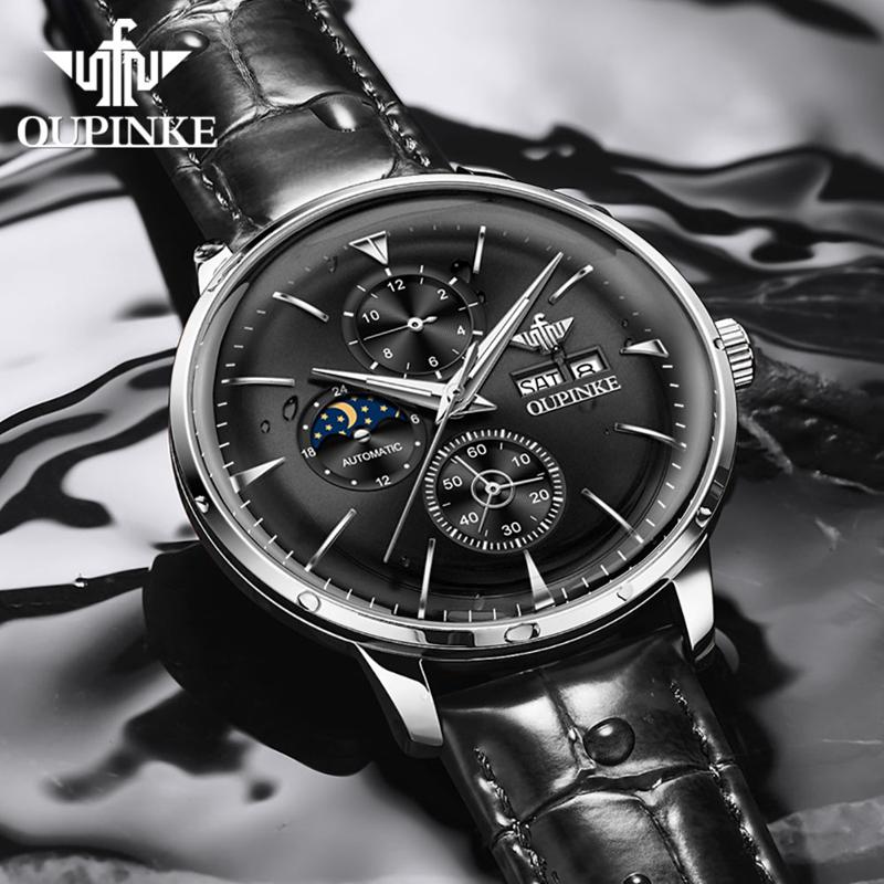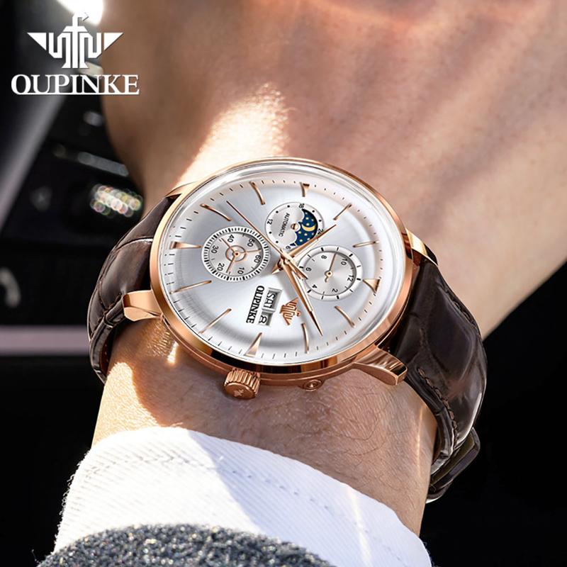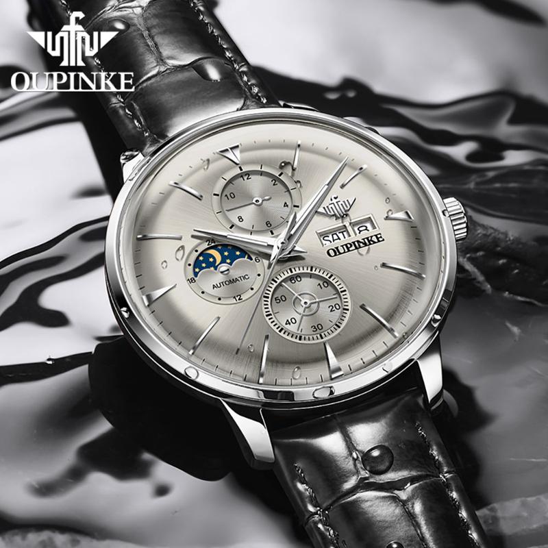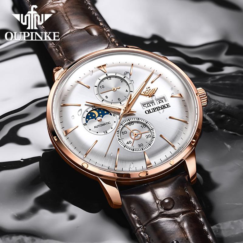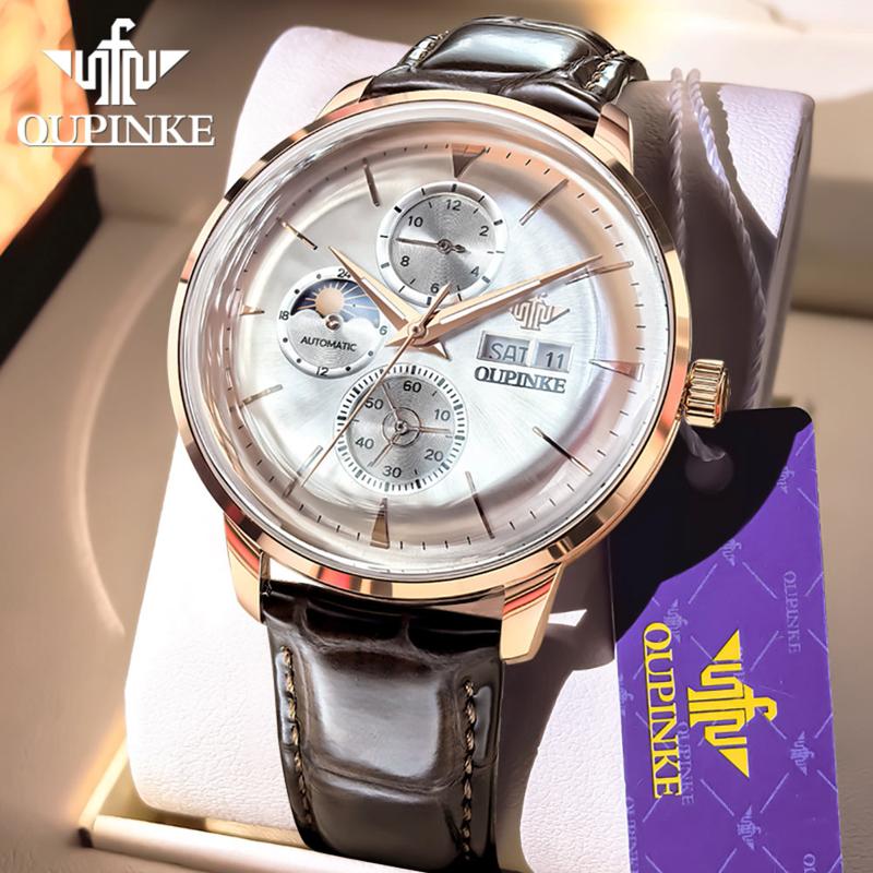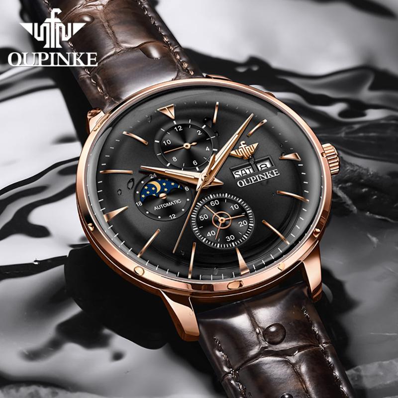 OupinKE Men’S Vintage | Stainless Steel Case, Faux Leather Strap, Mechanical Movement, Date Display, Non-water Resistant, Glow Feature, Elegant and Classic Design, Ideal for Daily Wear & Business Occasions, Without Battery