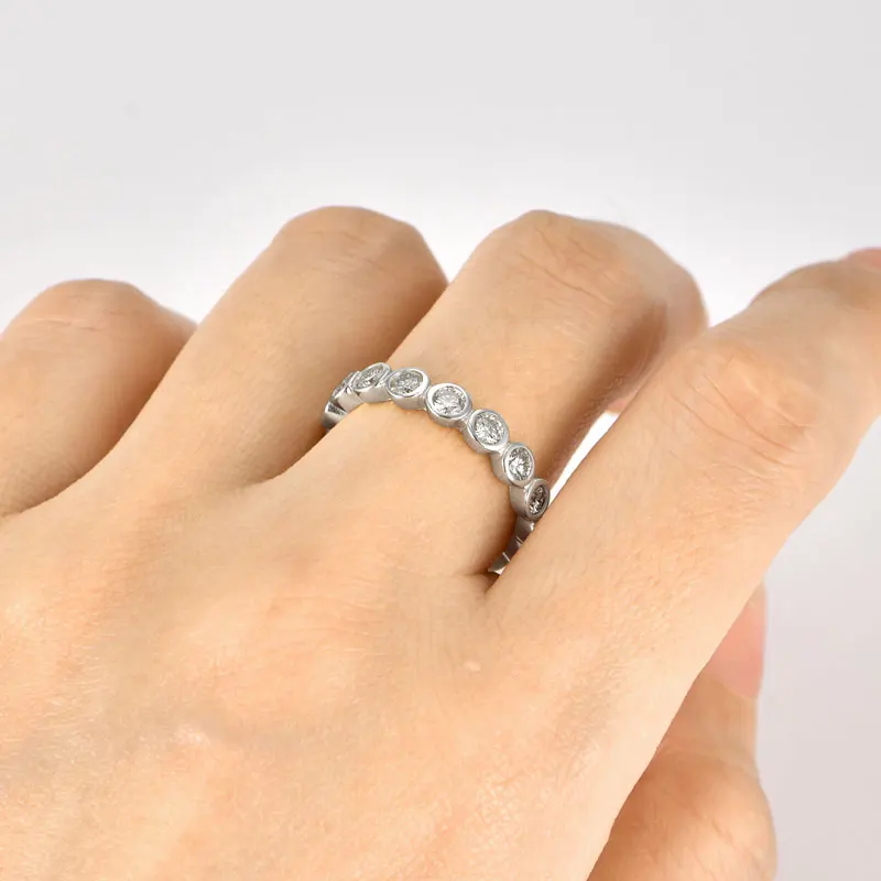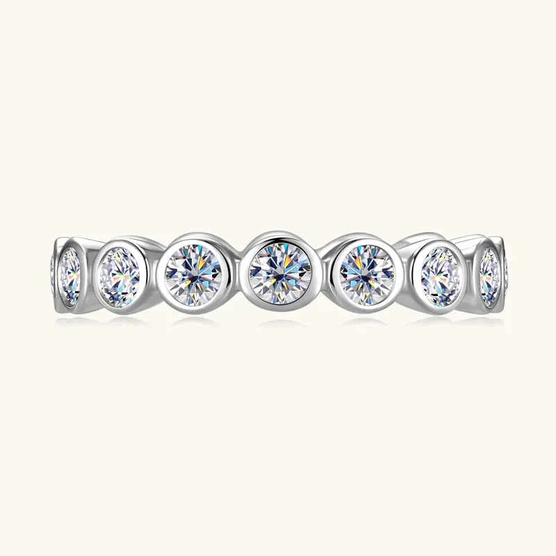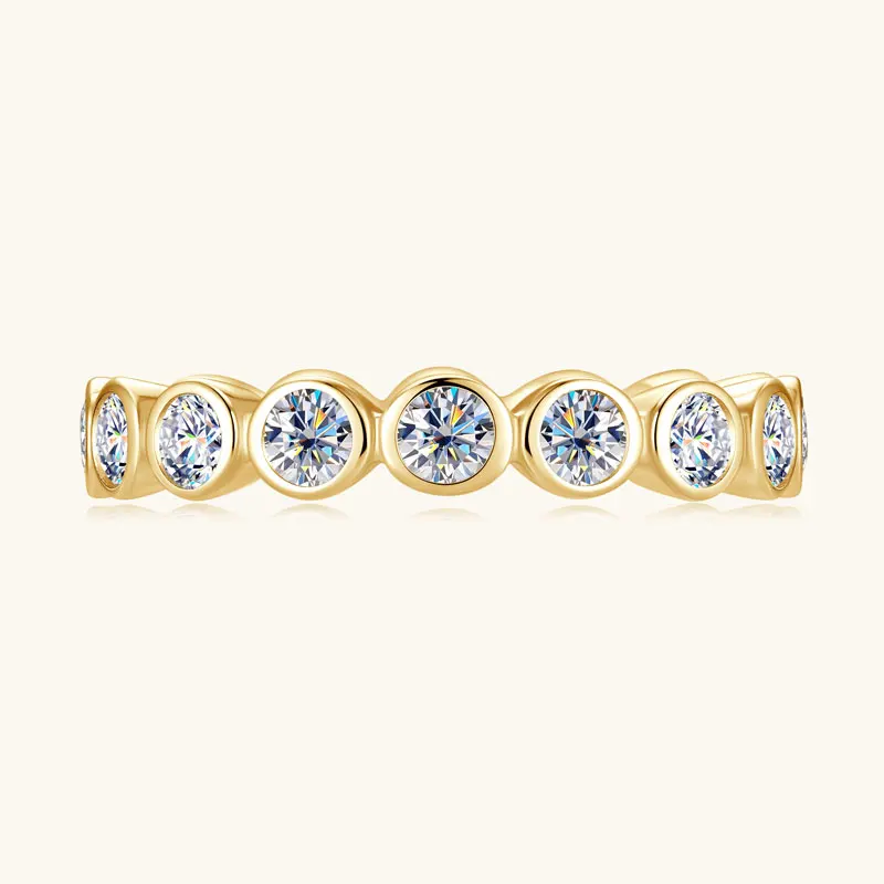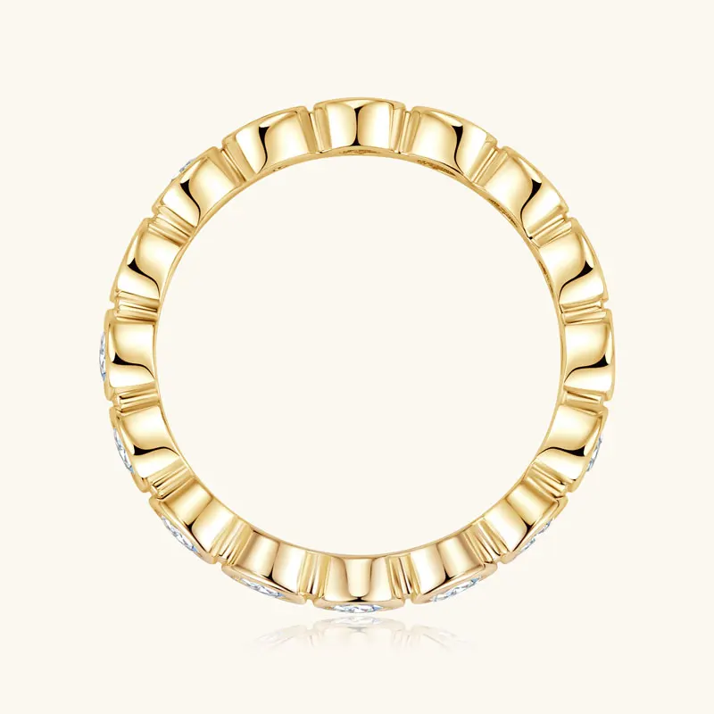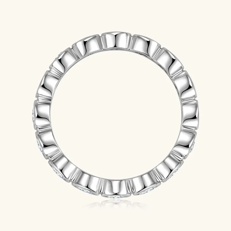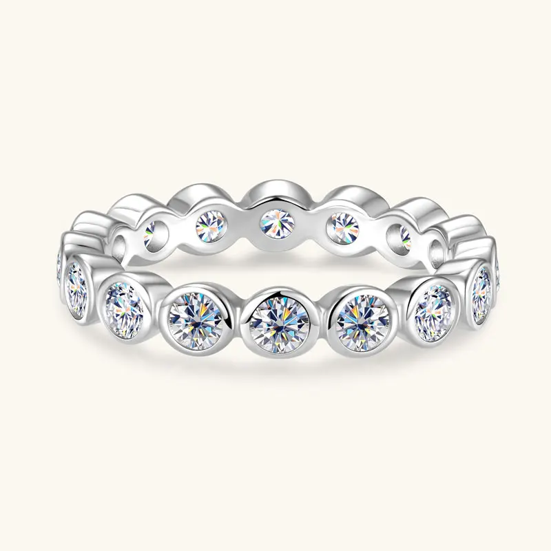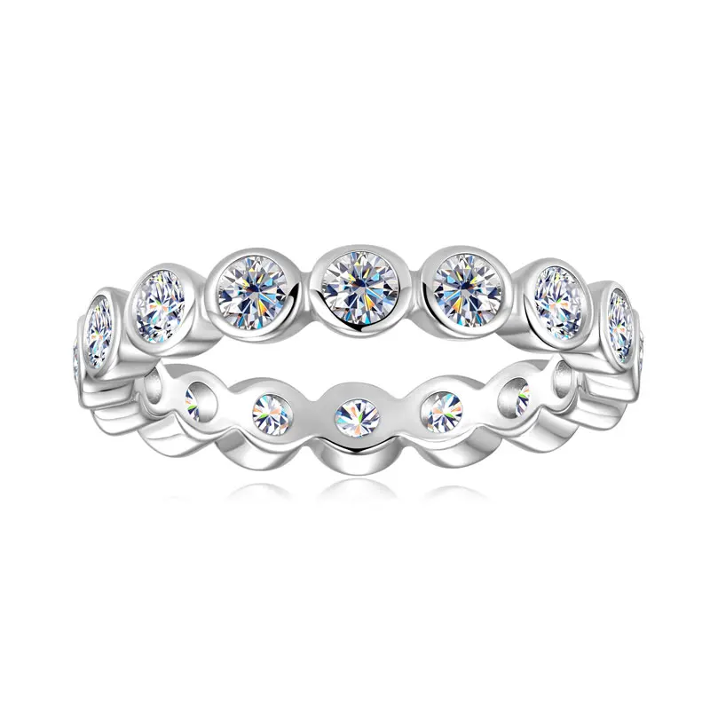 OXTAO Certified 3mm Full Moissanite Eternity Ring Ladies S925 Silver Plated 14KGold Lab Diamond Bezel Rings Wedding Band Jewelry