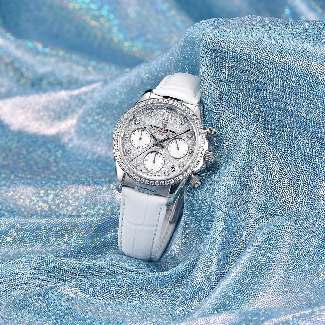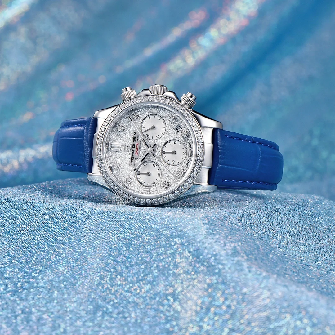 PAGANI DESIGN PD-1730 Women’s Watches 36mm Chronograph Quartz Stainless Steel Waterproof Wrist Watch for Women Leather Watchband