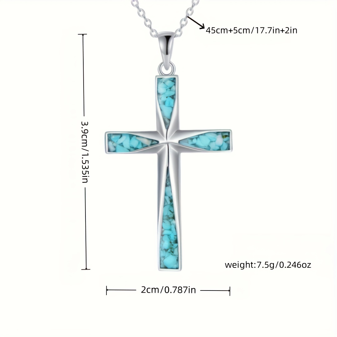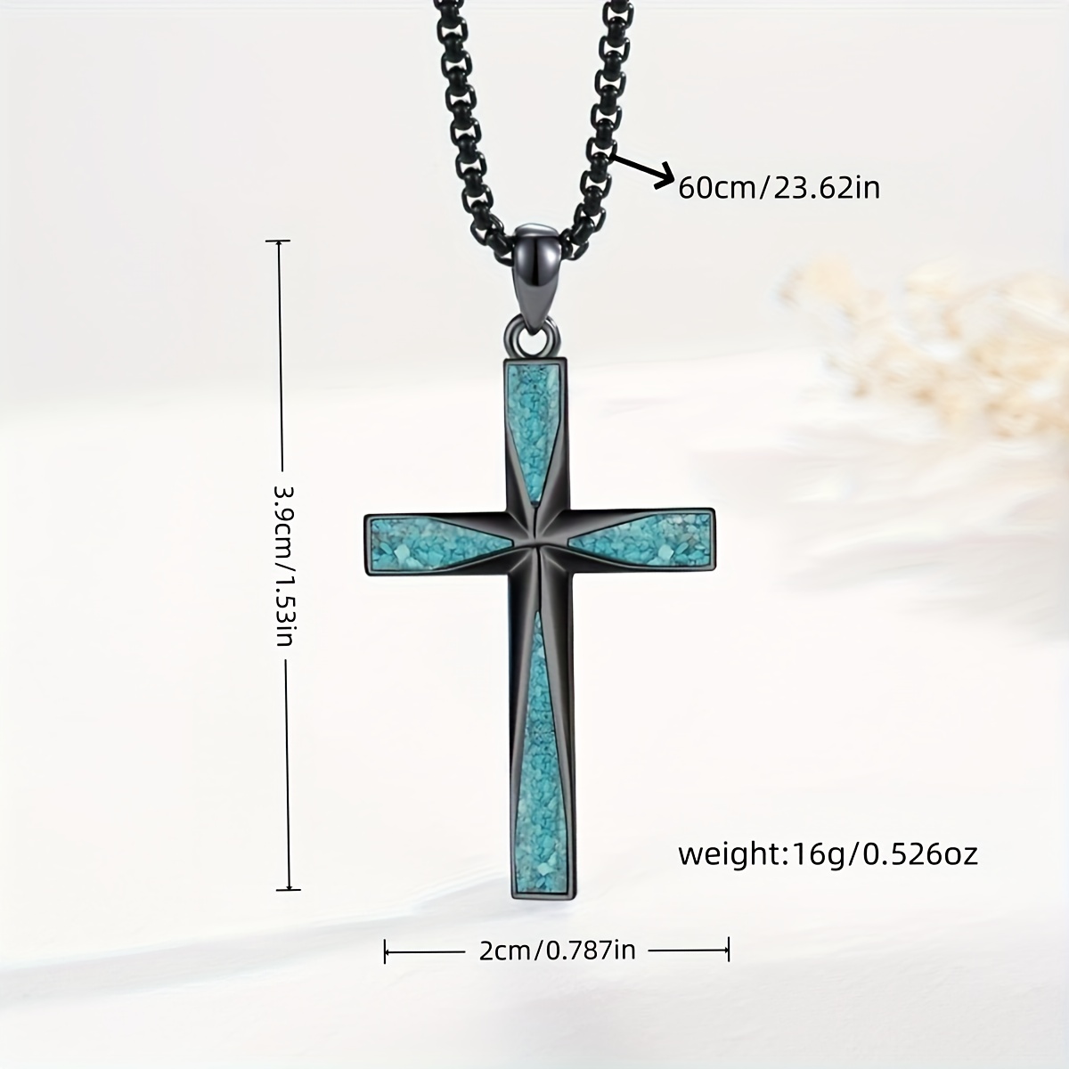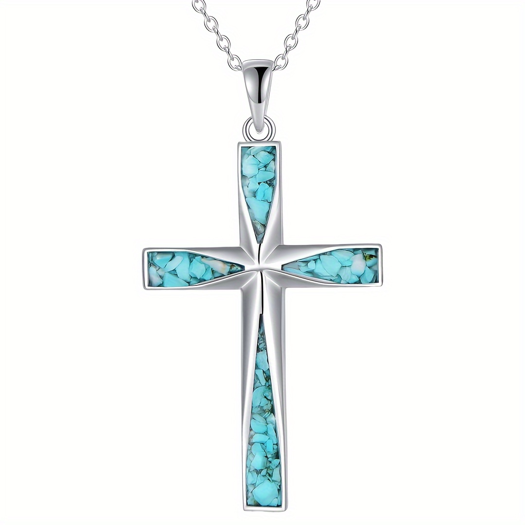 [Perfect Gift] New Hot-Selling Turquoise Women’s Cross Pendant Necklace – Unique Punk Style Green Stone Foldable Stainless Steel Cross Charm, Perfect Gift for Friends and Girlfriends on Birthdays or Holidays, Cross Necklace For Women, Necklace For Women, Jewellery For Women, Necklace For Lady, Necklace For Woman, Long Necklace For Women, Jewelry For Woman
