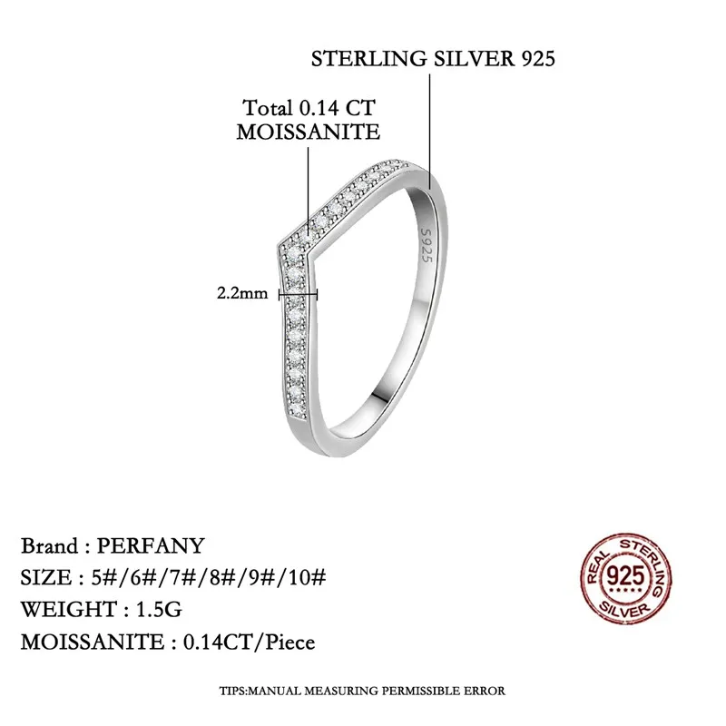 PERMANY All Moissanite Ring for Women S925 Pure Silver Laboratory Certified Diamond Geometric Ring Minimalist Party Jewelry