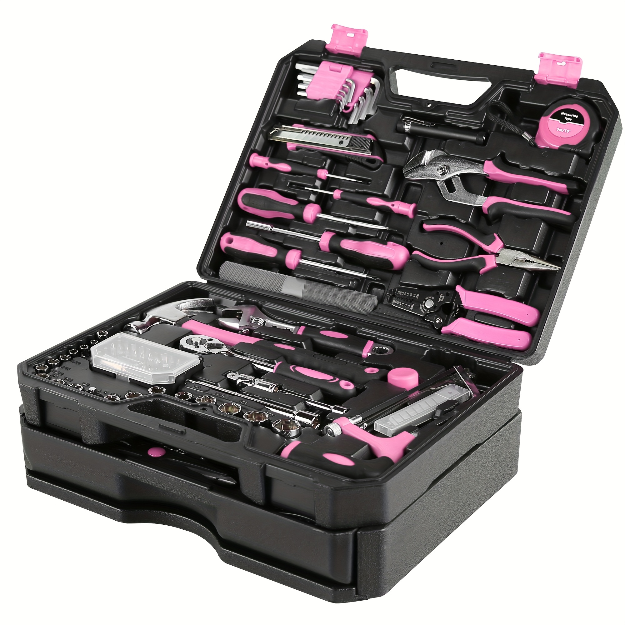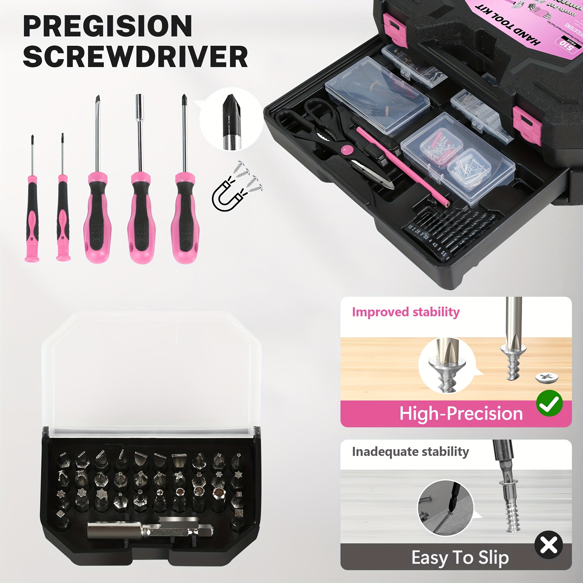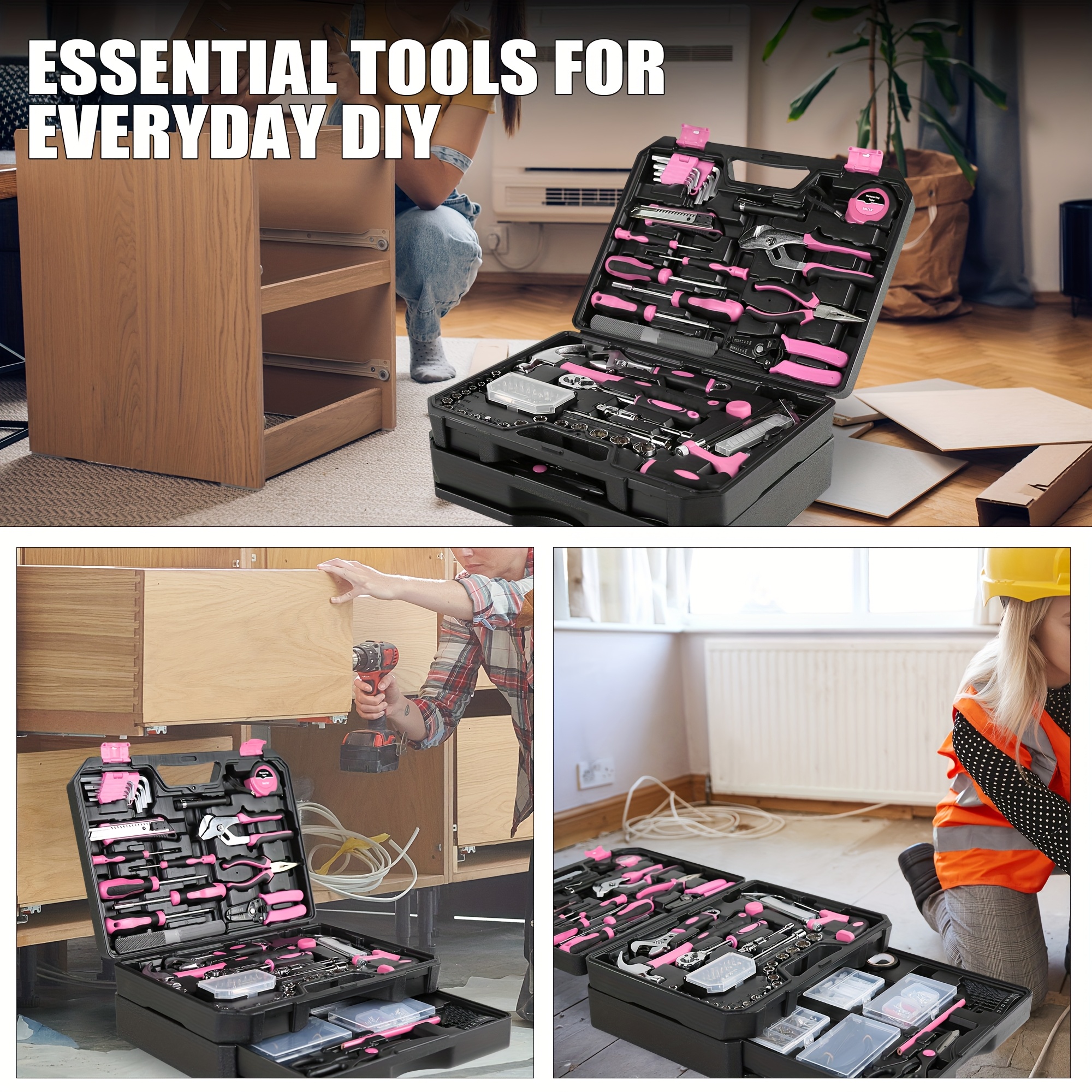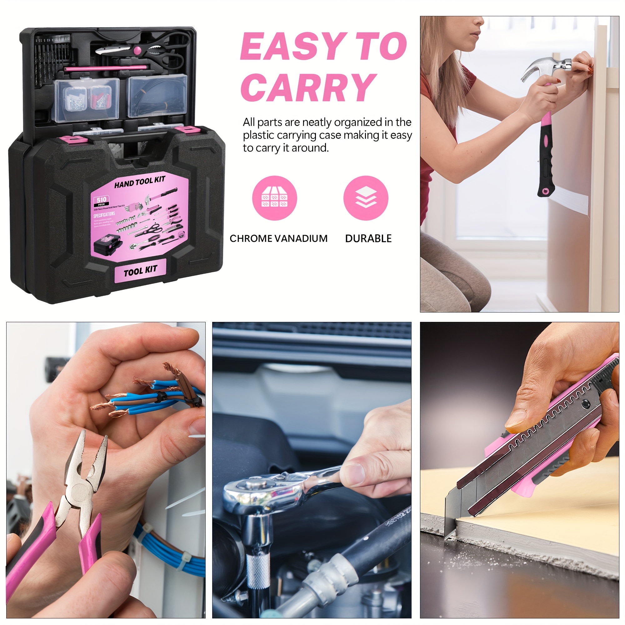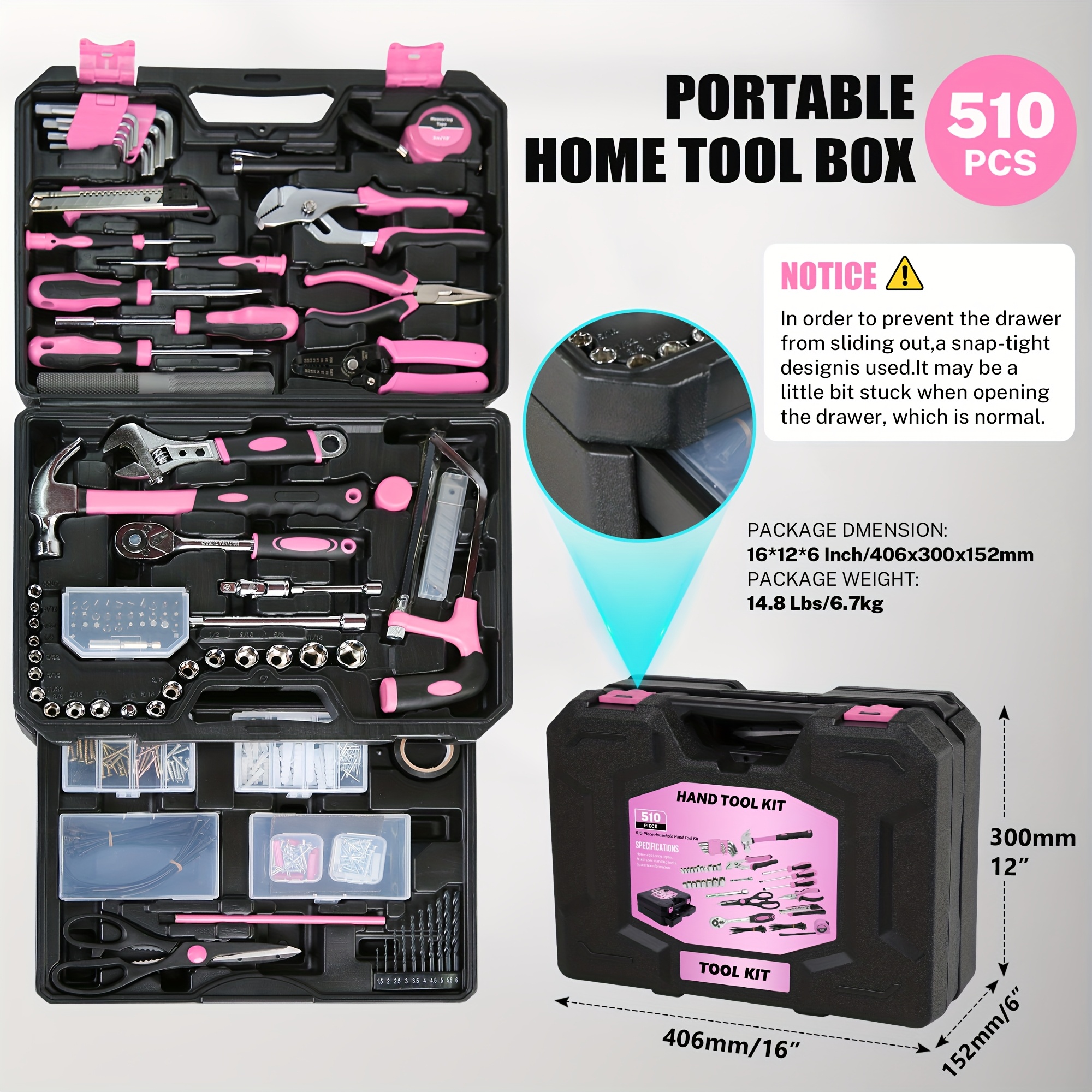 [Pink Tool Kit Set] 510pcs Pink Tool Kit Set with Drawer Toolbox Storage Case | Home Repair Tool Kit Combo for Men & Women, Mechanics Tool Set Organizer