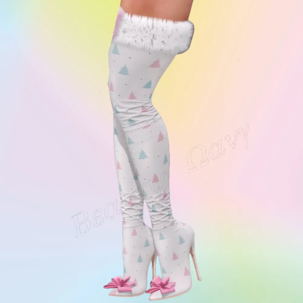 Feature: Bow Knot Decor Boots Heels Fur Decor