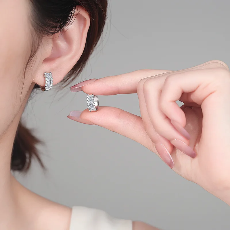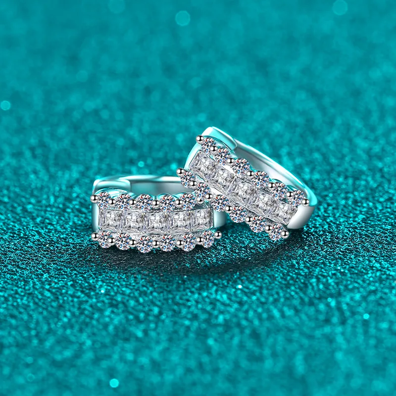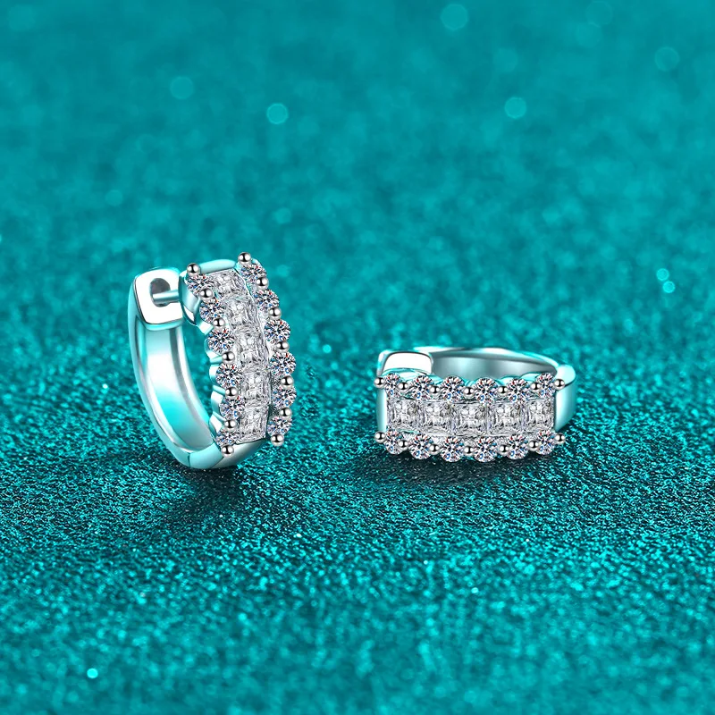 Platinum Pt950 GRA Certified Full Moissanite Hoop Earrings Lab Diamond 18k White Gold Classic Daily Matching Women Fine Jewelry