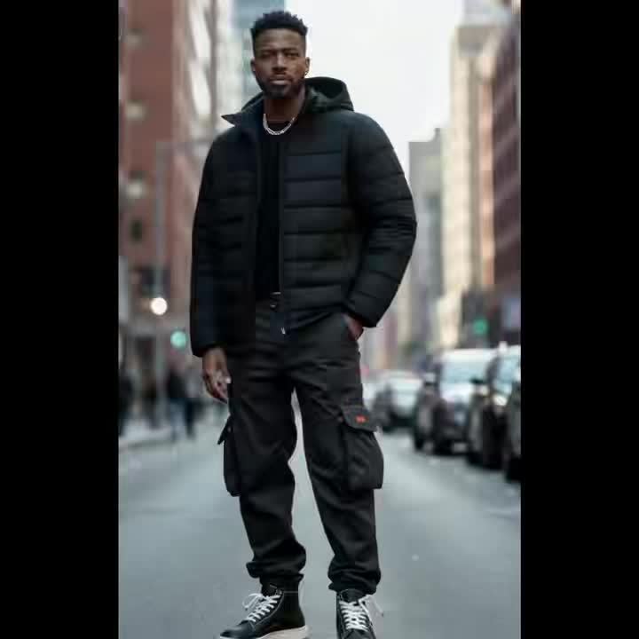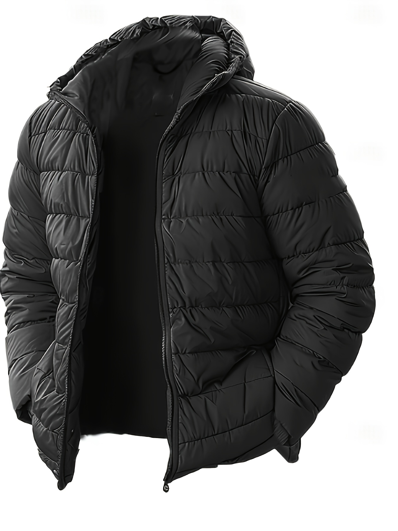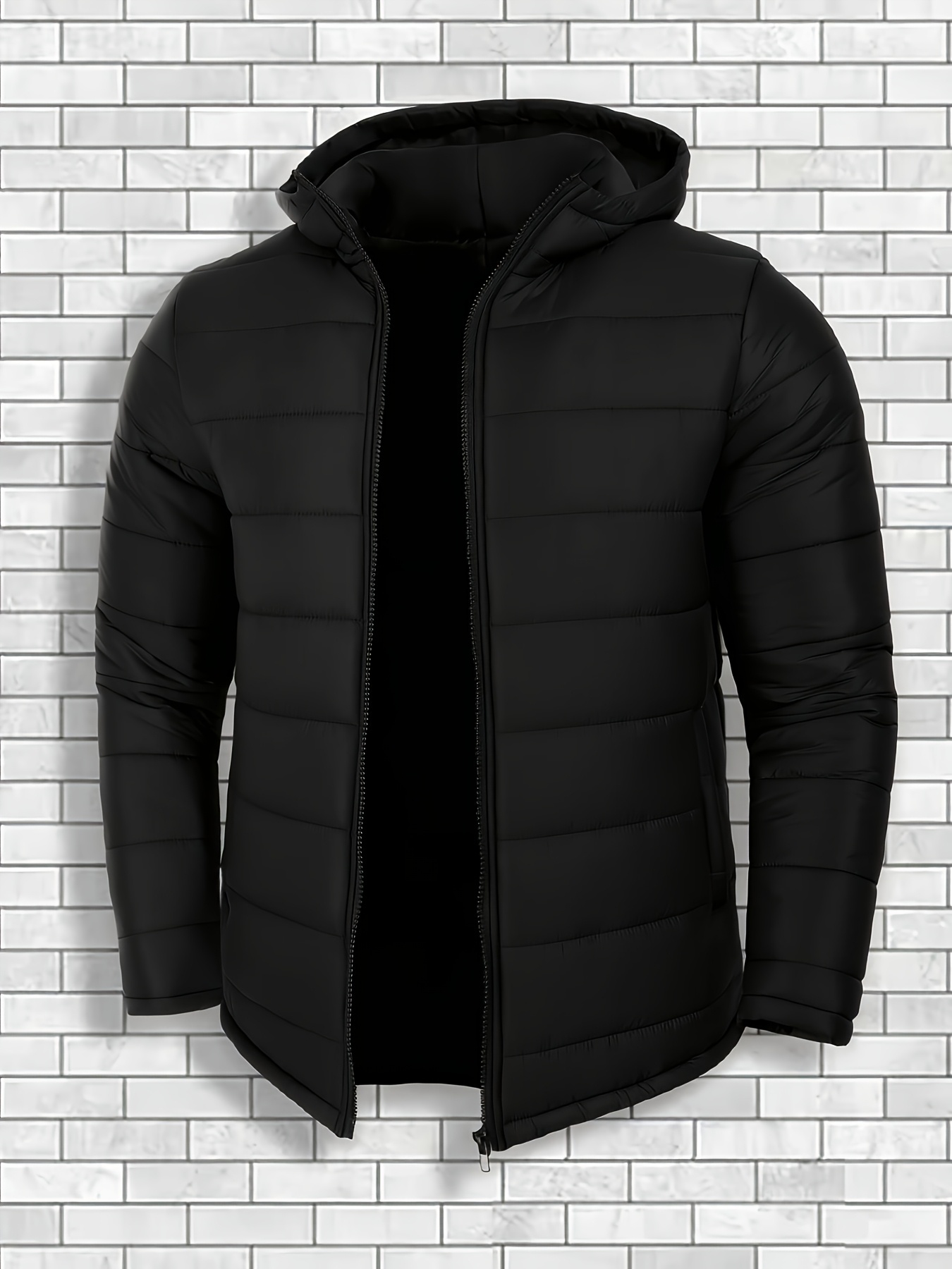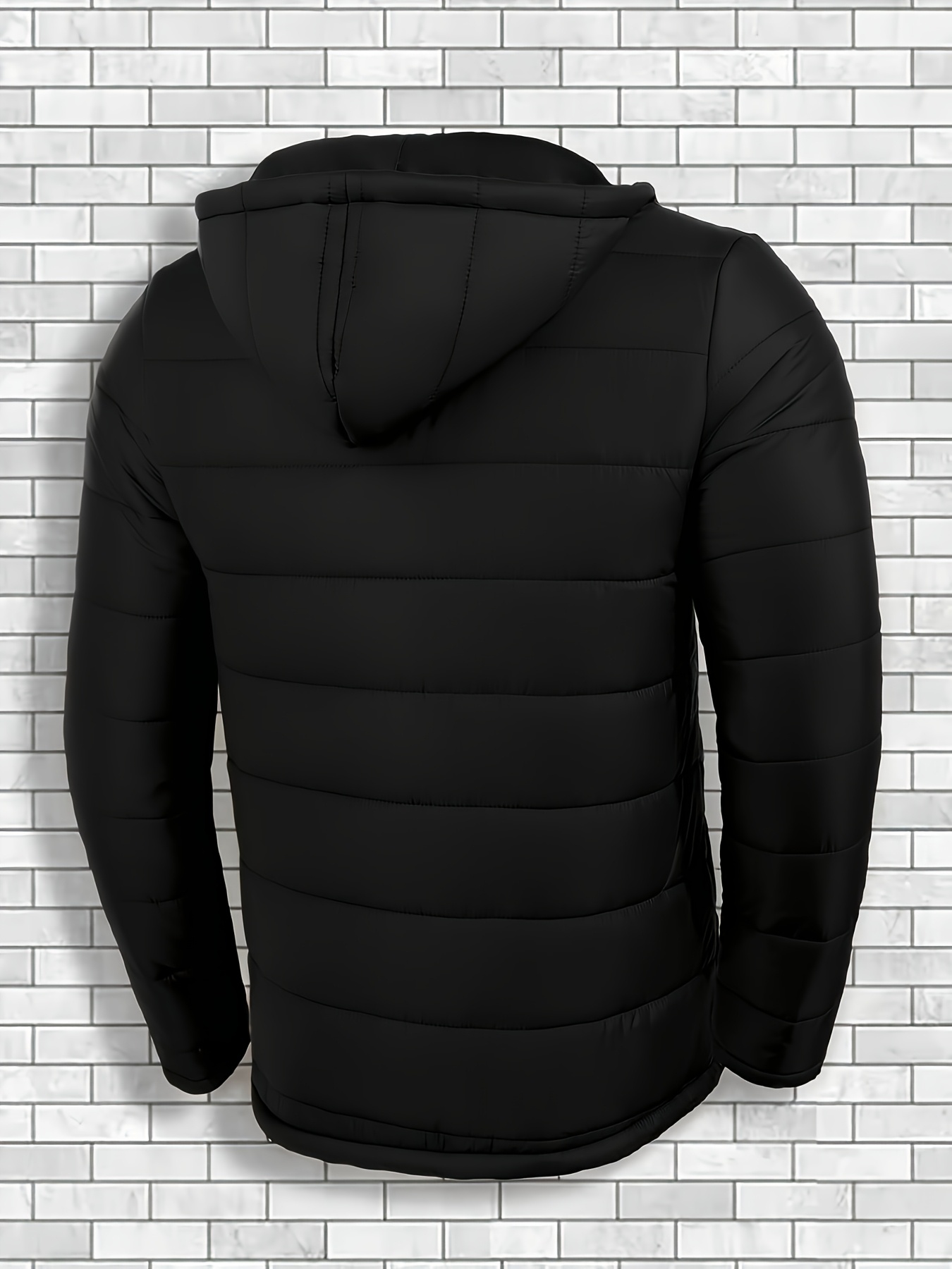 Plus-Size Men’S Solid Color Outdoor Windproof Thick Warm Hooded Jacket, Plus Size
