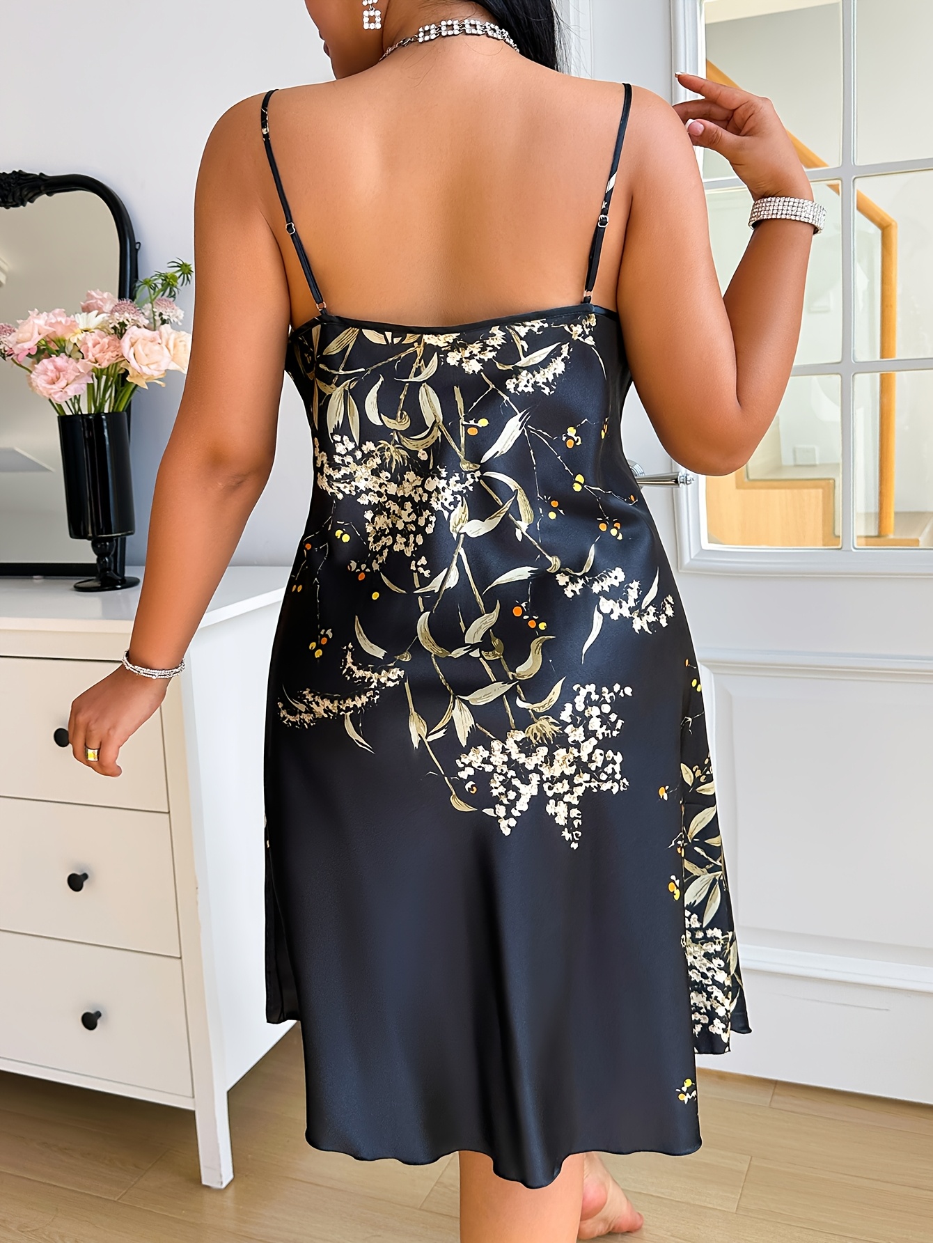 Plus Size Pile Collar Fashion Printed Faux Camisole Nightgown for Women