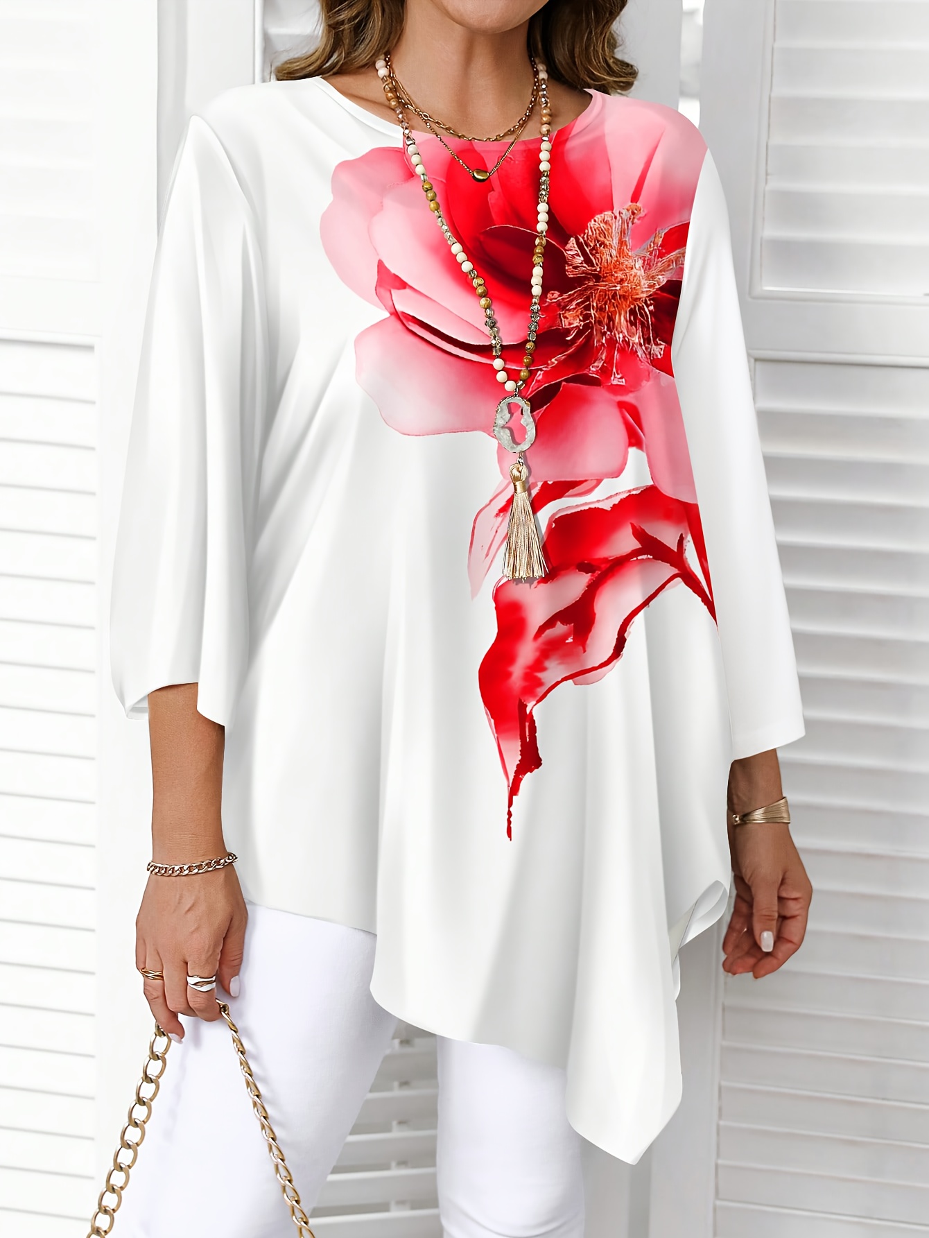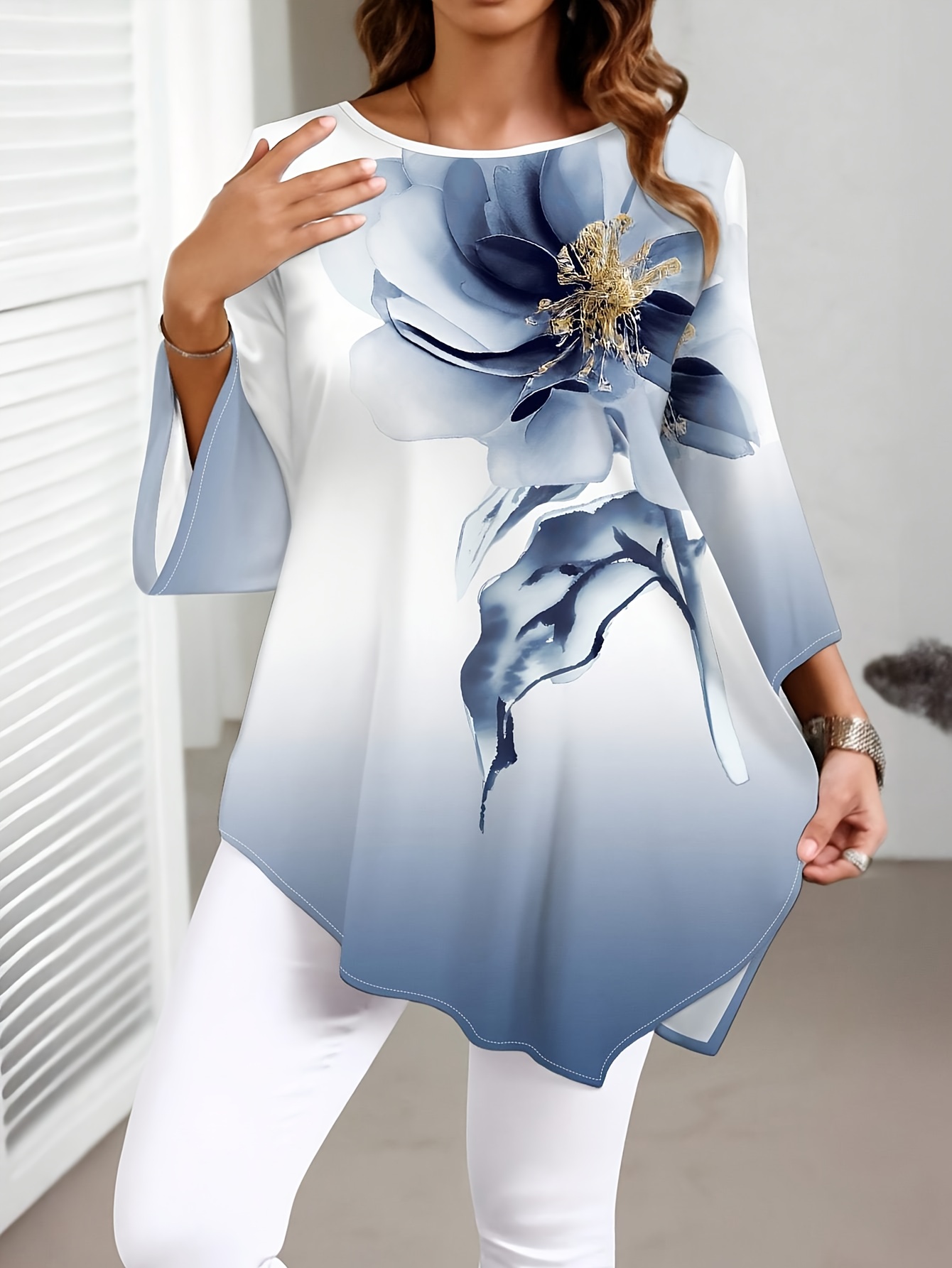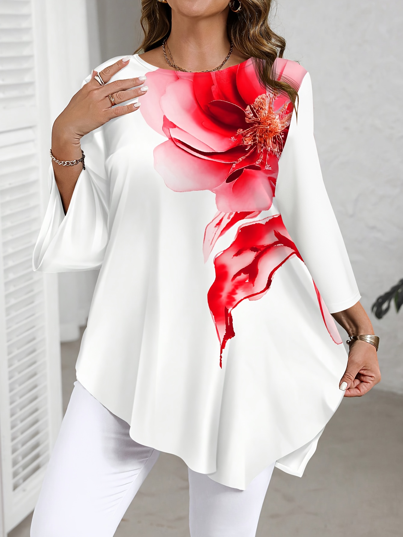 Plus Size, Plus Size Women’s Summer New Fashion Printed Round Neck Shirt – Elegant Casual Top