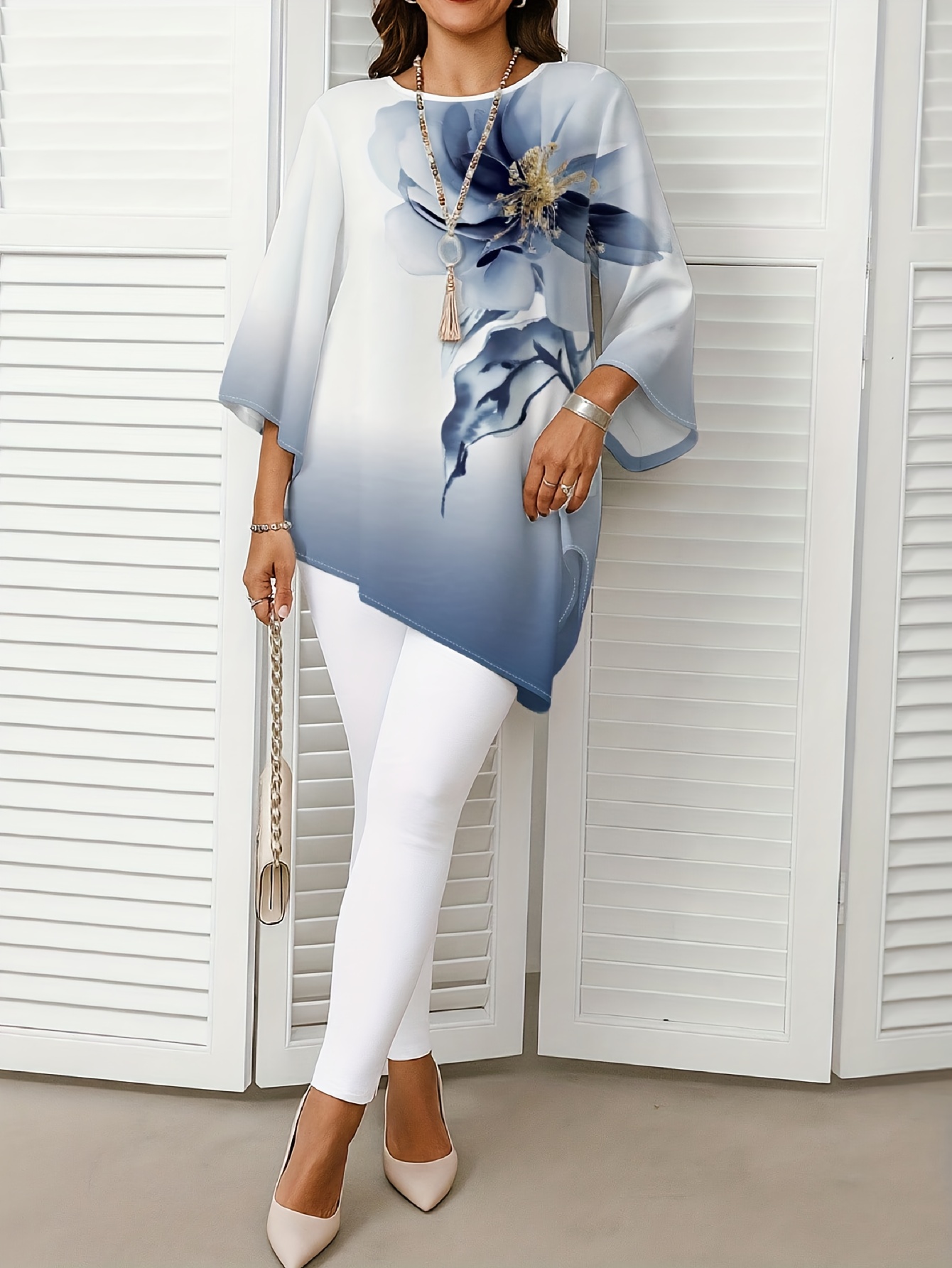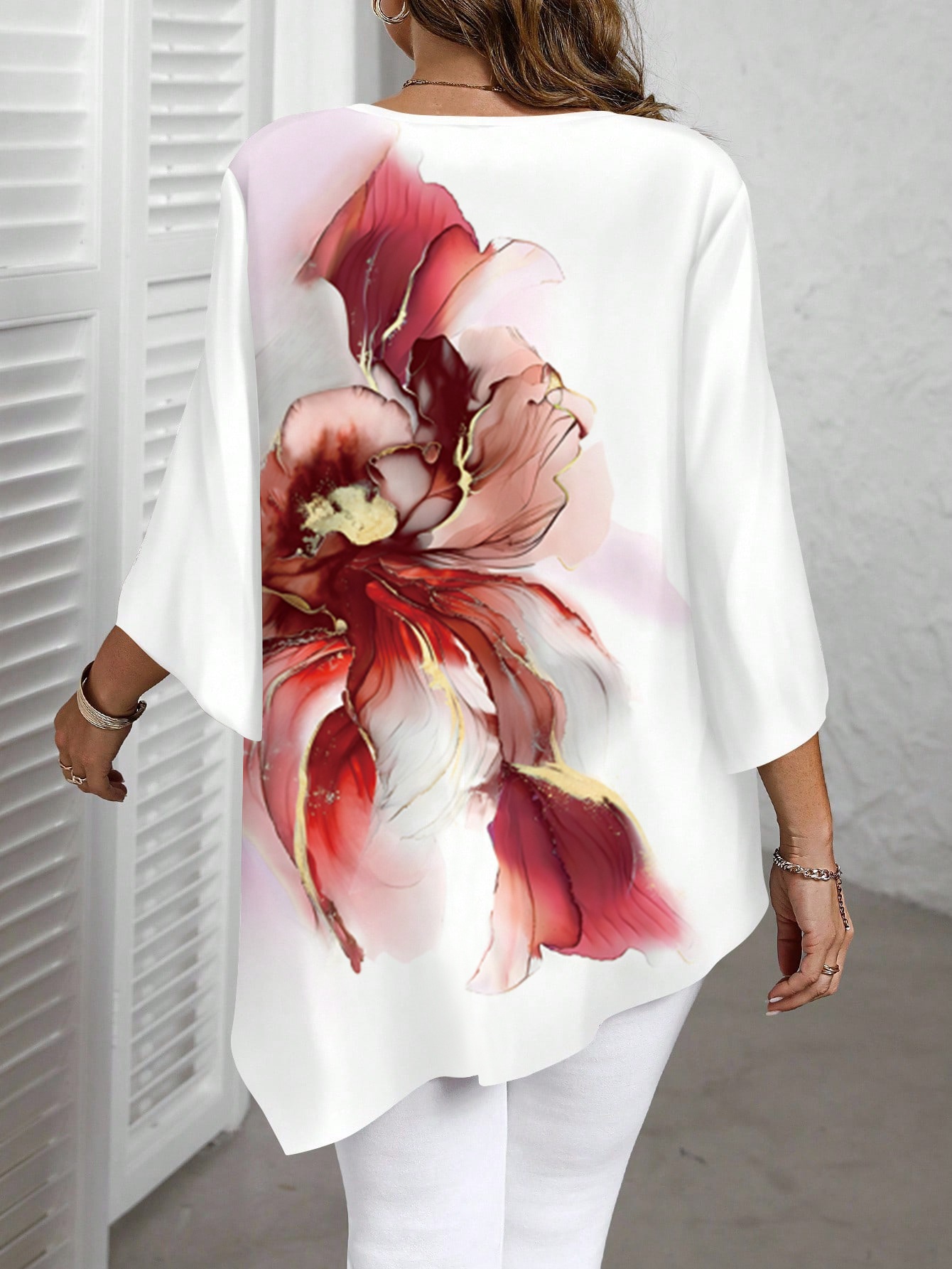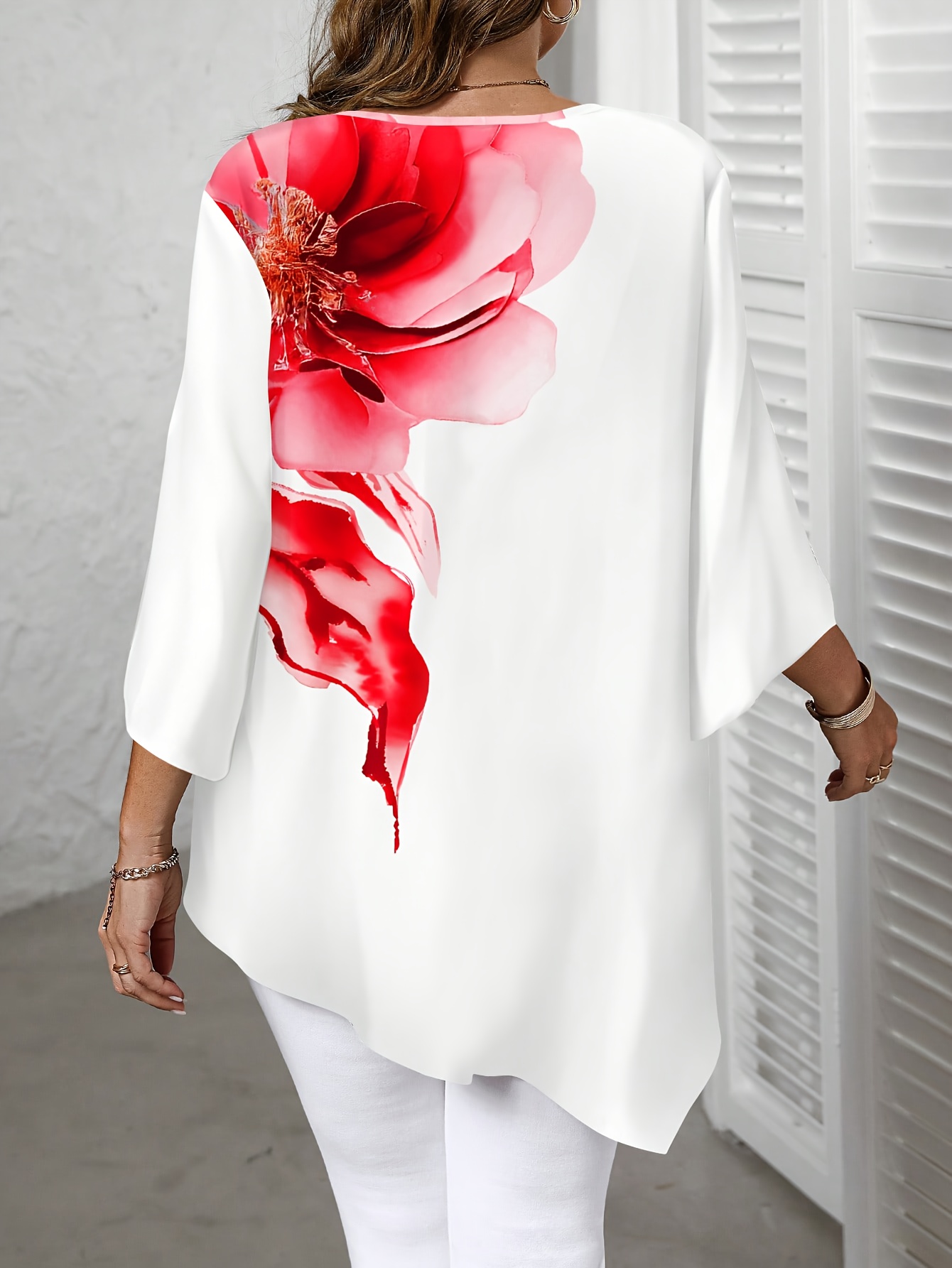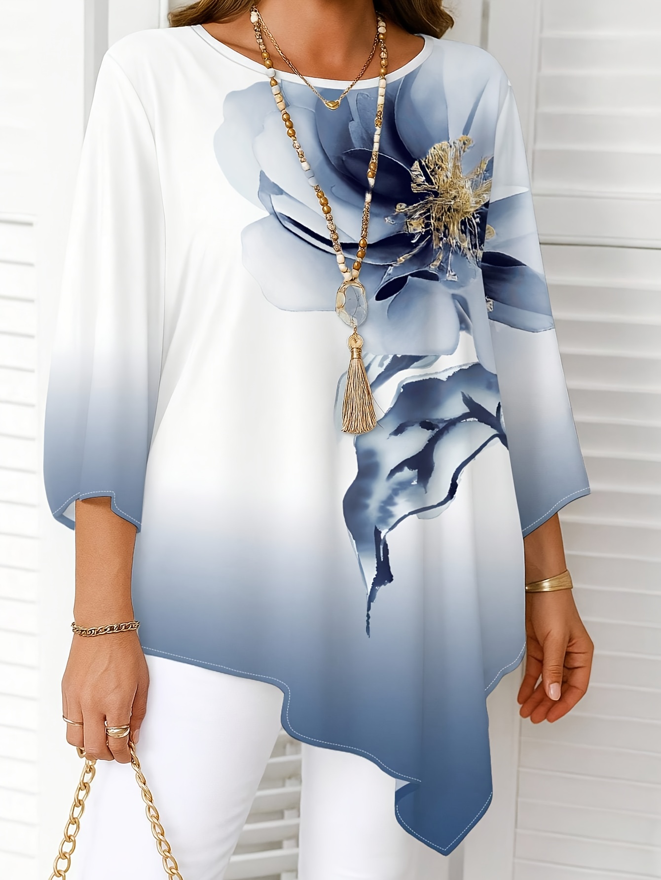 Plus Size, Plus Size Women’s Summer New Fashion Printed Round Neck Shirt – Elegant Casual Top