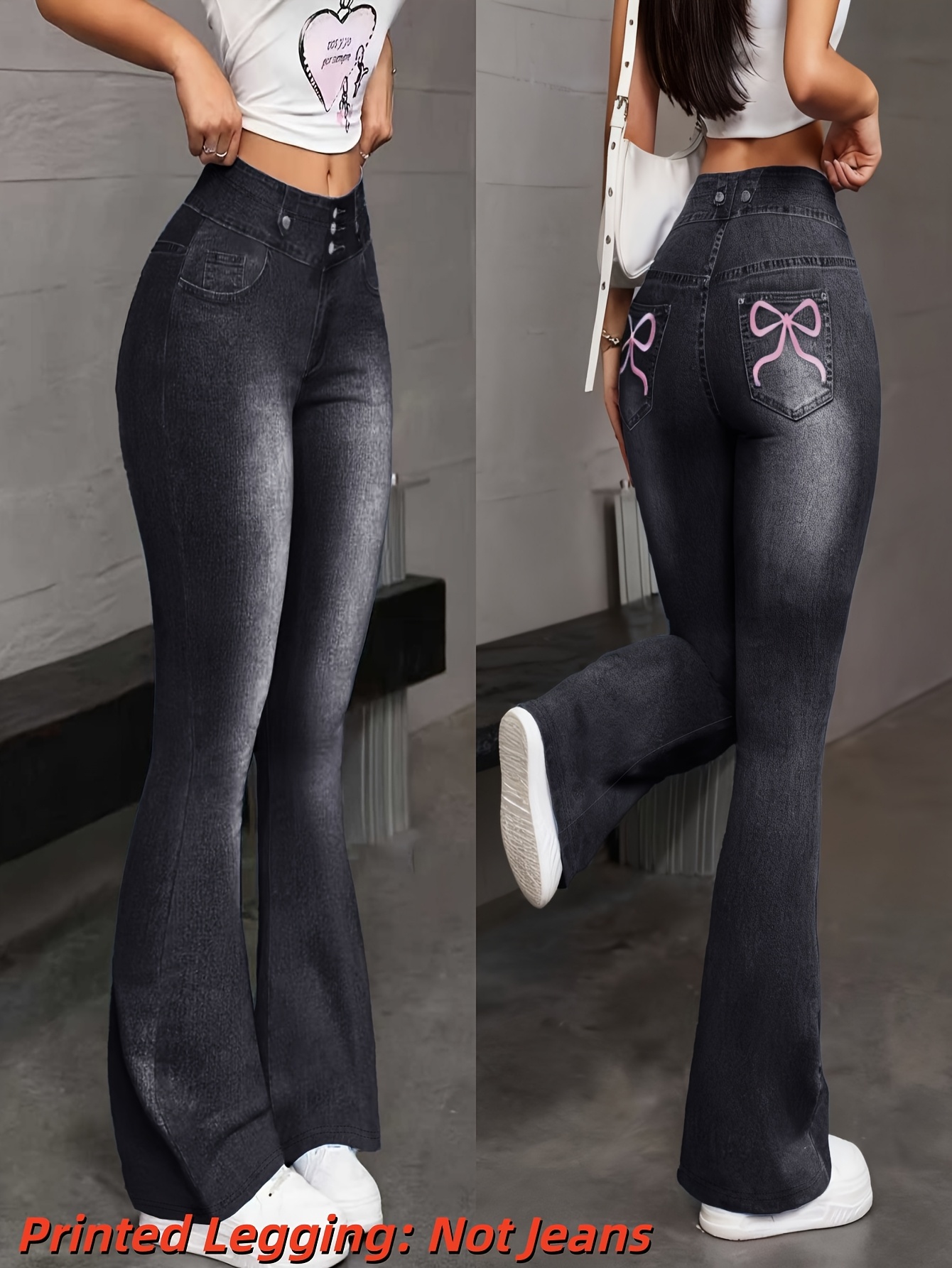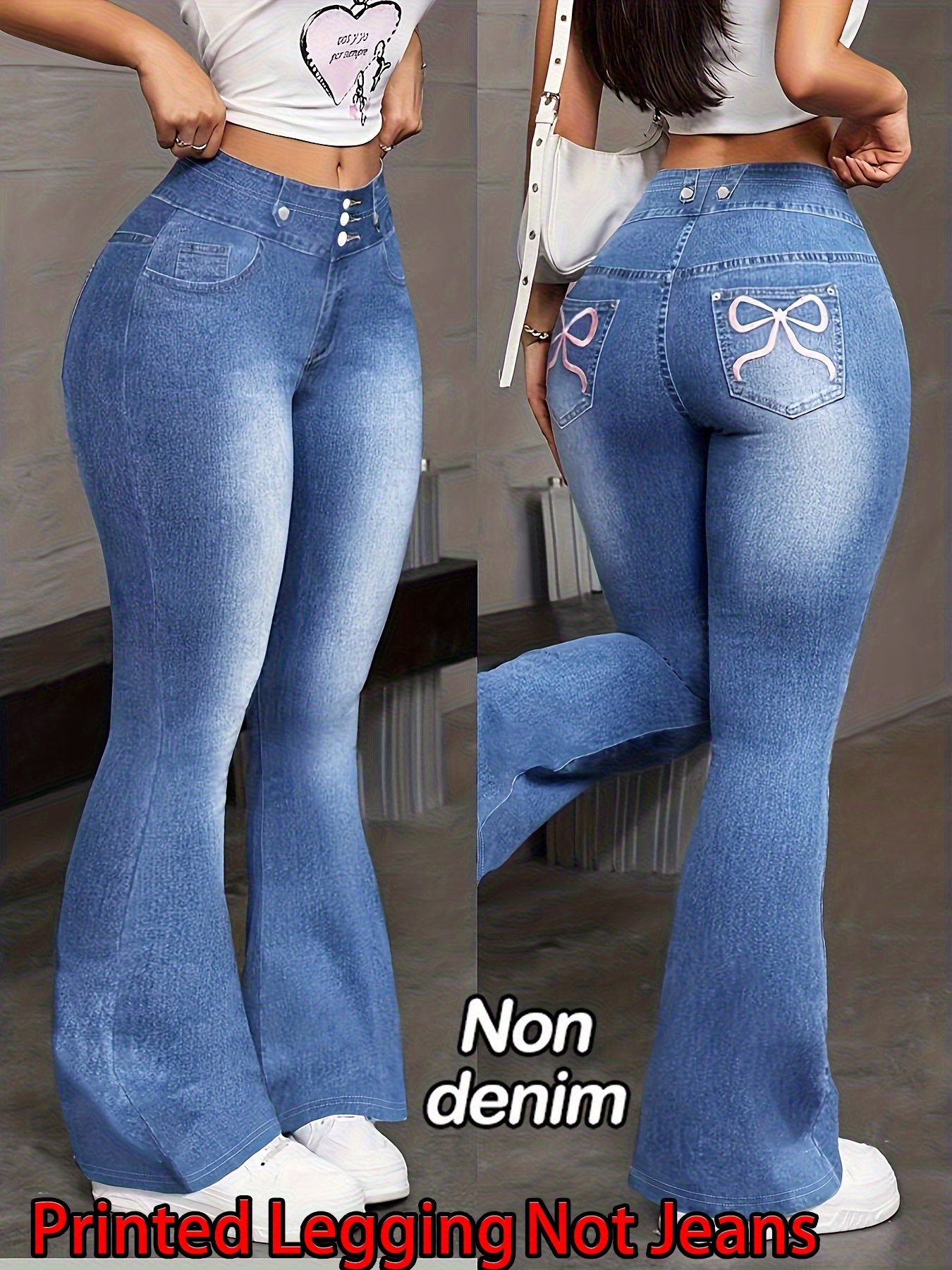 [Printed Pants – Not Denim Fabric] Printed Legging – Not Denim Fabric Women’s Imitation Denim Flared Pants, Women’s Denim Print Flared Trousers