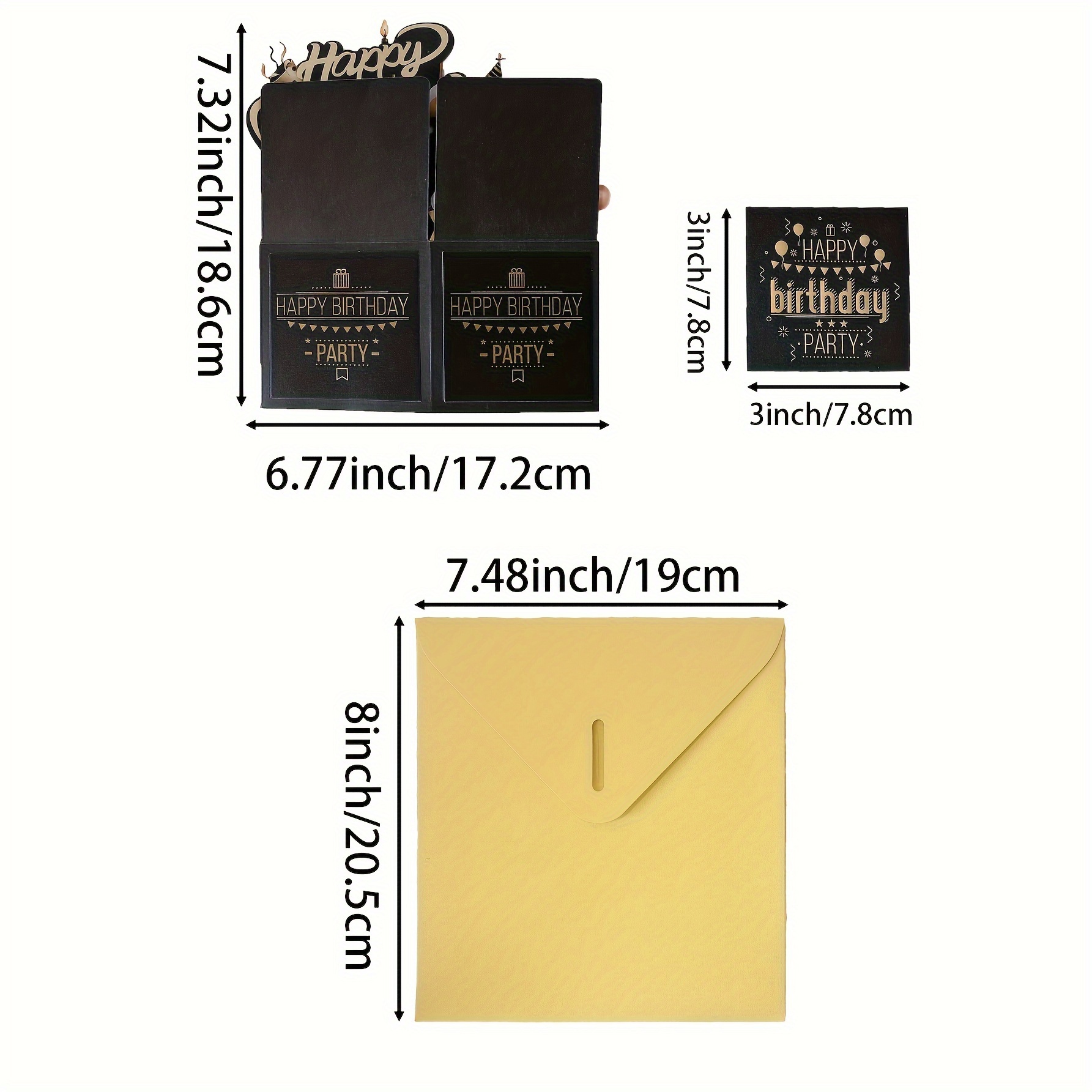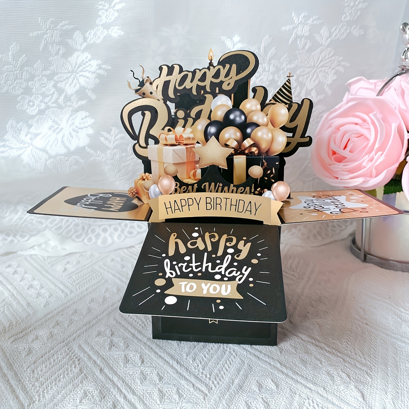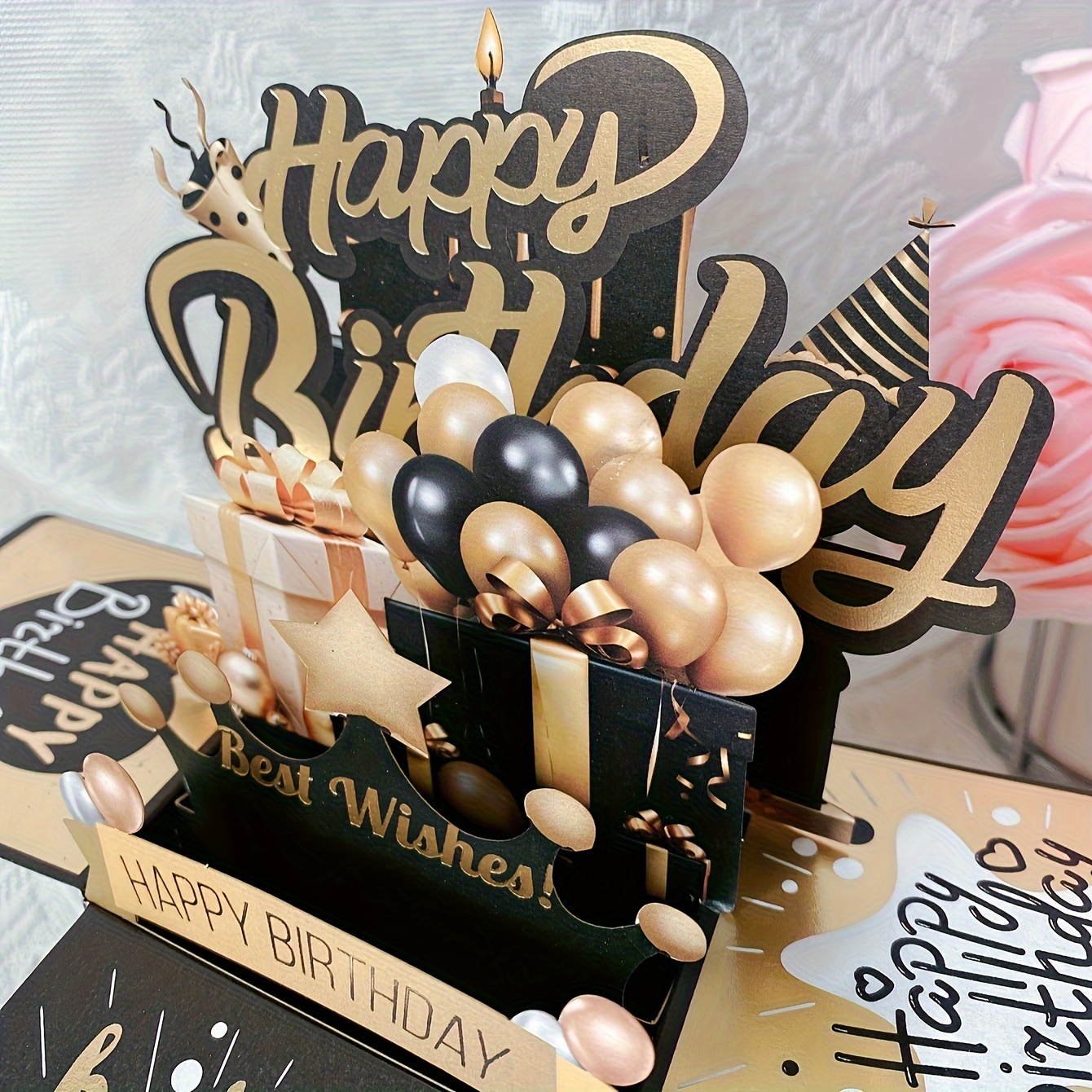 Purchase 1pc of a Black And Golden Pop-Up 3D Birthday Card, a Happy Birthday Card for Him Or Her, a Birthday Card for Men, a Birthday Card for a Wife Or Husband, a Birthday Card, Handmade Paper-Cut Card, Handmade Cartoon Card, Party Gifts