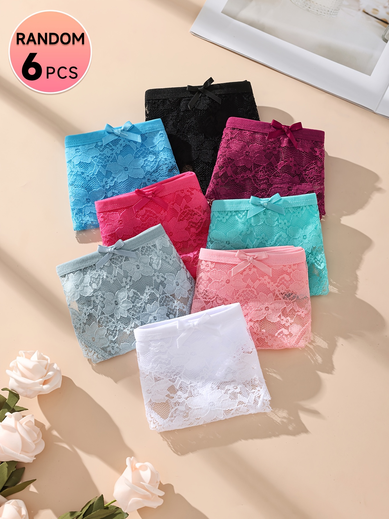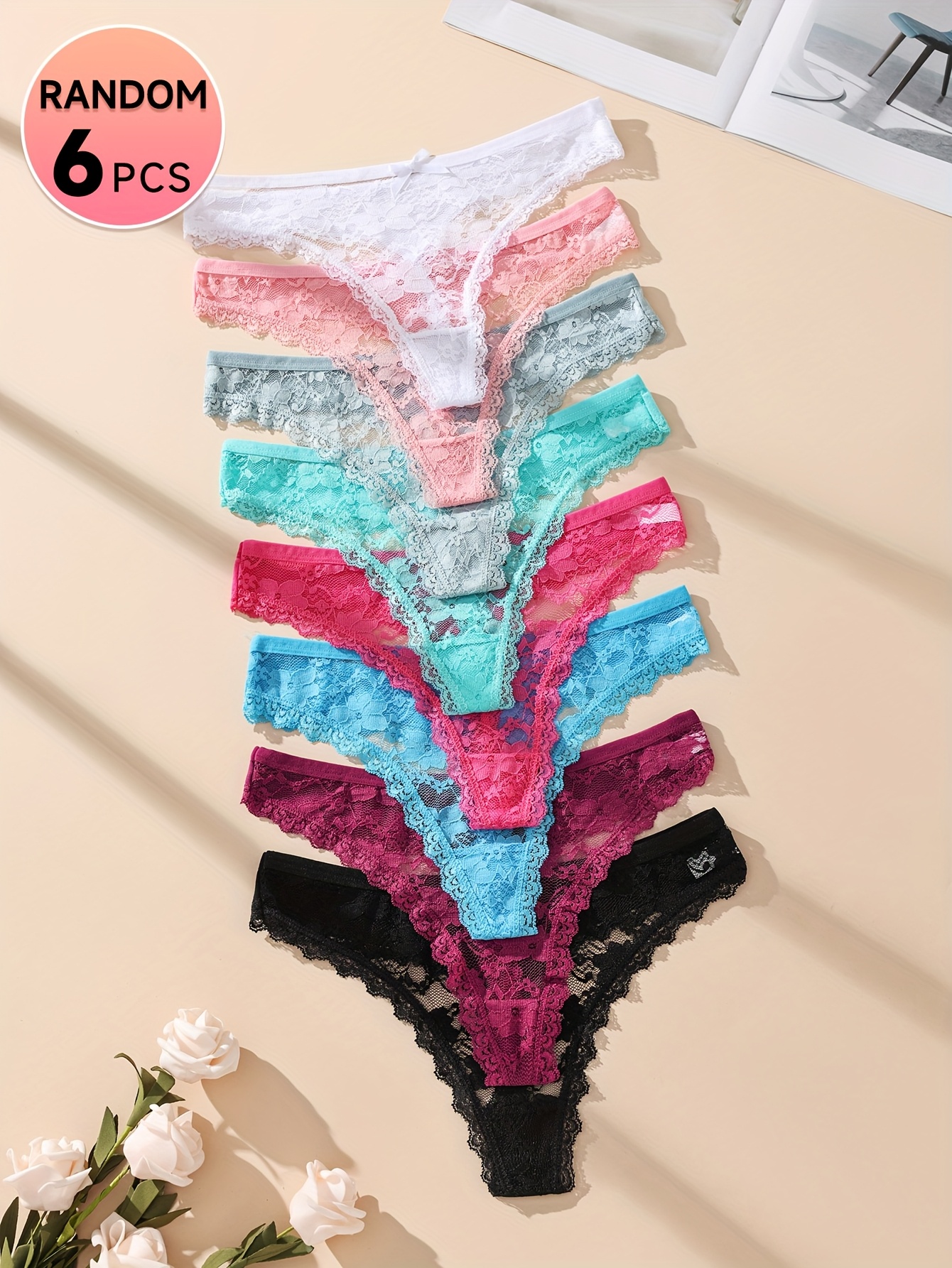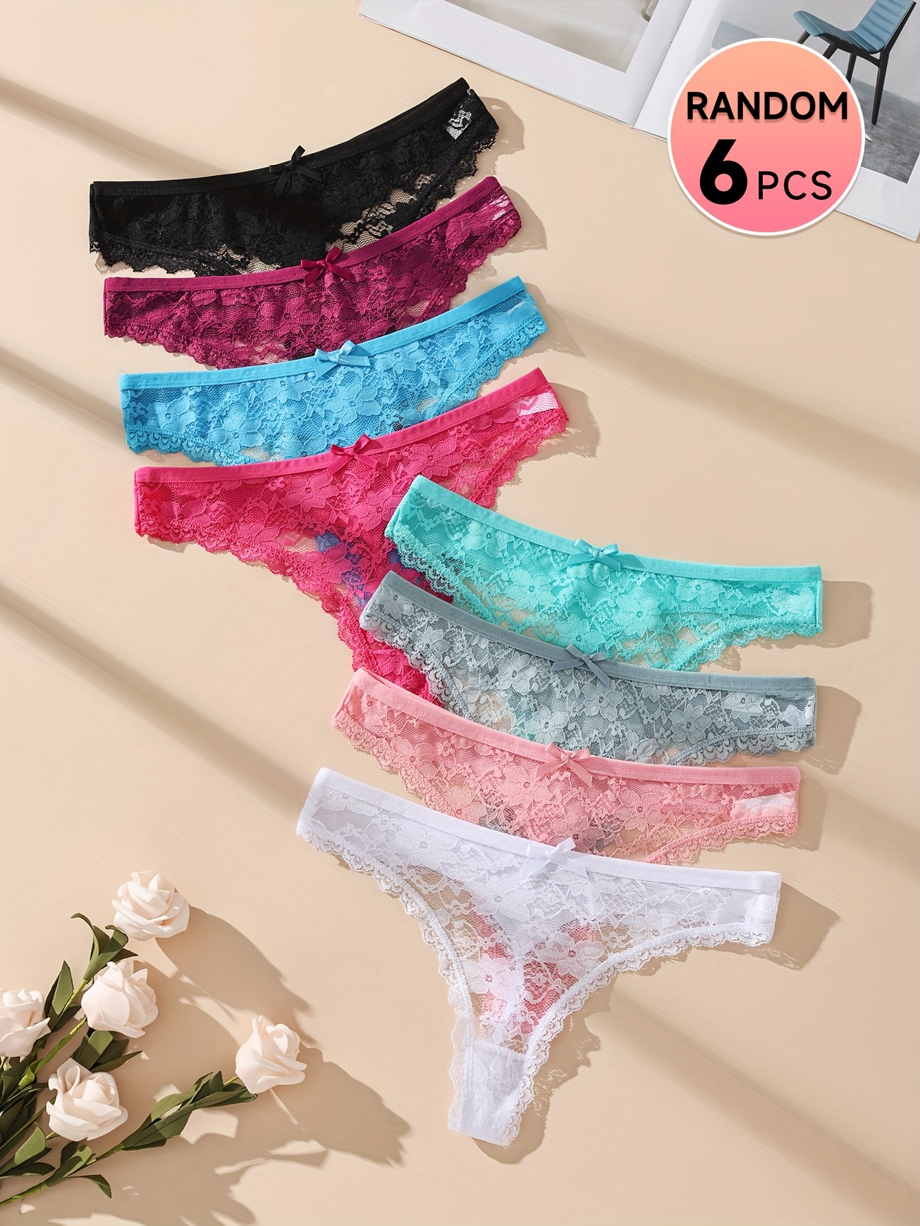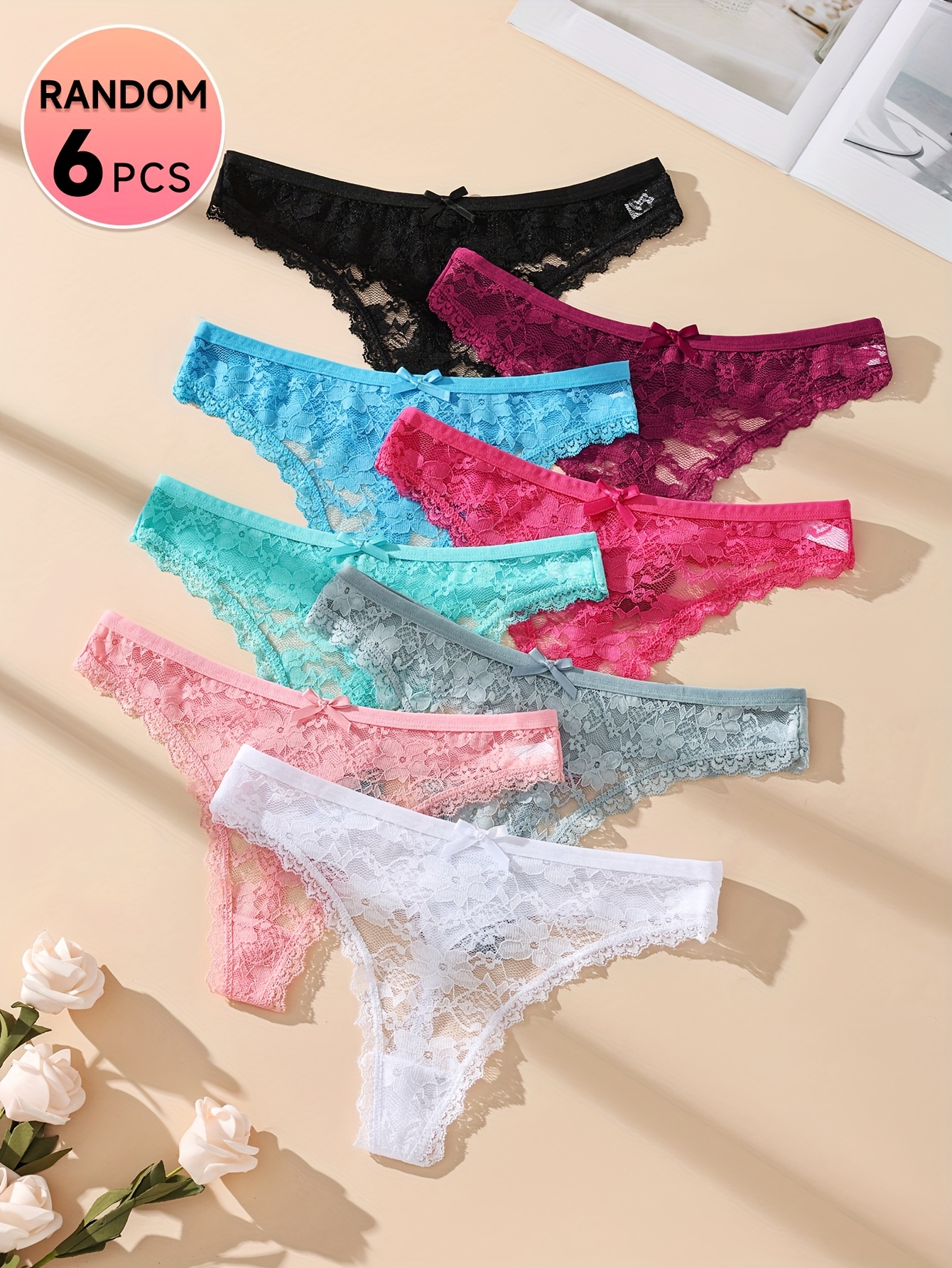 Random Pack of 6 Lace Women’s Thongs, Comfortable Breathable Stretch Women’s Underwear, Seamless Women’s Underwear Set