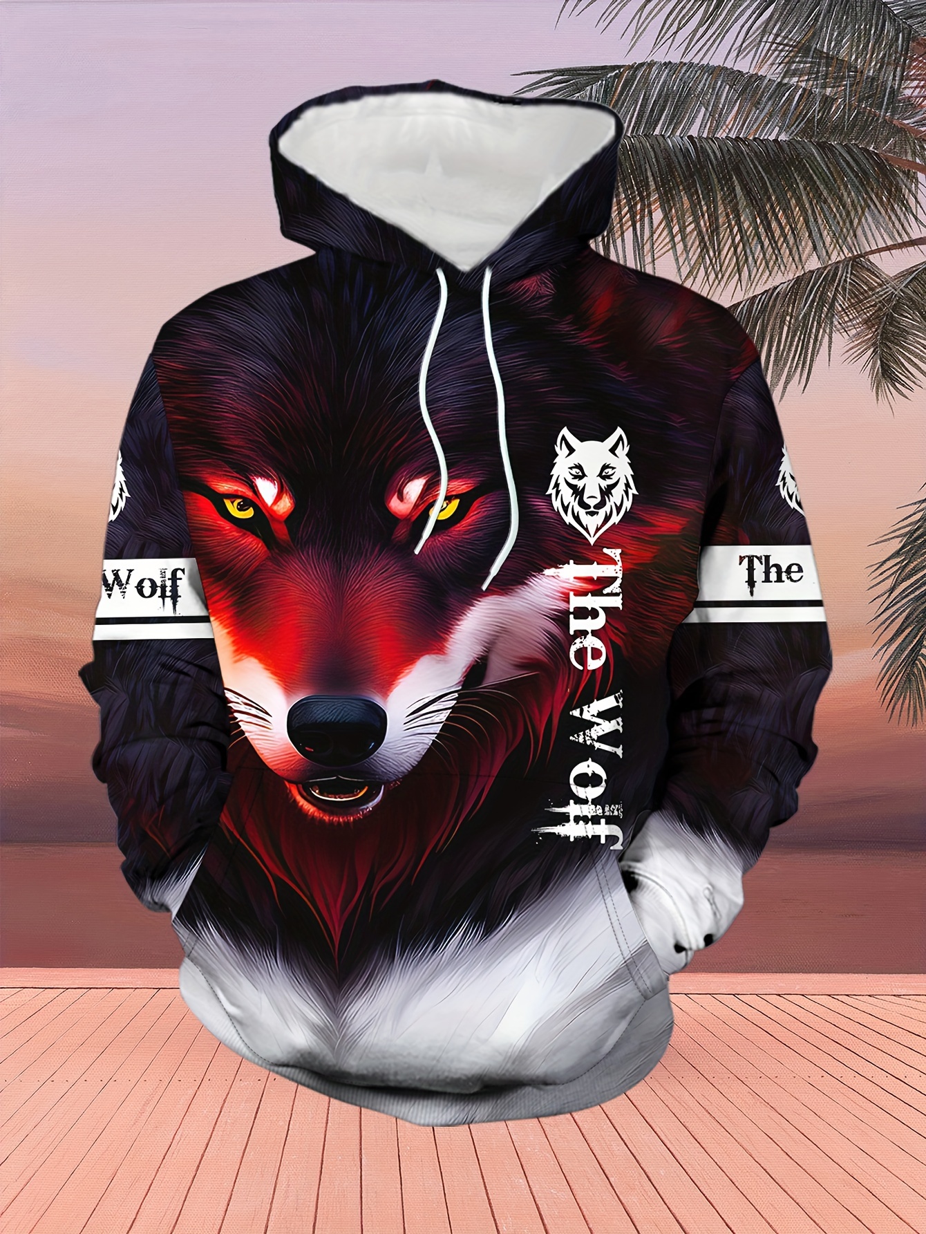 Red Dominant Wolf Pattern Personality Fashion Comfortable Men’s Spring/Autumn Long Sleeve Casual Sweatshirt Set
