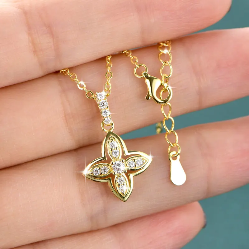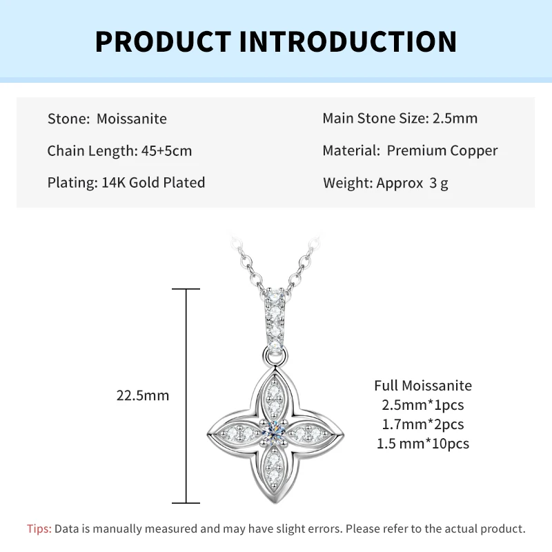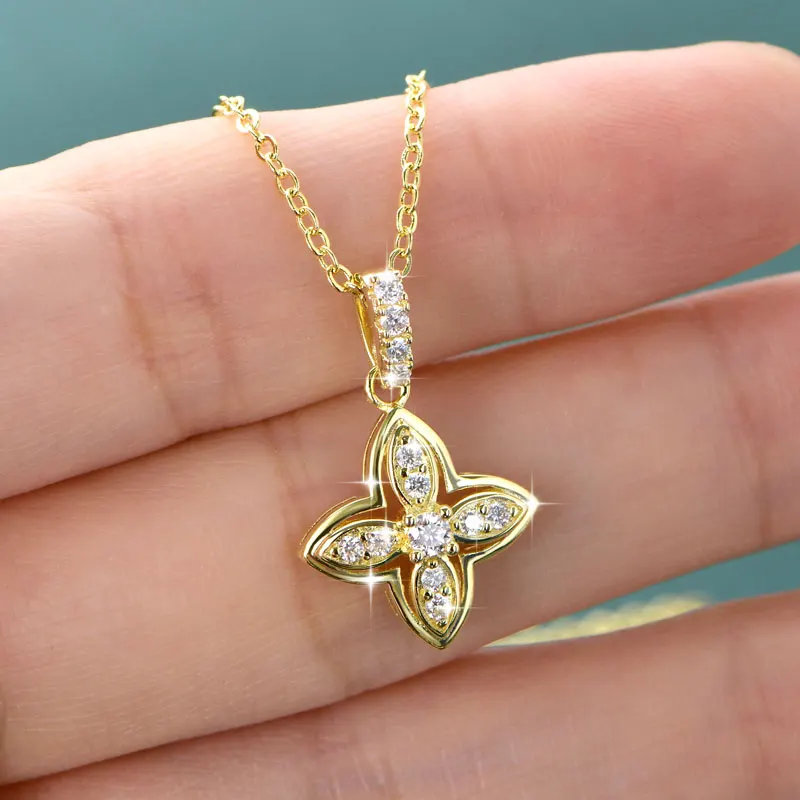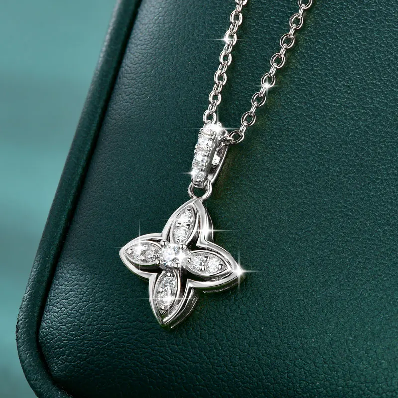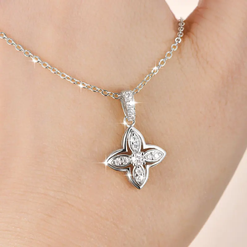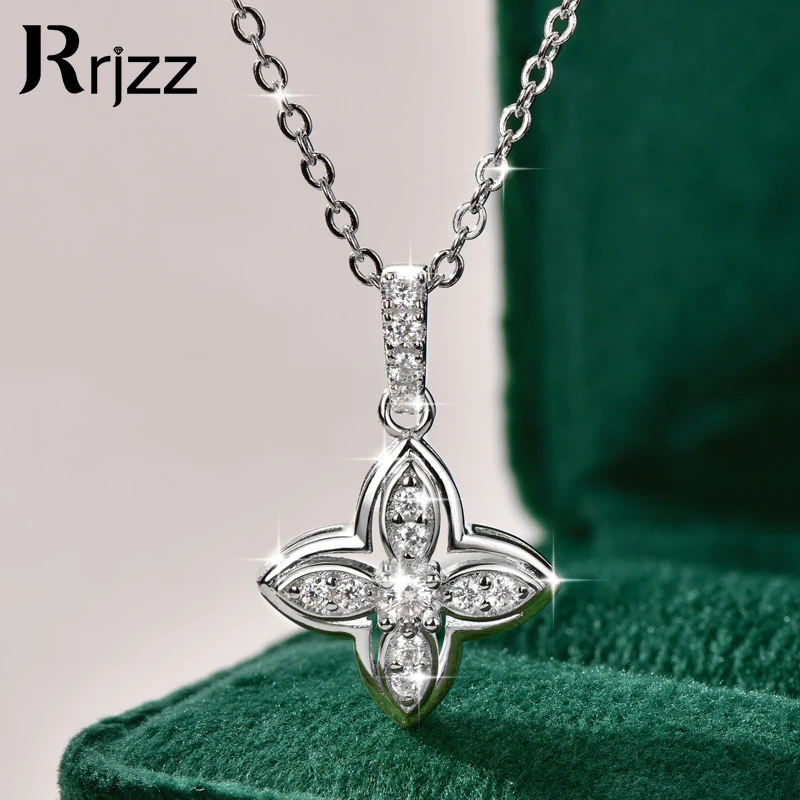 Rrjzz Certified Full Moissanite Four Leaves Necklace for Women Lab Imitation Diamond Birthday Pendant Necklace GRA Jewelry Gift